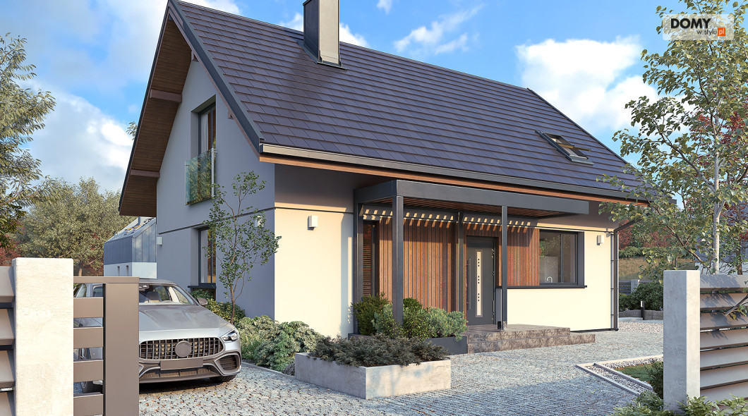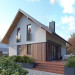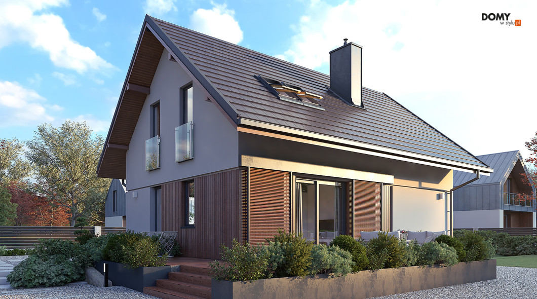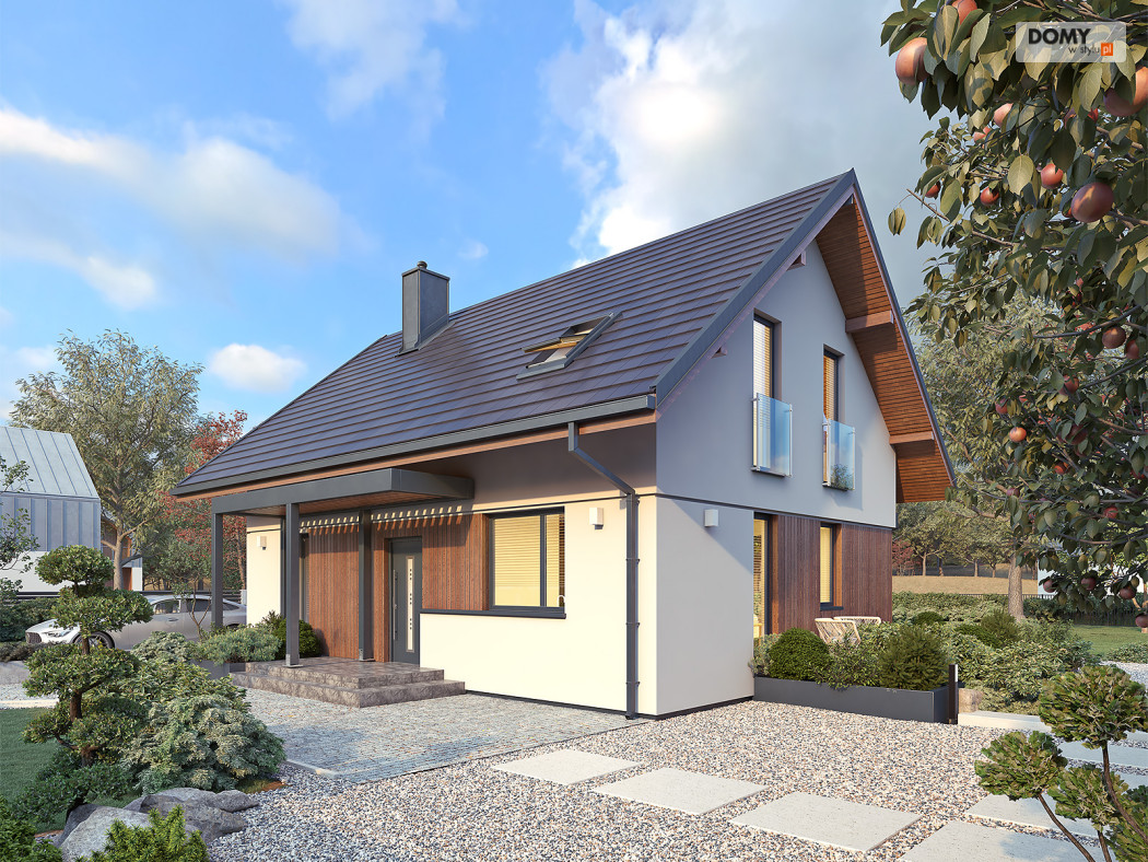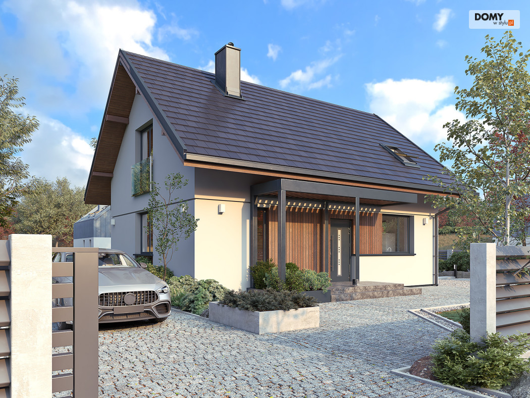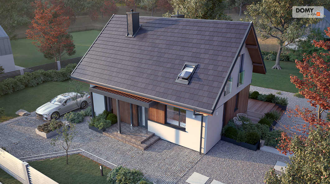 Anka dr-ST to niewielki dom z użytkowym poddaszem o optymalnej powierzchni 115 m2. Projekt stworzony został w technologii szkieletu drewnianego. Klasyczna bryła przykryta została dwuspadowym dachem w grafitowym kolorze. Na elewacji pojawił się biały tynk oraz drewniana szalówka w kolorze naturalnego drewna. Strefa dzienna to przestronny salon z kominkiem, jadalnia oraz otwarta kuchnia. Strefa nocna to trzy wygodne sypialnie oraz rodzinna łazienka.
