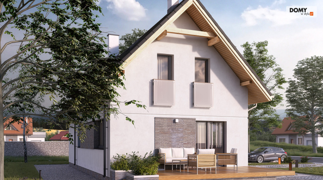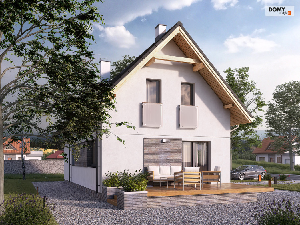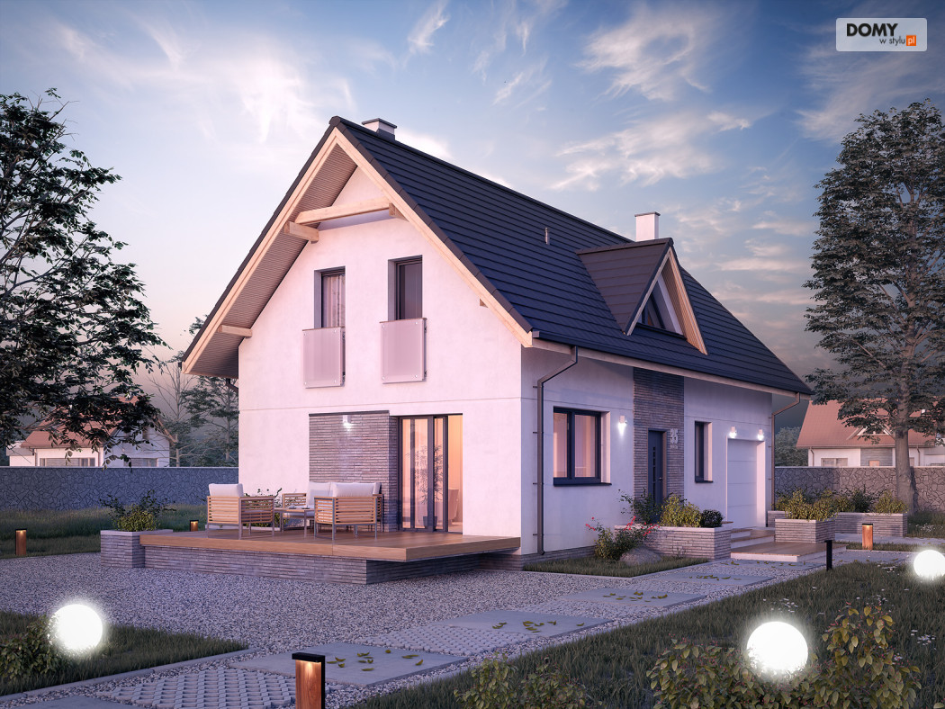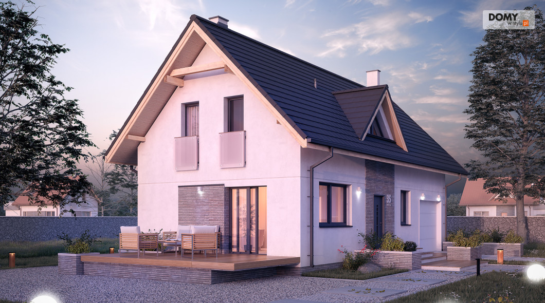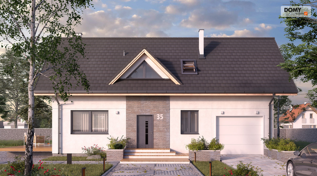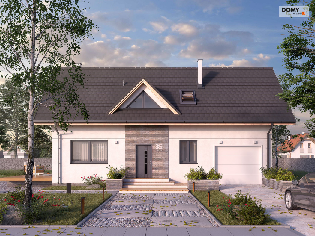 Bez 3 jest propozycją domu parterowego z poddaszem, przeznaczonego dla 5 osobowej rodziny. Na parterze domu zlokalizowano przestronną wydzieloną kuchnię, salon z jadalnią, wiatrołap, hol, łazienkę, kotłownię oraz garaż wkomponowany w bryłę budynku. Na poddaszu natomiast znajdują się 4 sypialnie, w tym jedna z garderobą i 2 łazienki. Prosta zwarta bryła oraz rozwiązania materiałowe zaliczają budynek do kategorii domów energooszczędnych.