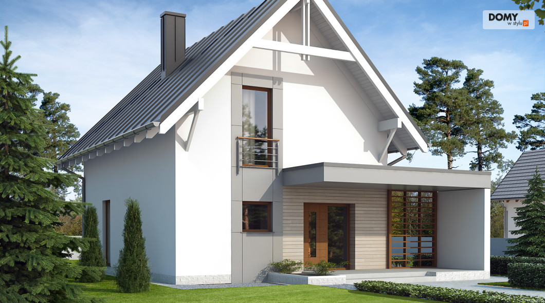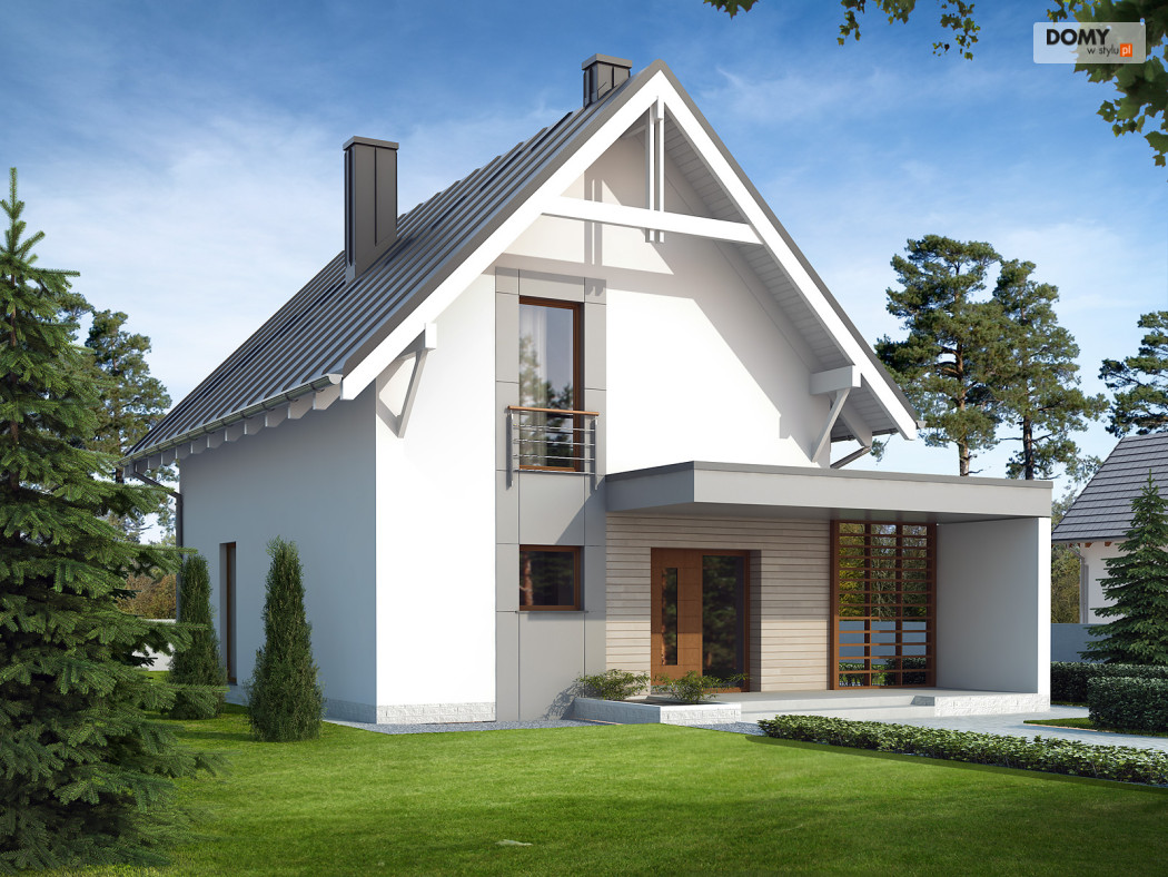 Niewielki jednorodzinny budynek mieszkalny, parterowy z użytkowym poddaszem, niepodpiwniczony. Mimo niewielkich gabarytów zawiera w sobie optymalny układ pomieszczeń odpowiadający potrzebom 4-osobowej rodziny. Atutem projektu jest kotłownia na paliwo stałe oraz spiżarnia przy kuchni.