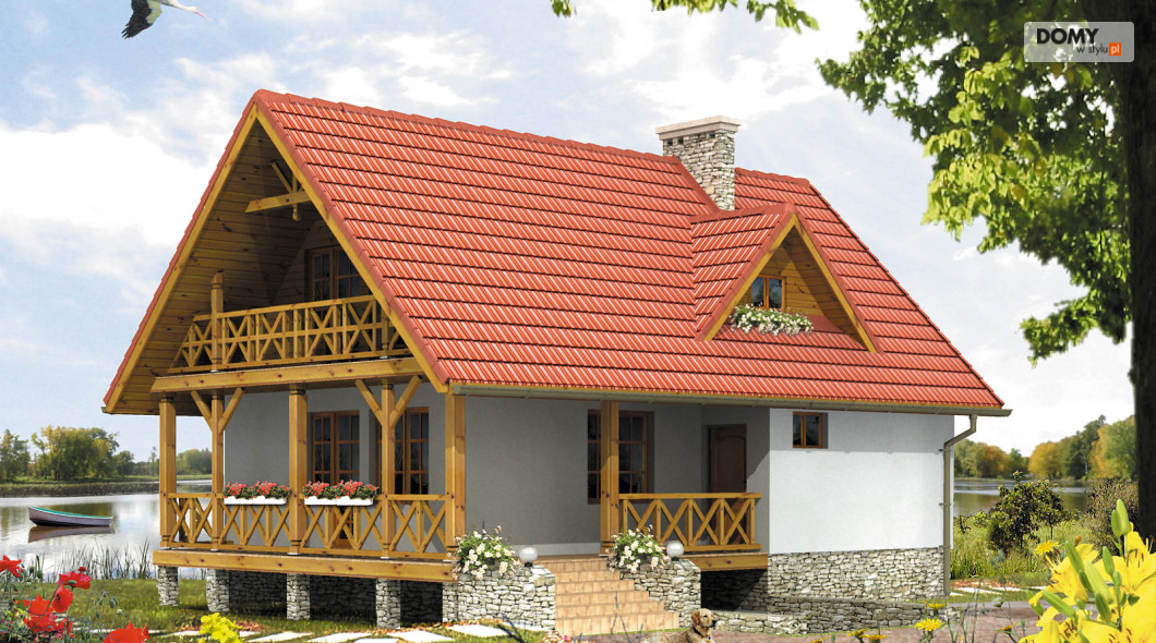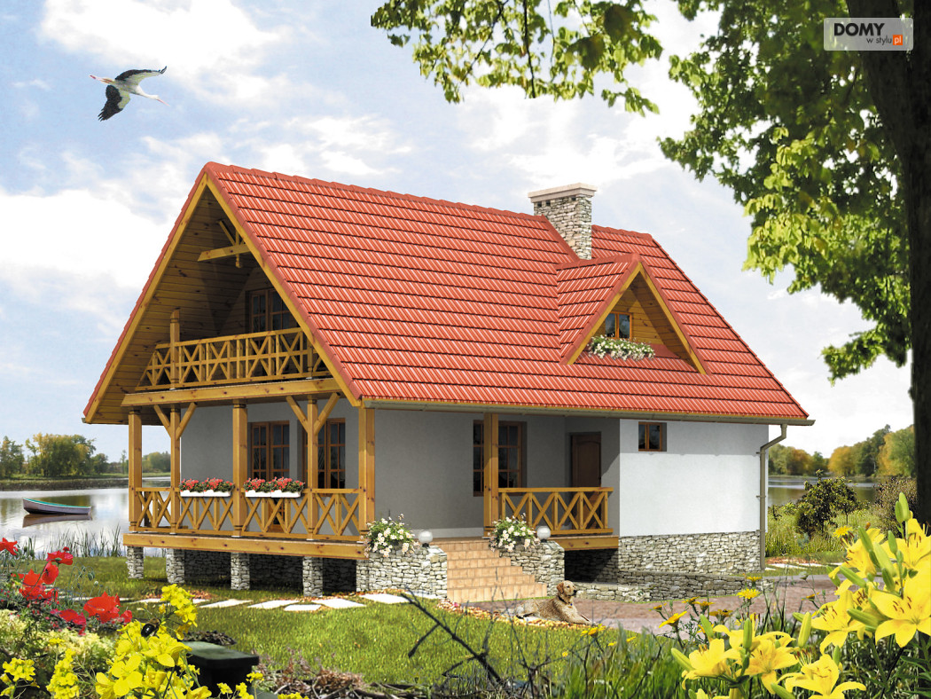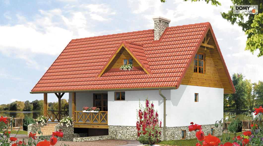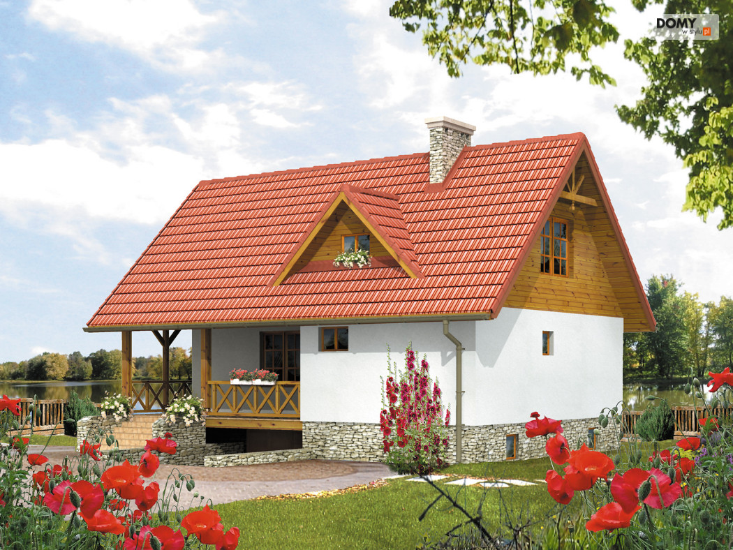 Wolno stojący domek z użytkowym poddaszem i całkowitym podpiwniczeniem. Niewielki, prosty w budowie dom dla 3 – 4 osób. Istnieje wersja domu letniskowego.