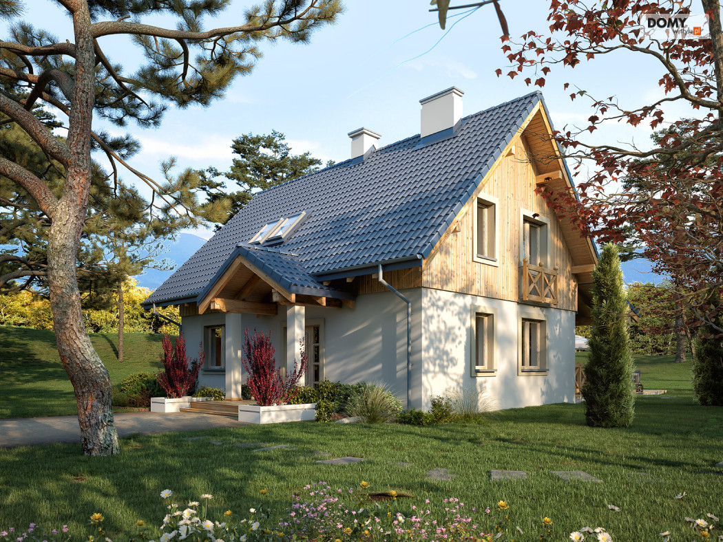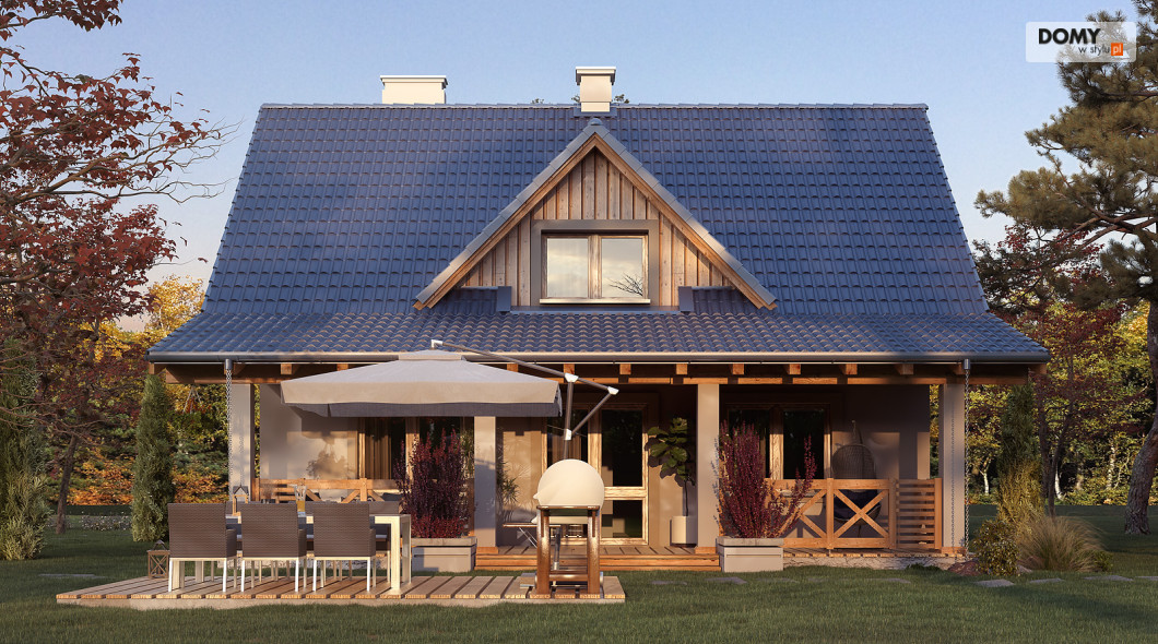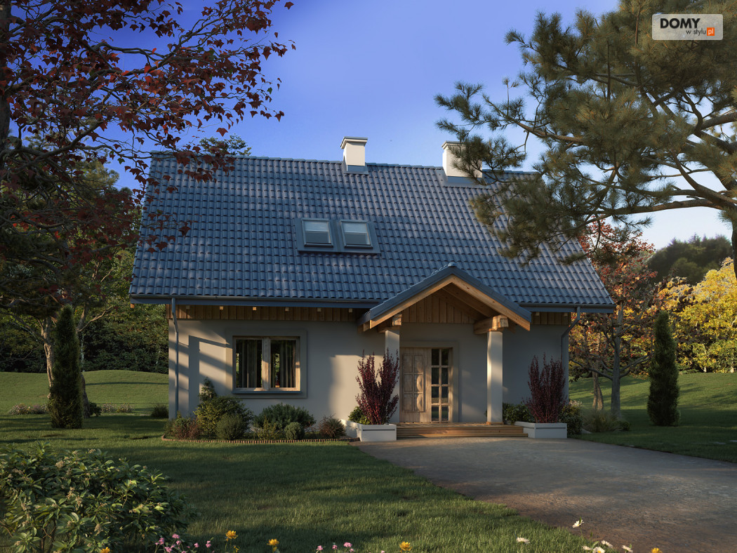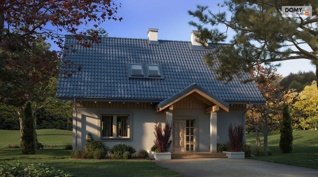 Zgrabny, mały dom mieszkalny przeznaczony dla 3 - 4-osobowej rodziny. W tak niewielkim domu na uwagę zasługuje duży otwarty salon z wygodnym miejscem na duży stół. Duży, zadaszony taras będzie świetnym miejscem popołudniowych rozmów. Na poddaszu zaprojektowano trzy duże sypialnie i przestronną łazienkę.
