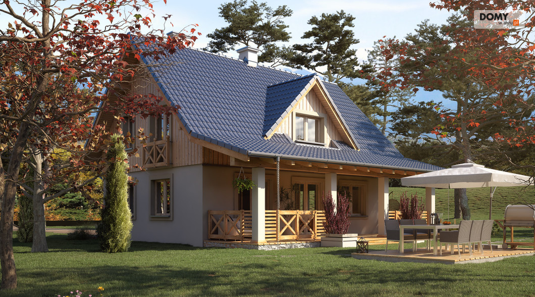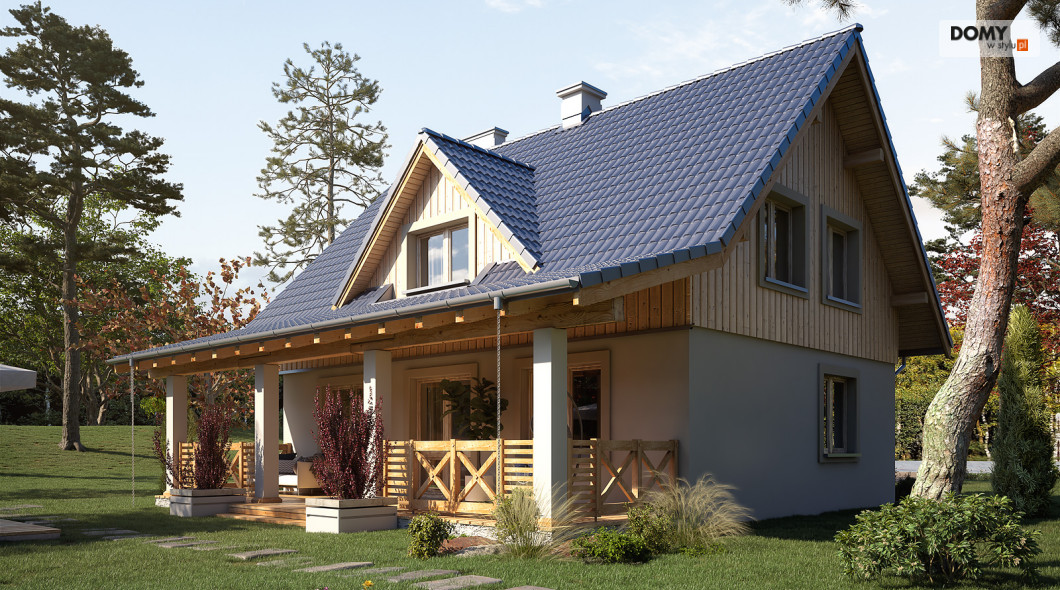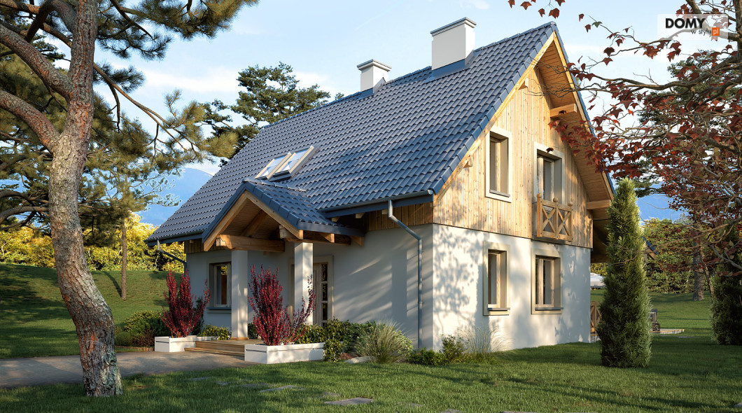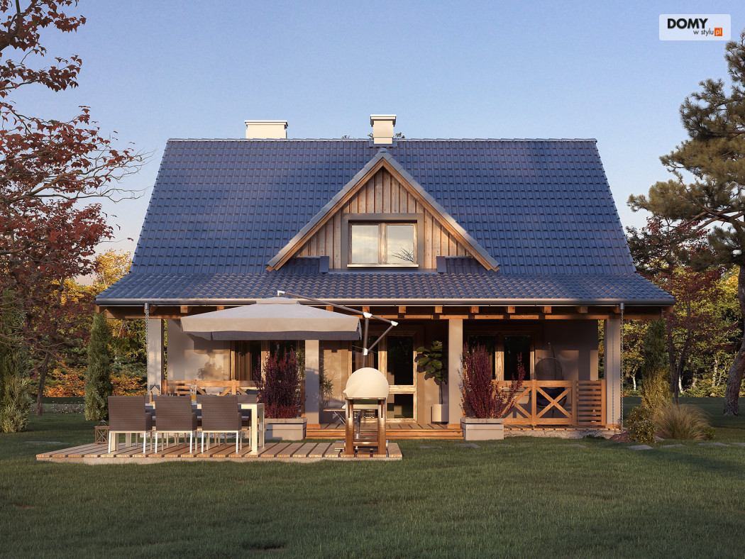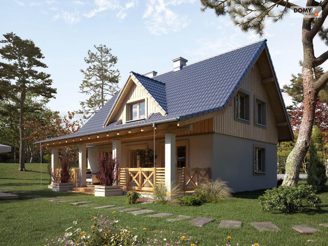 Zgrabny, mały dom mieszkalny przeznaczony dla 3 - 4-osobowej rodziny. W tak niewielkim domu na uwagę zasługuje duży otwarty salon z wygodnym miejscem na duży stół. Duży, zadaszony taras będzie świetnym miejscem popołudniowych rozmów. Na poddaszu zaprojektowano trzy duże sypialnie i przestronną łazienkę.