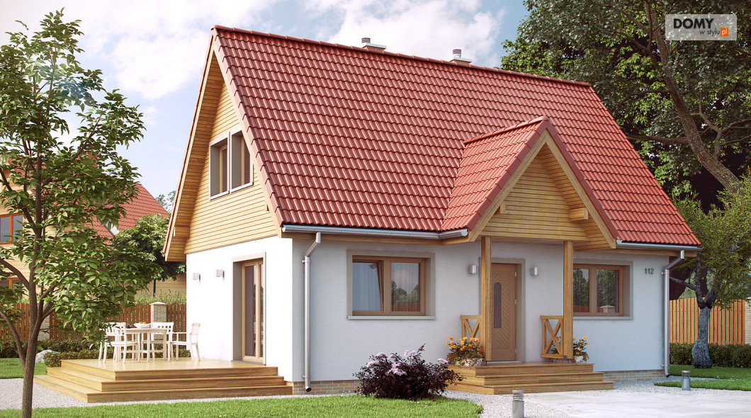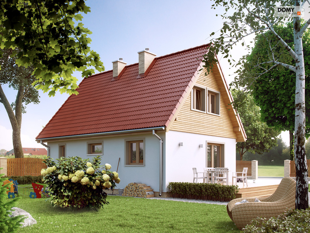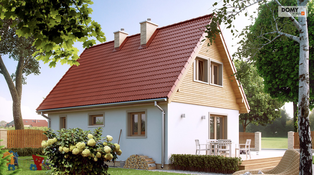 Dom jednorodzinny z poddaszem użytkowym, przeznaczony dla 3 – 4-osobowej rodziny. Na parterze dodatkowy pokój. Kuchnia z jadalnią i pokojem dziennym połączone w jedną wspólną przestrzeń. Prosta, zwarta bryła, ekonomiczna w budowie.