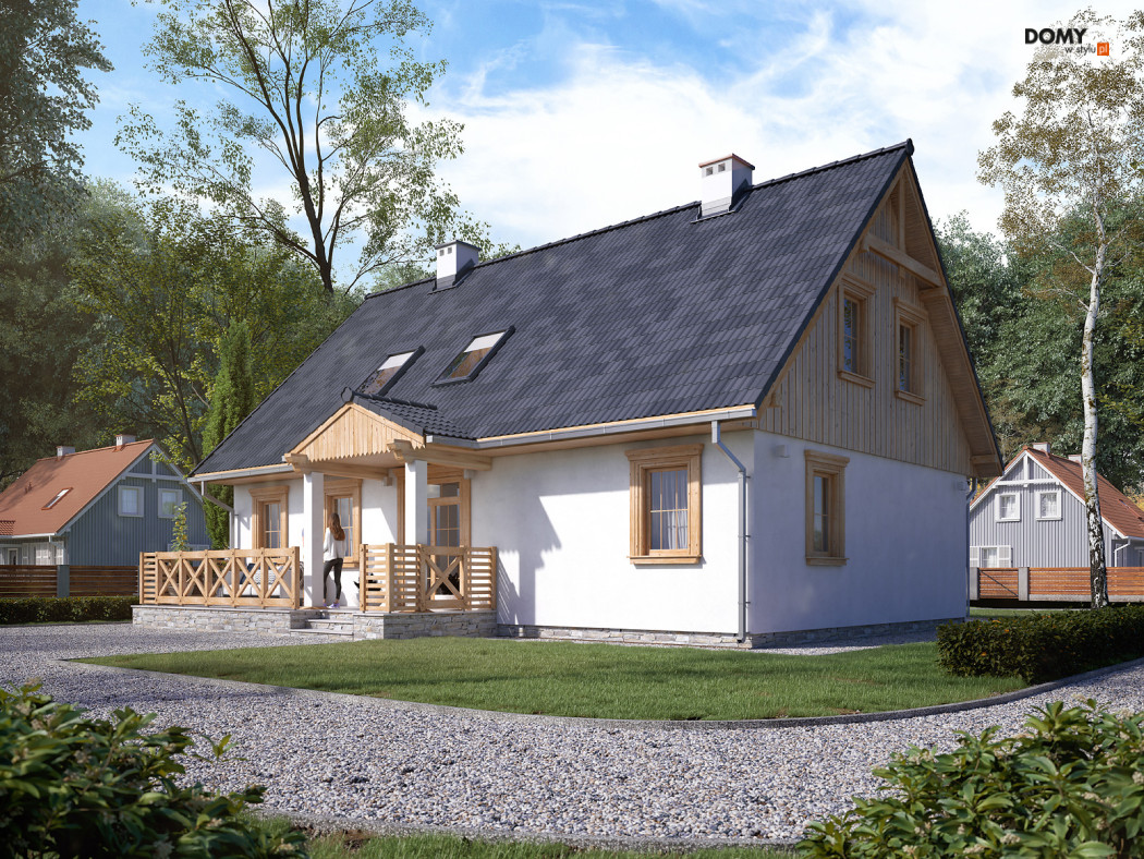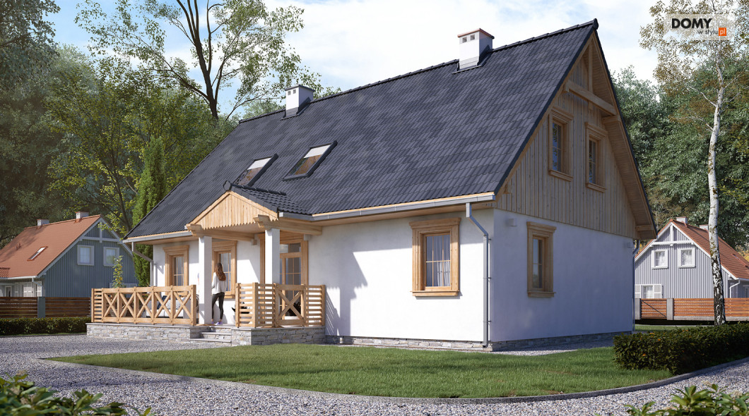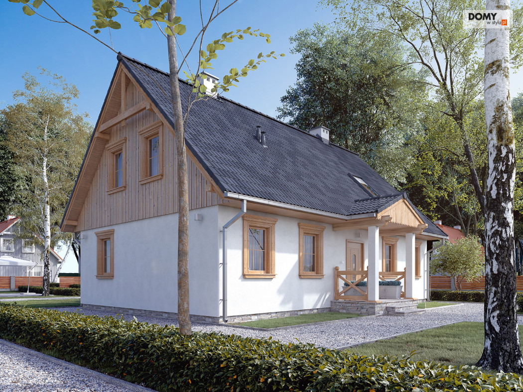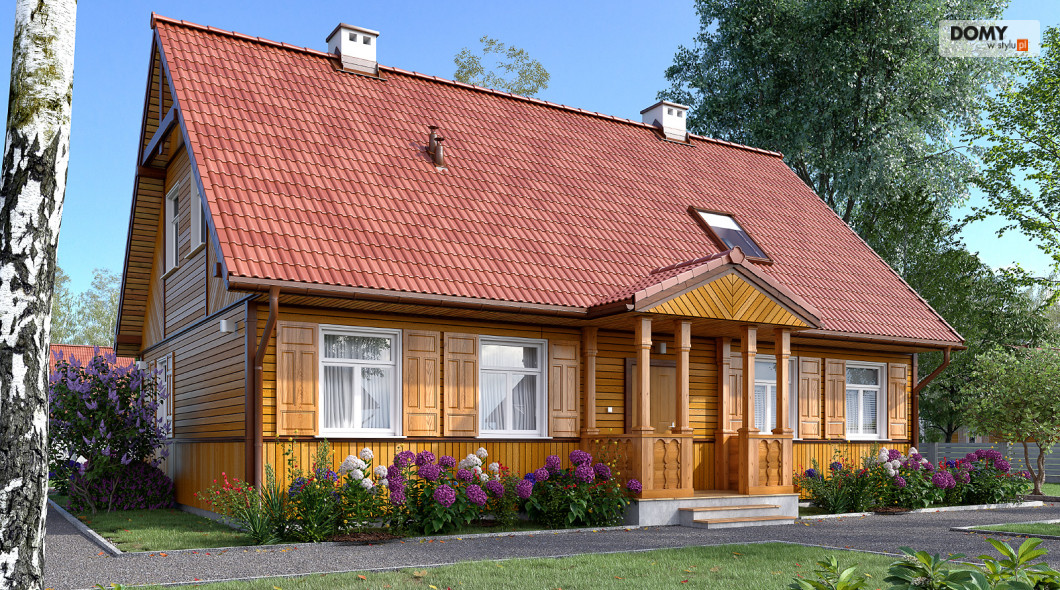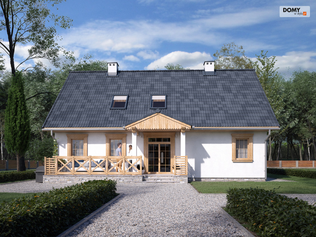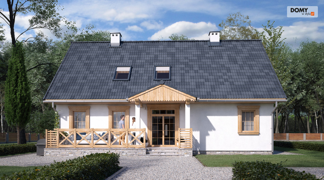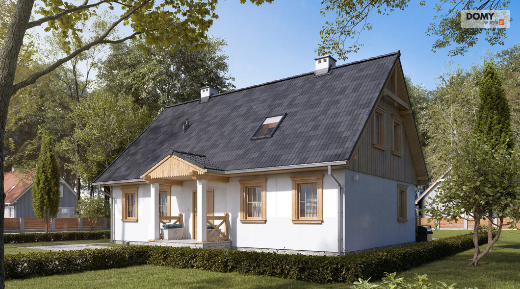 Dom jednorodzinny, parterowy z użytkowym poddaszem, niepodpiwniczony. Dom o charakterze wiejskim. Prosta, tradycyjna bryła typowej, podlaskiej chaty. Na parterze zaprojektowano dodatkowy pokój.
