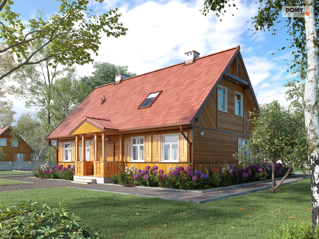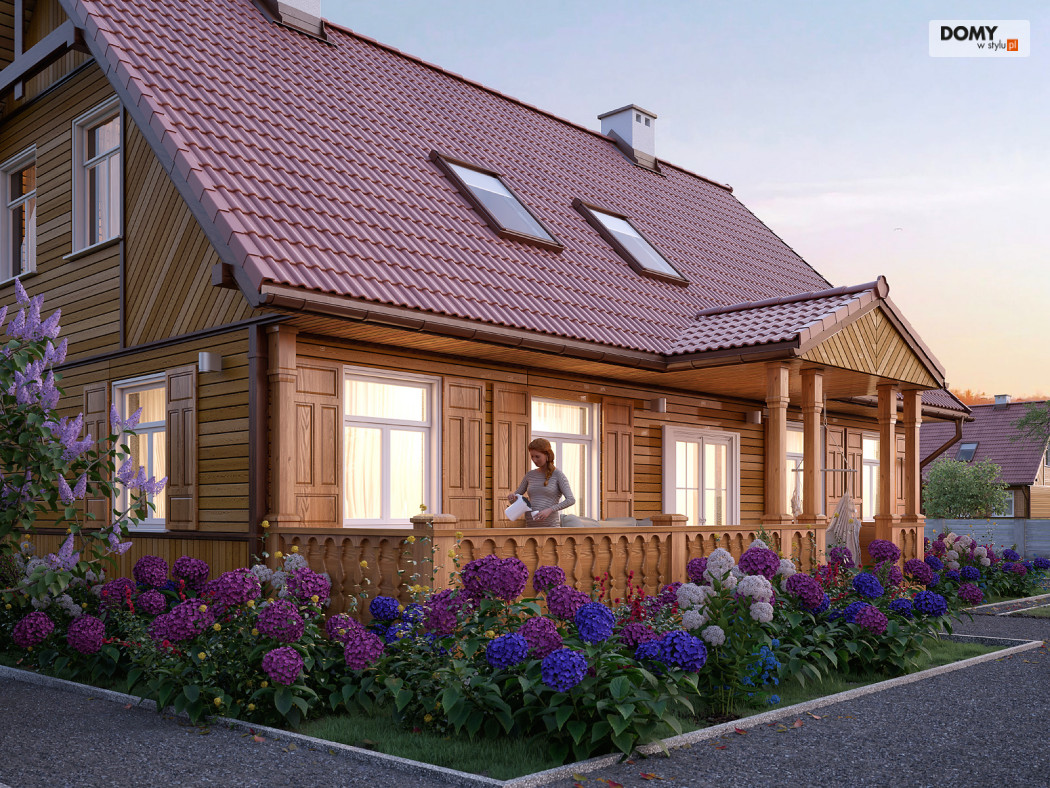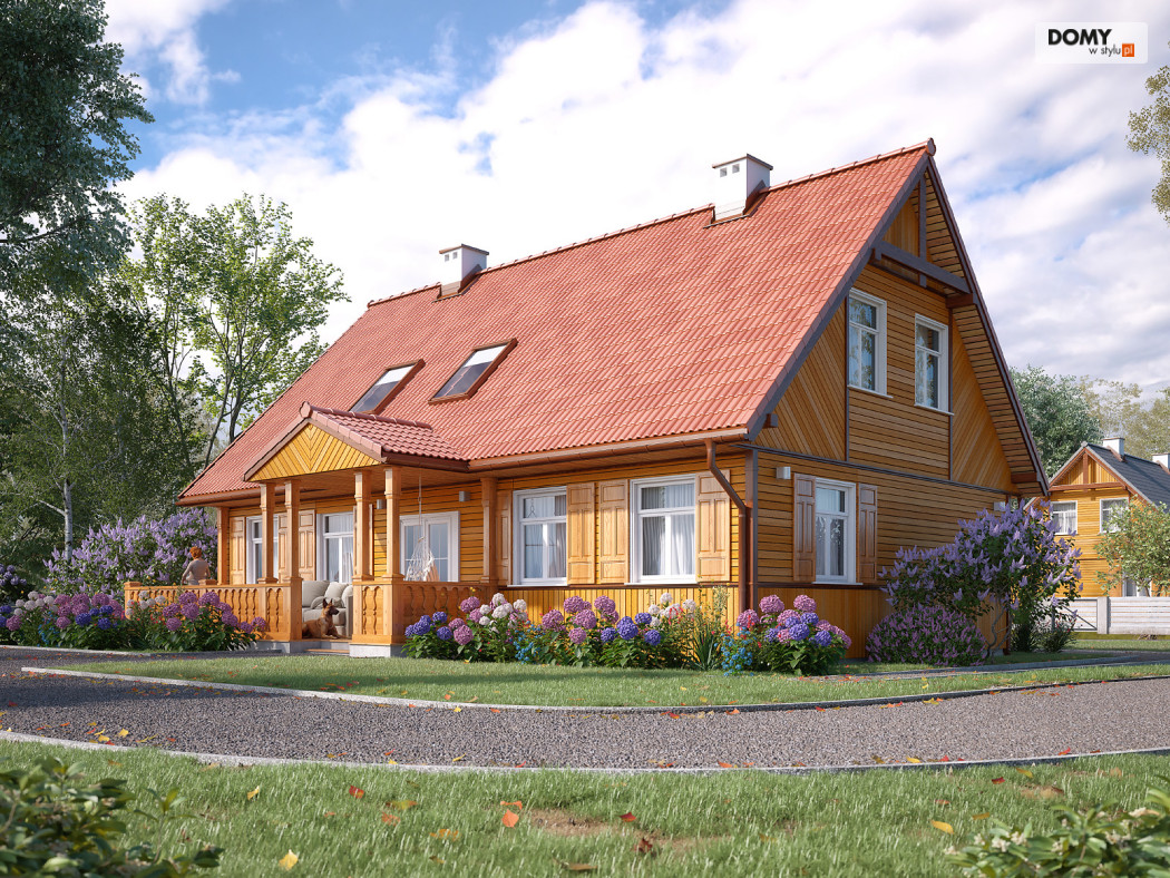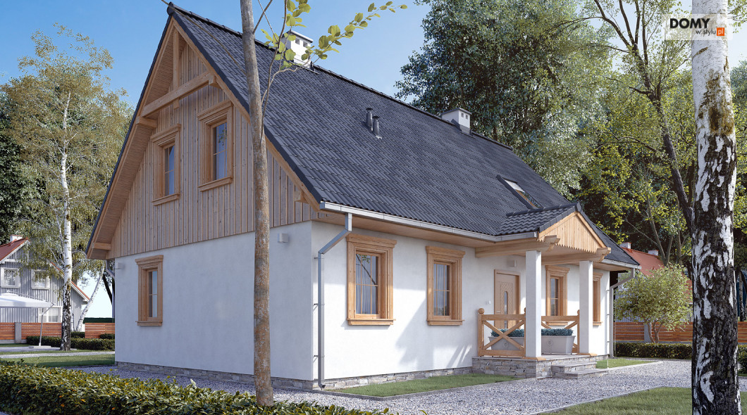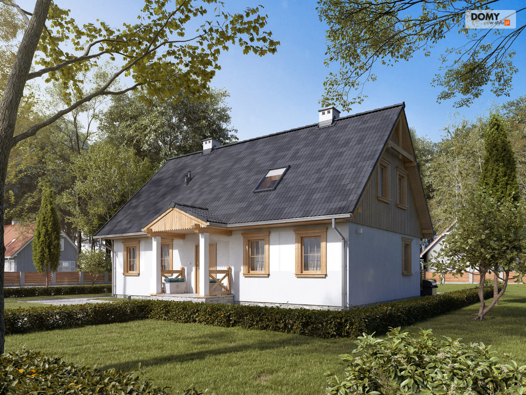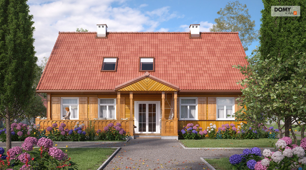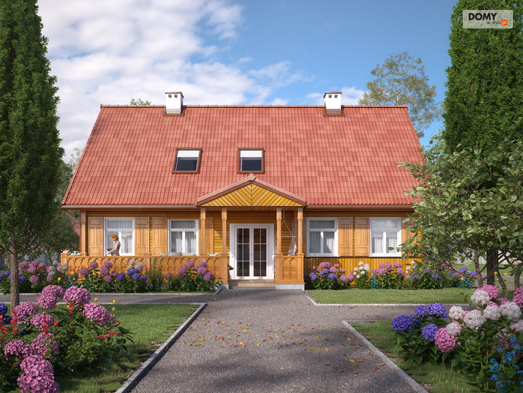Dom jednorodzinny, parterowy z użytkowym poddaszem, niepodpiwniczony. Dom o charakterze wiejskim. Prosta, tradycyjna bryła typowej, podlaskiej chaty. Na parterze zaprojektowano dodatkowy pokój.