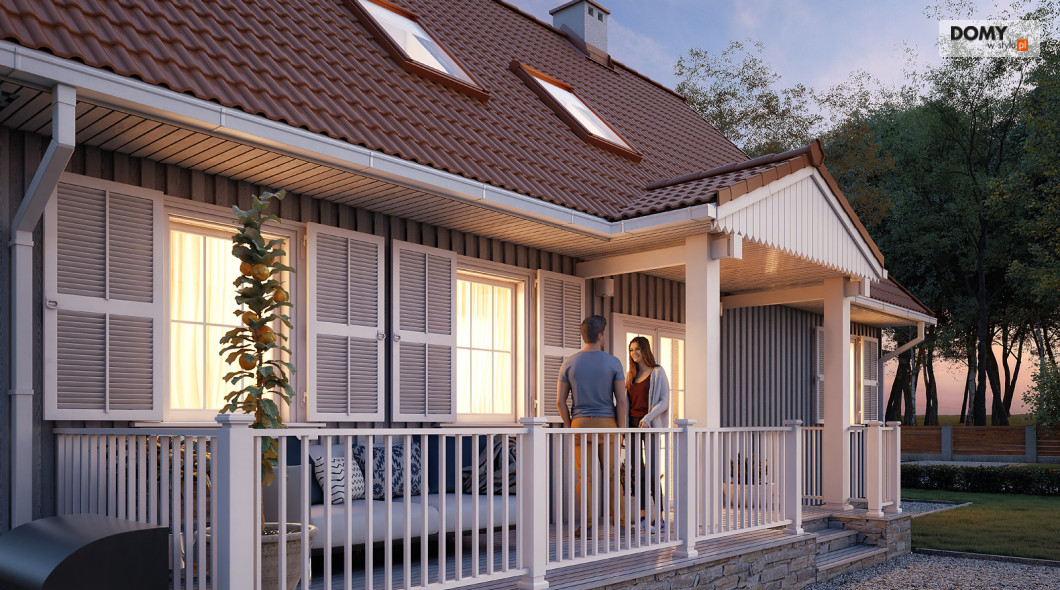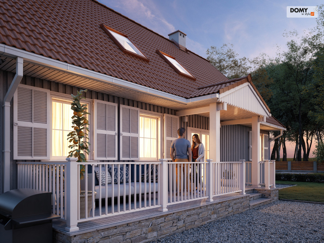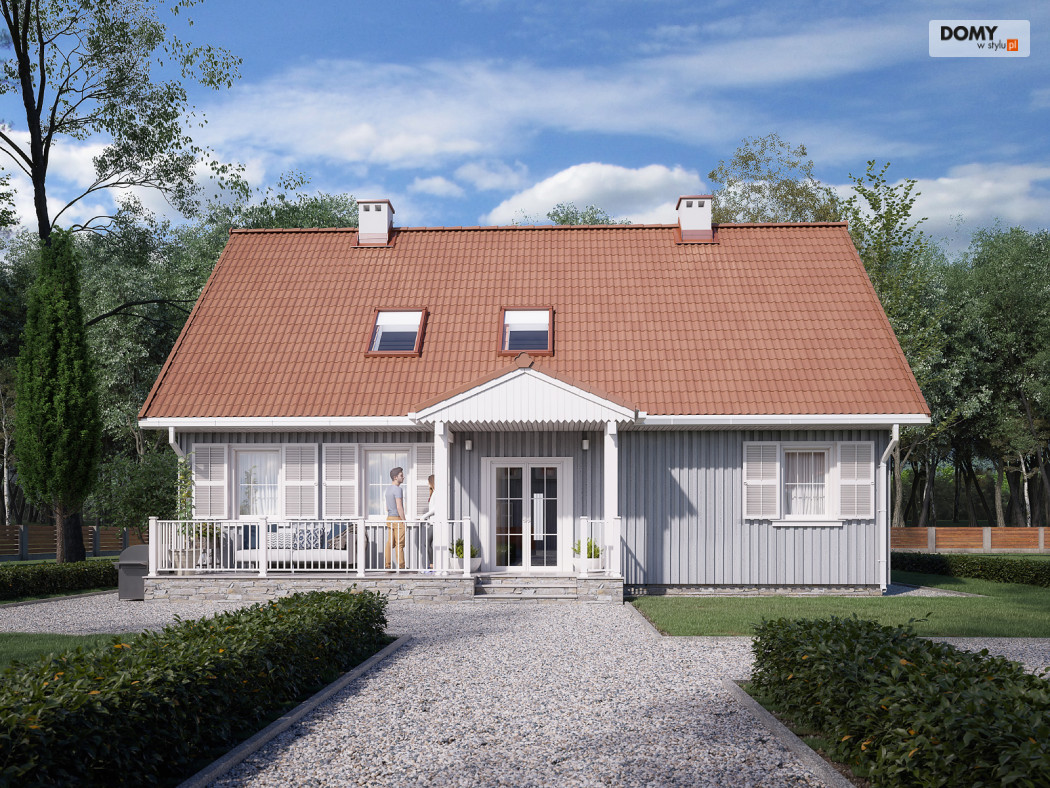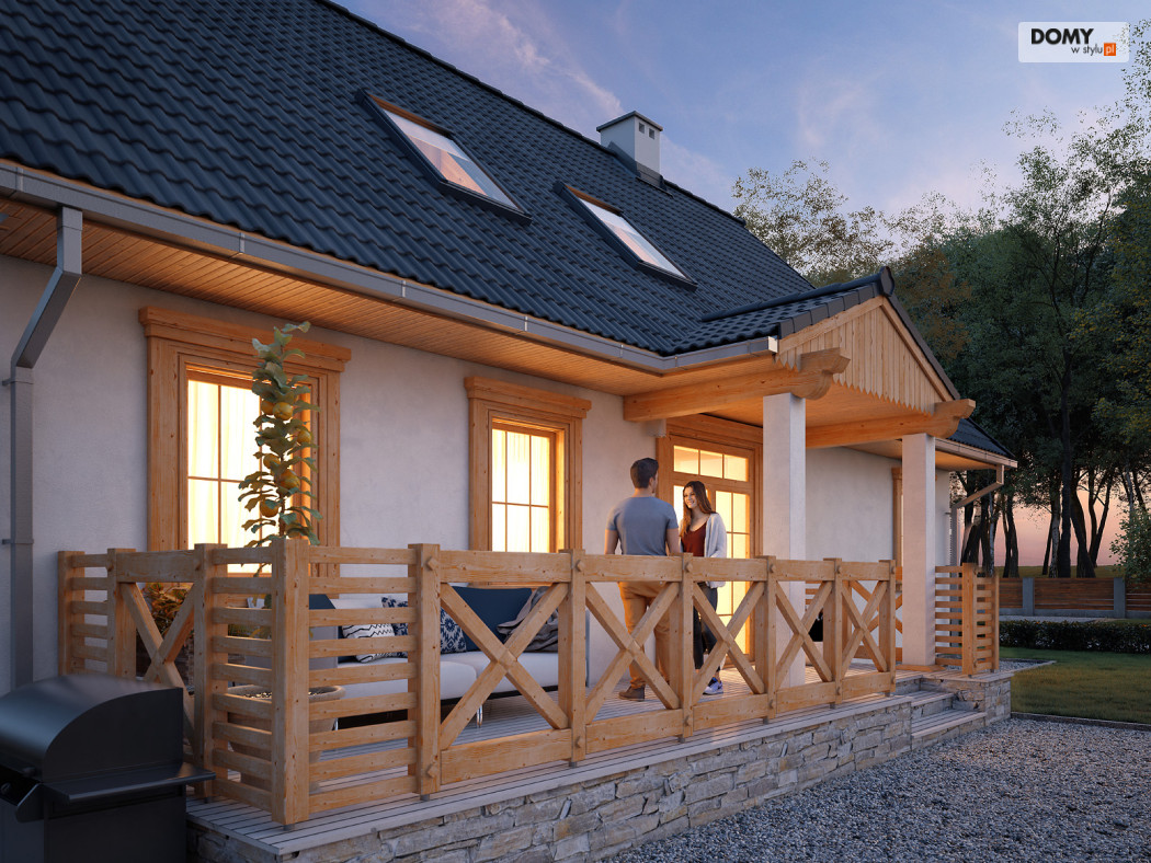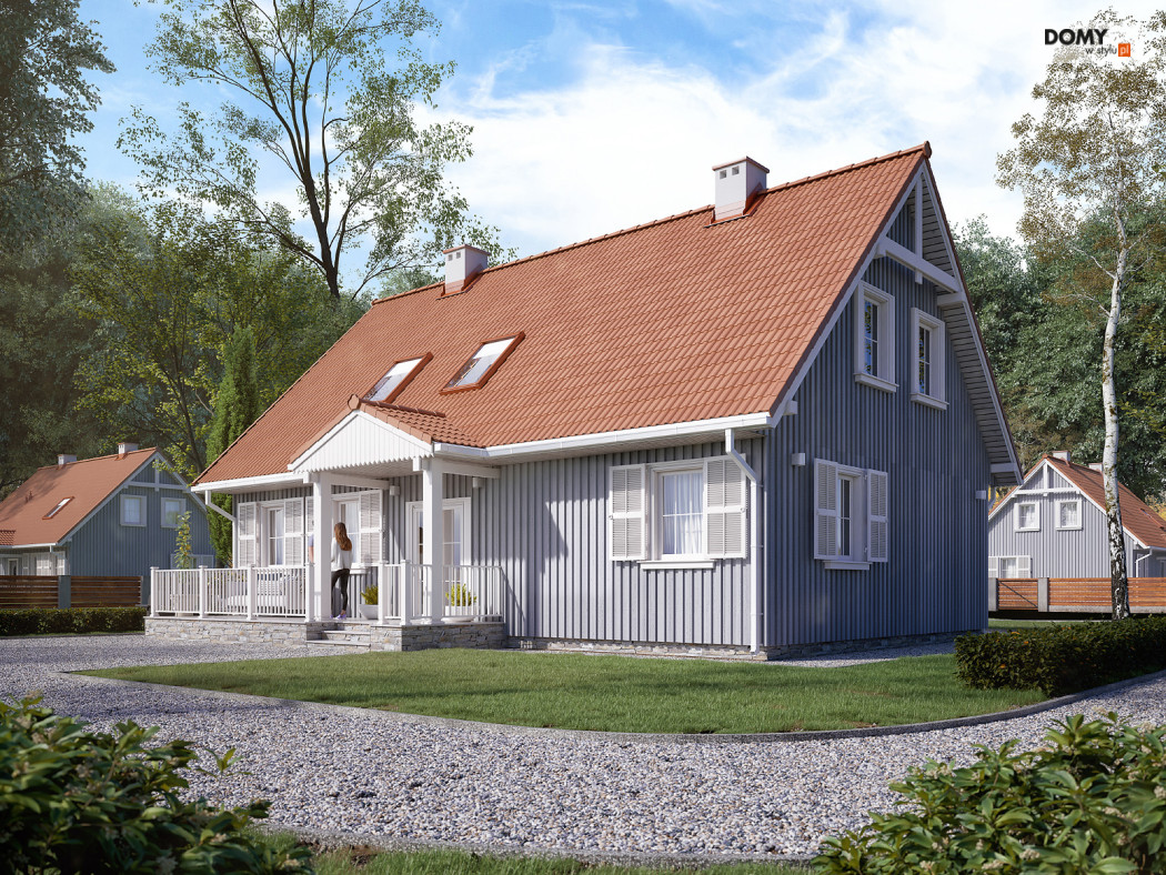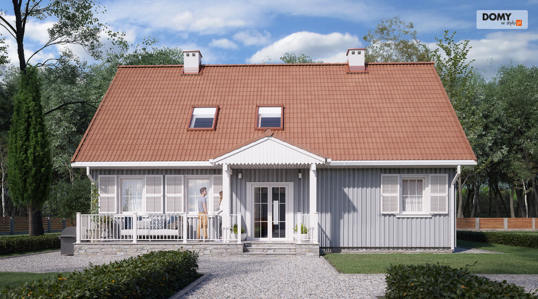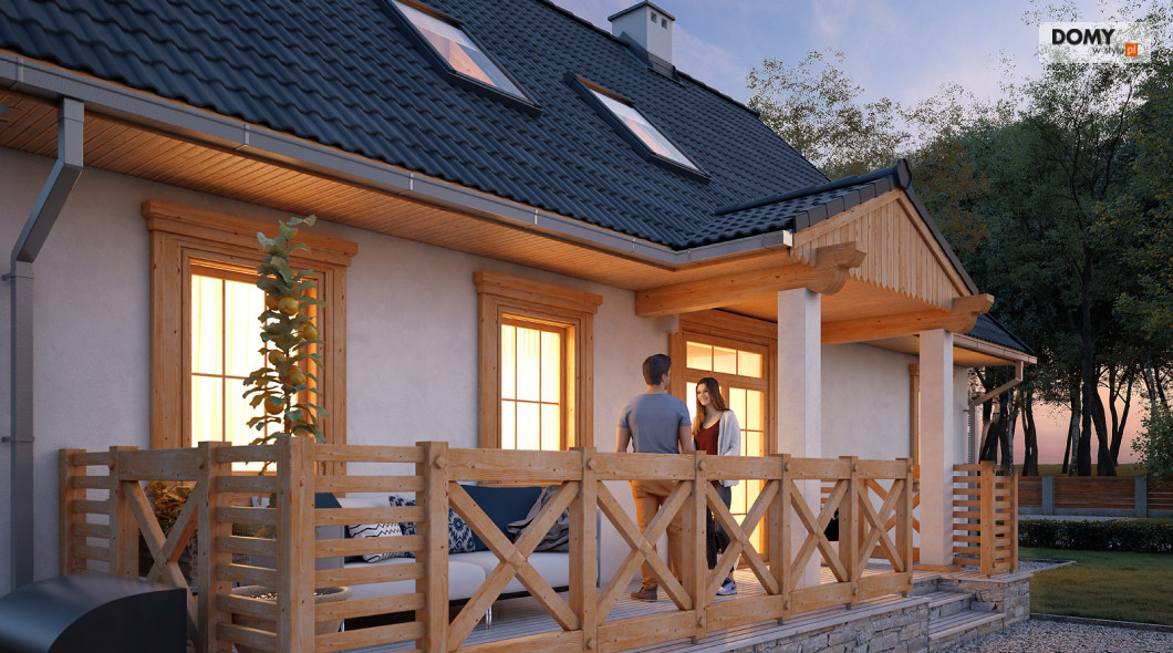 Dom jednorodzinny, parterowy z użytkowym poddaszem, niepodpiwniczony. Dom o charakterze wiejskim. Prosta, tradycyjna bryła typowej, podlaskiej chaty. Na parterze zaprojektowano dodatkowy pokój.