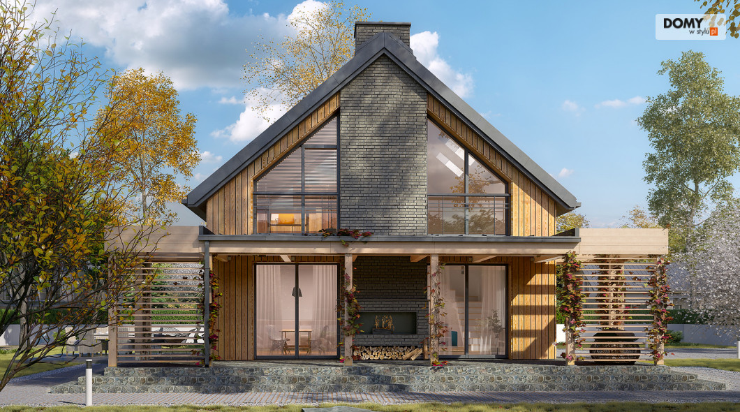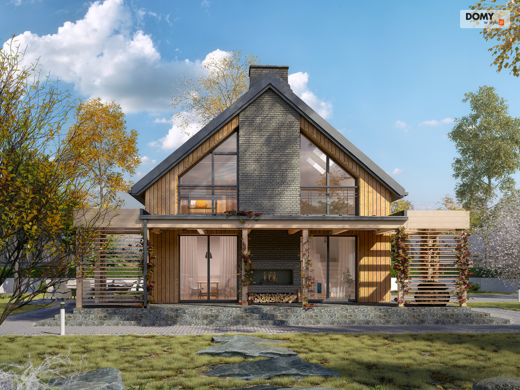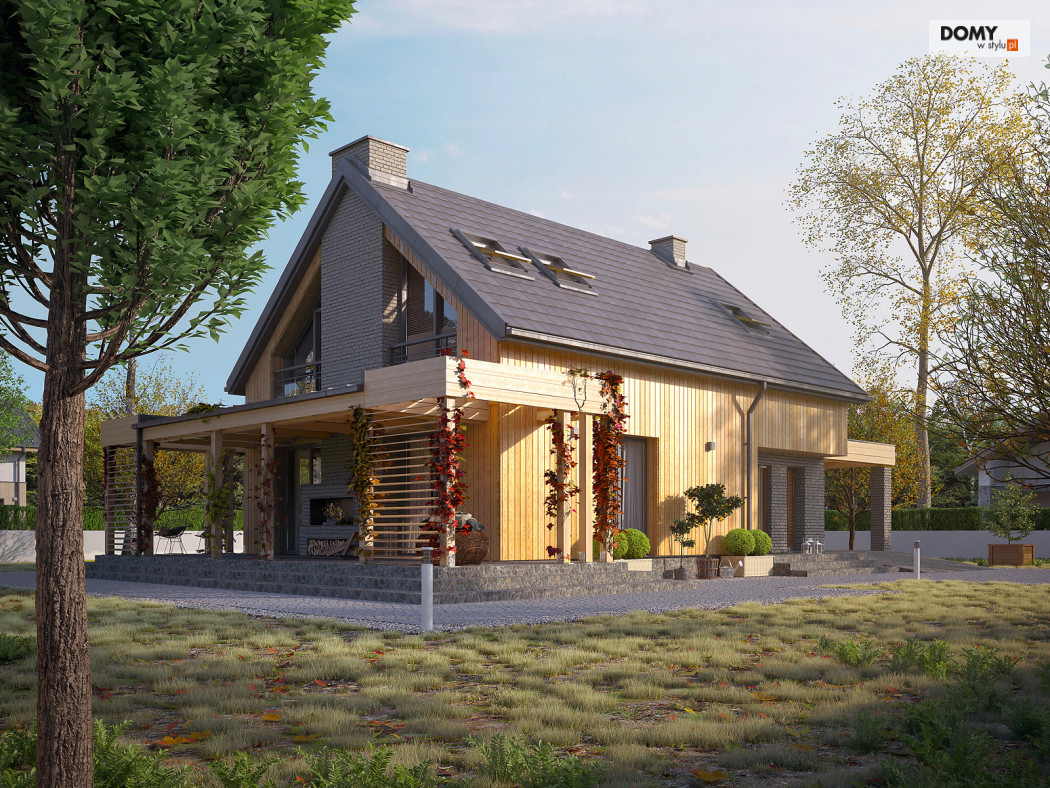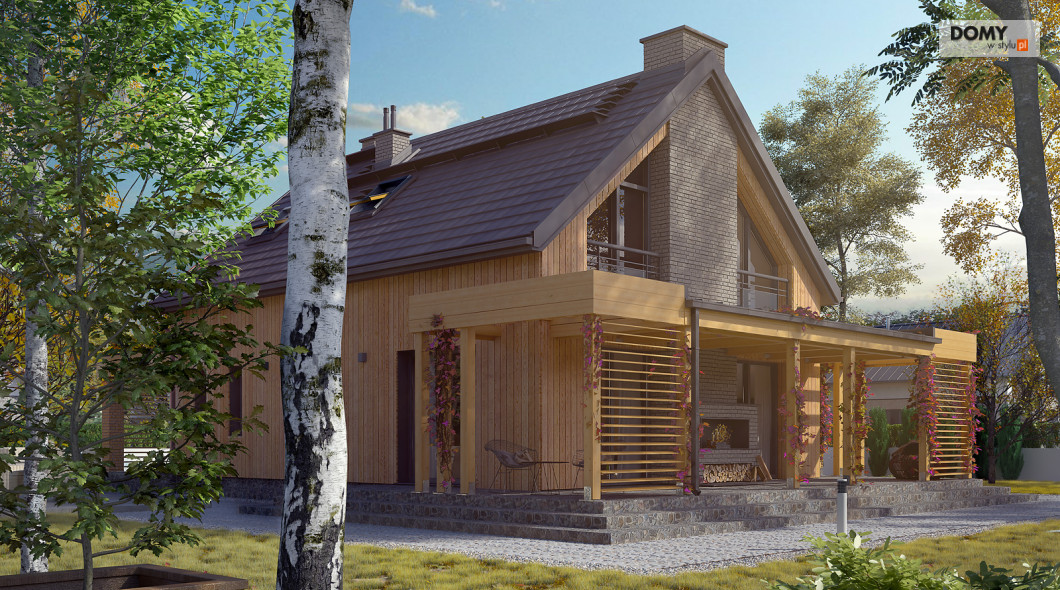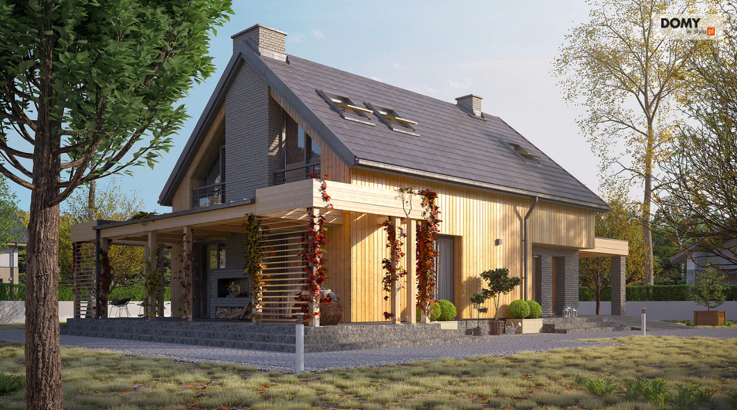 Weranda 3 to nowoczesny projekt domu jednorodzinnego z użytkowym poddaszem. Zaprojektowany został w tradycyjnej, murowanej technologii. Atutem projektu jest taras z zewnętrznym kominkiem. Taras został zadaszony piękna drewnianą pergolą, która nie tylko chroni przed słońcem, ale również jest jego ozdobą. Przepiękny duży salon połączony z jadalnią i otwartą kuchnią, sprawia wrażenie przestronności wnętrza. Na poddaszu znajdują się trzy komfortowe sypialnie oraz jedna duża łazienka. Podobnie jak w poprzednich wersjach projektu, nad salonem znajduje się antresola.