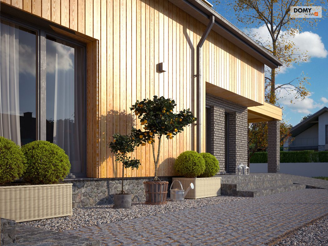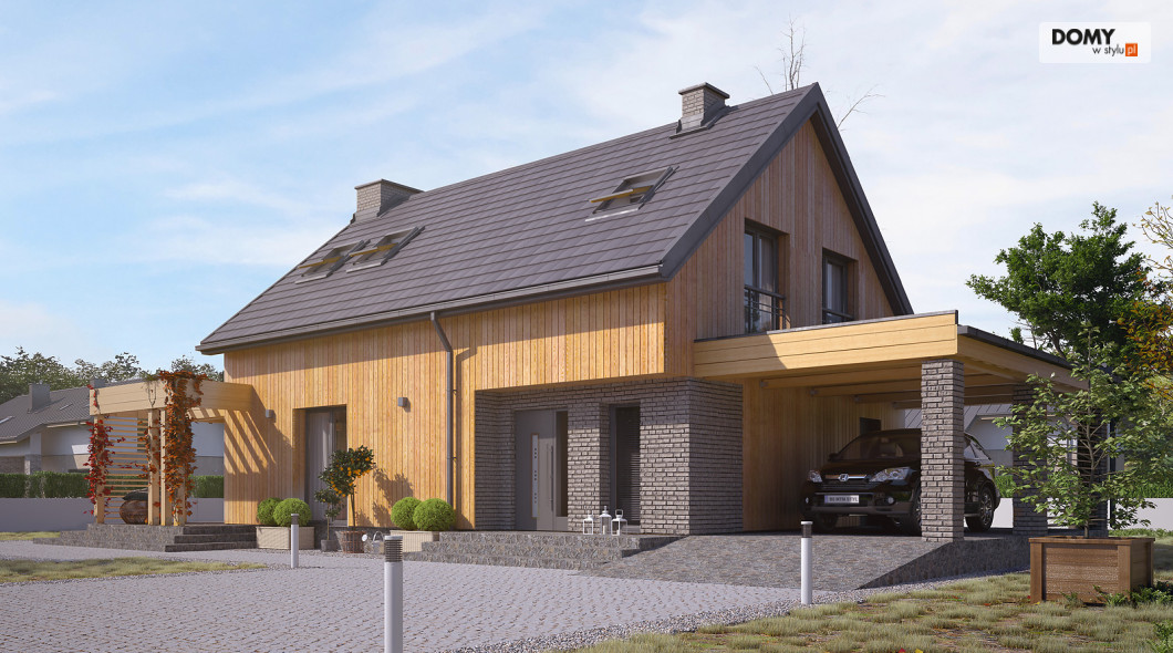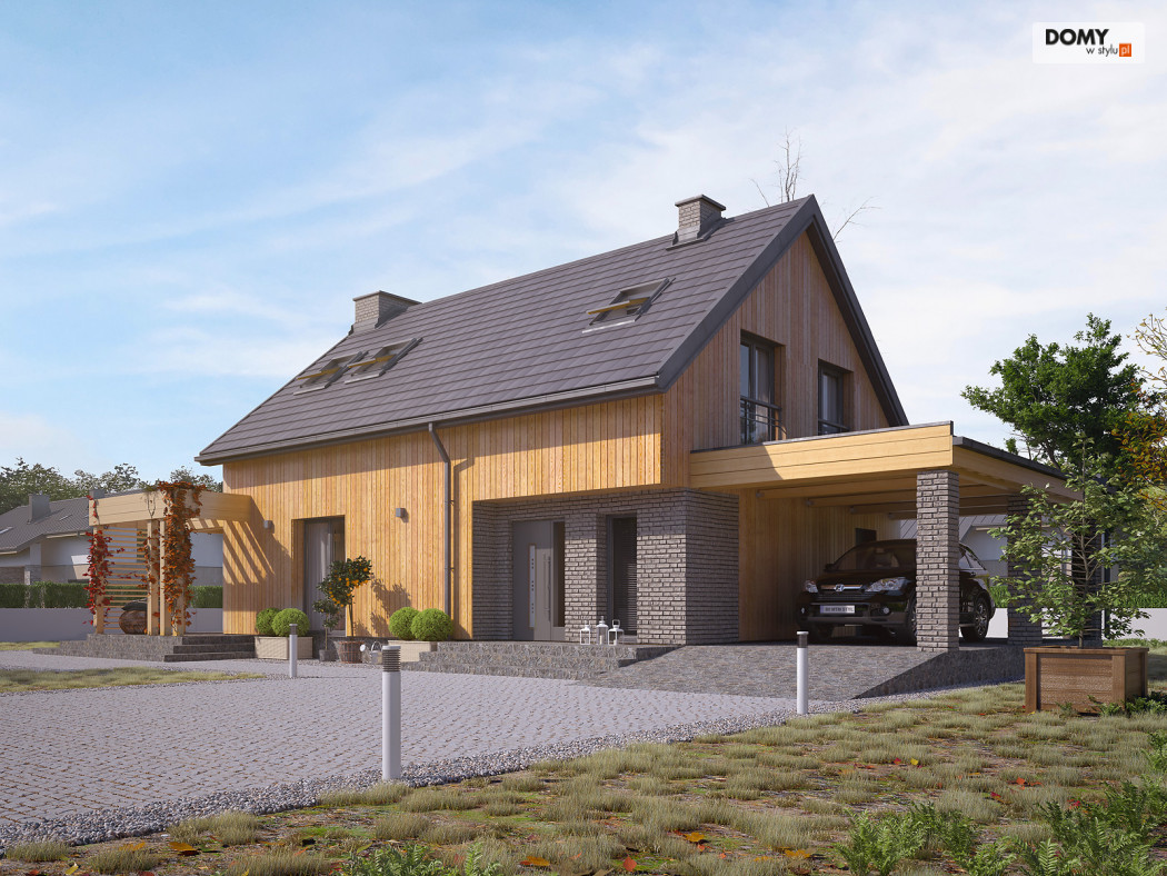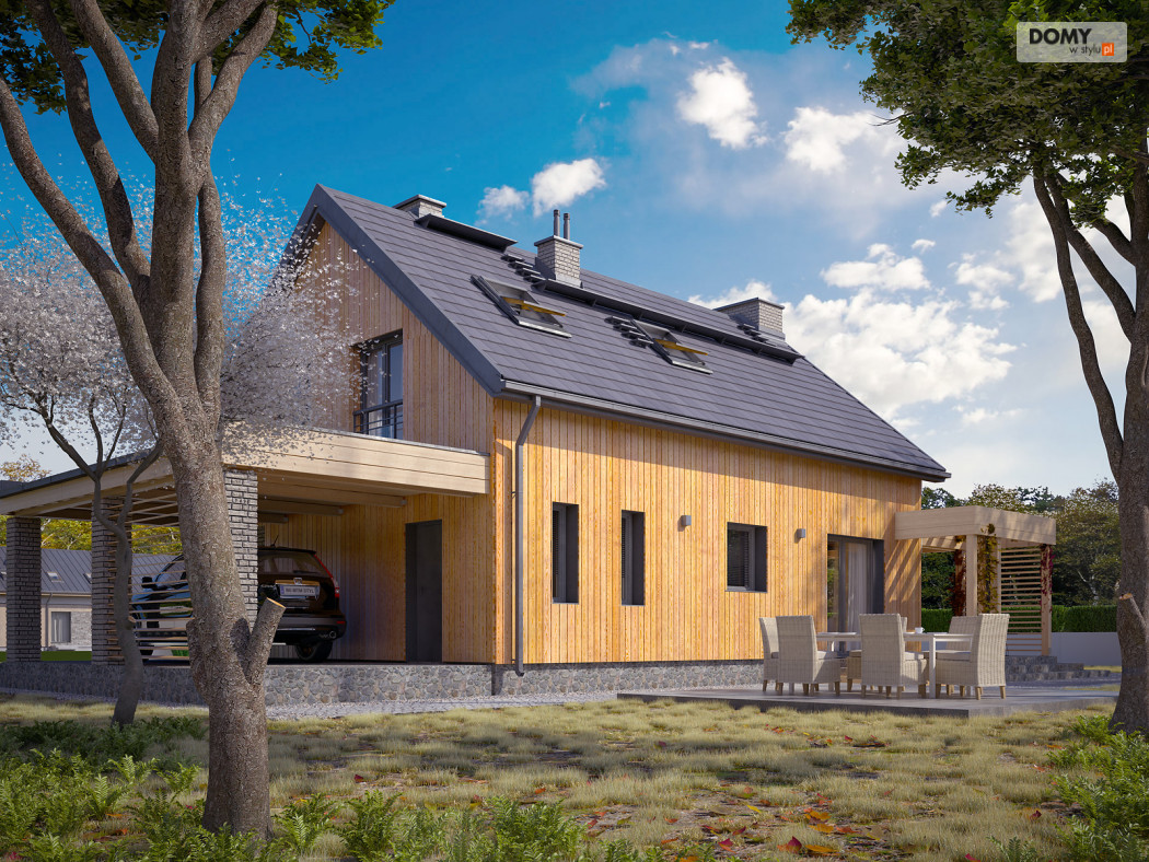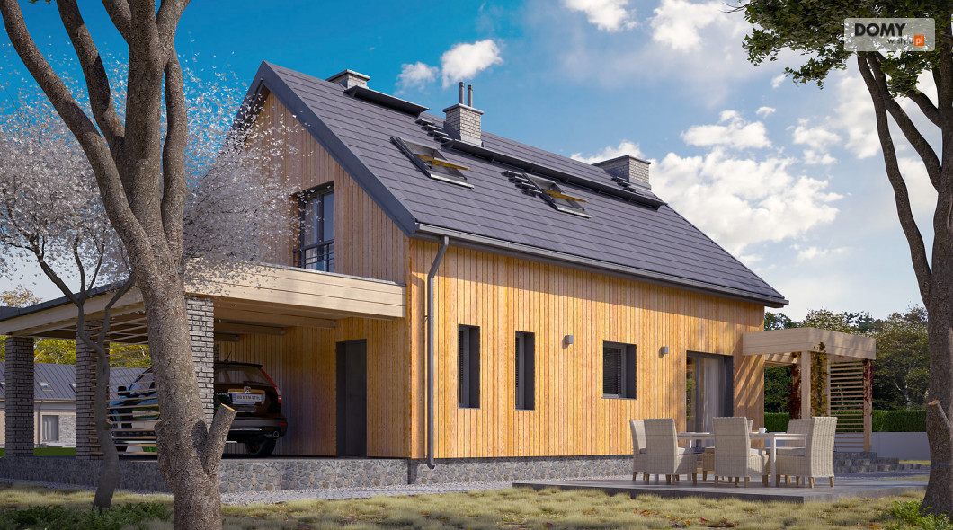 Weranda 3 to nowoczesny projekt domu jednorodzinnego z użytkowym poddaszem. Zaprojektowany został w tradycyjnej, murowanej technologii. Atutem projektu jest taras z zewnętrznym kominkiem. Taras został zadaszony piękna drewnianą pergolą, która nie tylko chroni przed słońcem, ale również jest jego ozdobą. Przepiękny duży salon połączony z jadalnią i otwartą kuchnią, sprawia wrażenie przestronności wnętrza. Na poddaszu znajdują się trzy komfortowe sypialnie oraz jedna duża łazienka. Podobnie jak w poprzednich wersjach projektu, nad salonem znajduje się antresola.