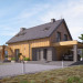 Koszt wzniesienia budynku wraz z pokryciem dachu i stolarką zewnętrzną (okna i drzwi). Bez instalacji, ocieplenia i robót wykończeniowych.