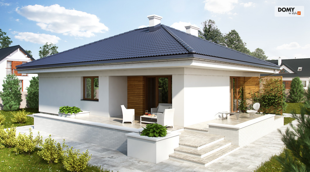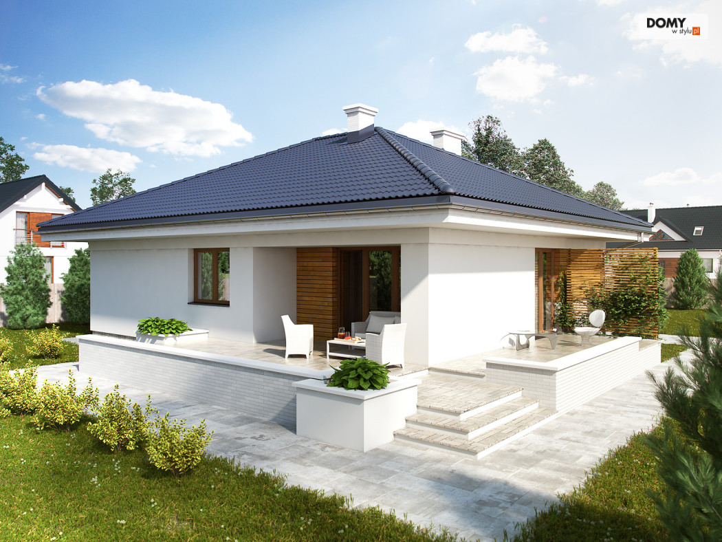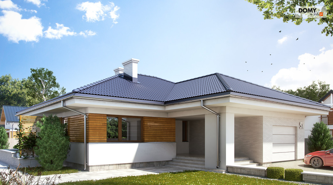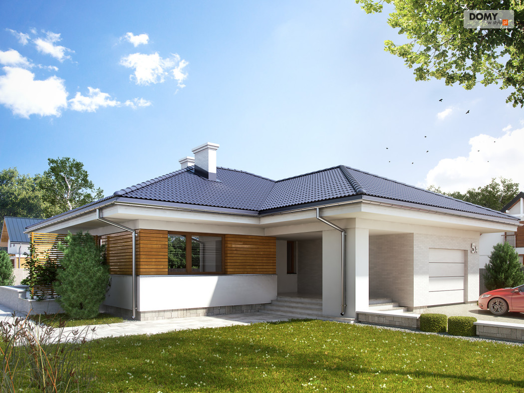 Atut 2 to niewielki dom parterowy zaprojektowany z myślą o komforcie 4-osobowej rodziny. 3Obszerny jednostanowiskowy garaż pomieści również dodatkowy jednoślad czy kosiarkę. Wnętrze, pomimo skromnej powierzchni , dzięki licznym przeszkleniom sprawia lekkie i przestronne wrażenie. Ciekawa bryła z wejściem zaakcentowanym podcieniem posiada wewnątrz klasyczny podział na część dzienną i nocną. Część dzienna to przestronny salon z kominkiem, otwarta kuchnia oraz jadalnia. Część nocna to trzy wygodne sypialnie oraz rodzinna łazienka.