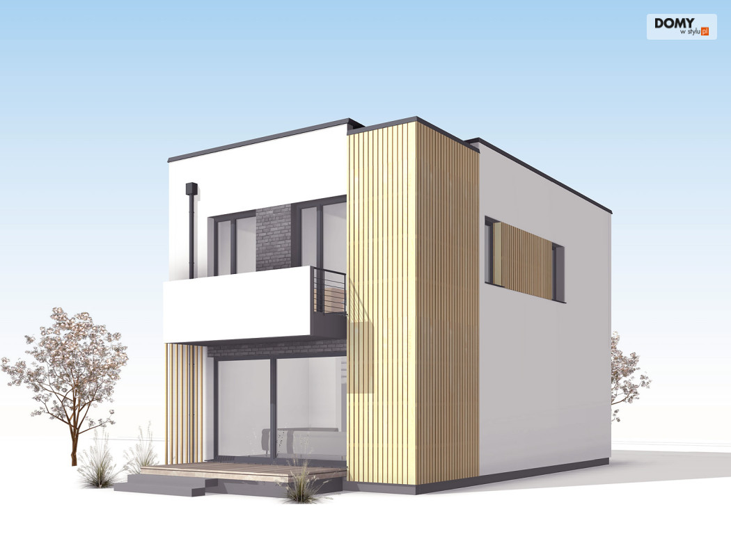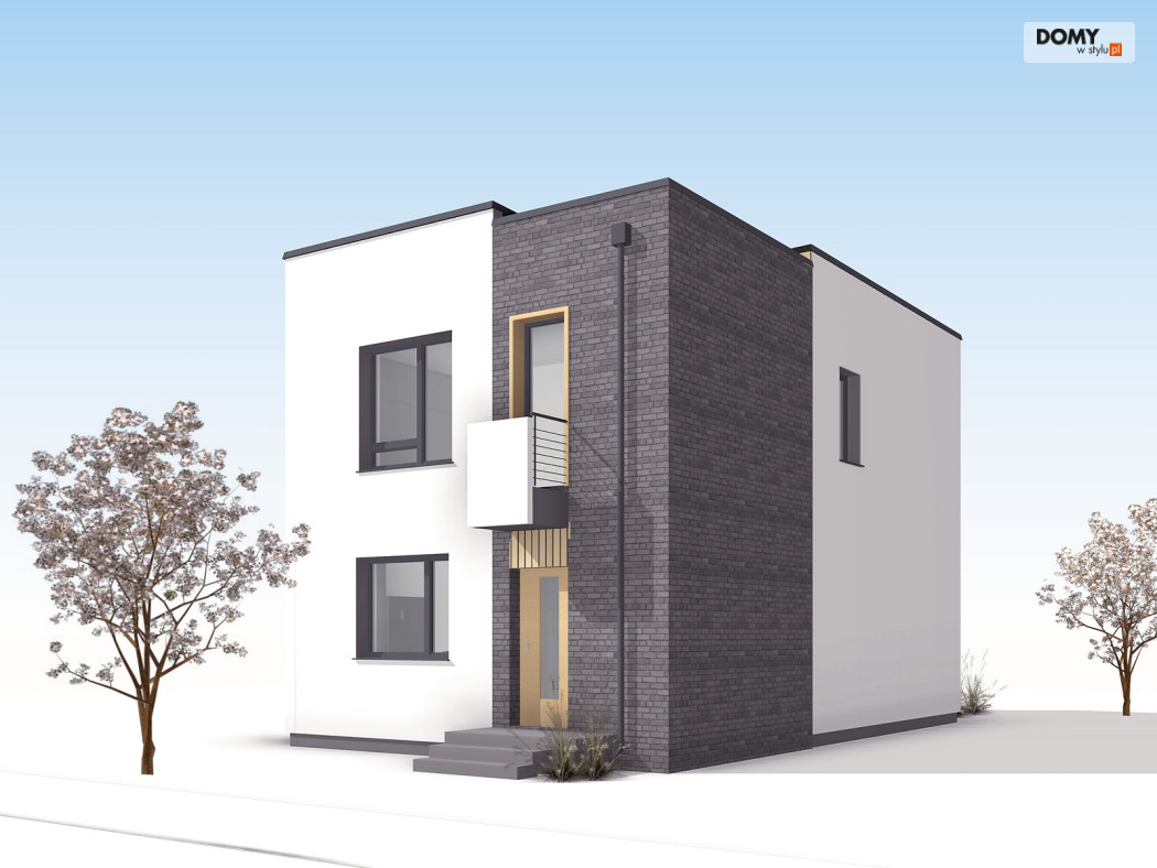 Jarzębina to niewielki piętrowy dom przeznaczony dla 4-osobowej rodziny. Projekt przyciąga uwagę prostą, nowoczesną bryłą. Podział na strefę dzienną i prywatną odpowiada podziałowi na parter i piętro. Otwarta przestrzeń parteru umożliwia swobodną aranżację wnętrz. Układ funkcjonalny został rozplanowany wokół głównego pionu w którym znajdują się pomieszczenia i urządzenia techniczne i sanitarne. Piętro, jako część prywatna, mieści trzy sypialnie z dostępem do balkonów oraz łazienkę. Zwarta bryła pozwala obniżyć koszty budowy i utrzymania domu.