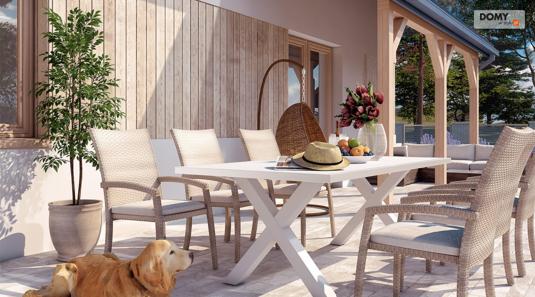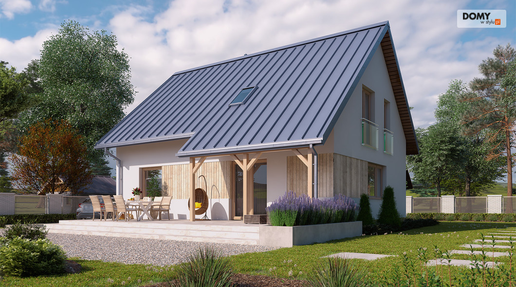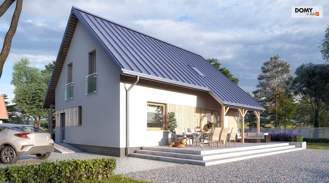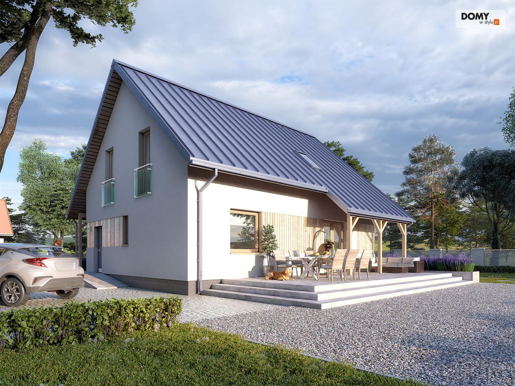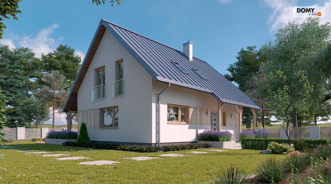 Jednorodzinny budynek mieszkalny, parterowy z użytkowym poddaszem, przeznaczony dla 5 - 6-osobowej rodziny. Na parterze oprócz pomieszczeń reprezentacyjnych przewidziano dodatkowy pokój, przestronną kotłownię oraz spiżarnię. Na poddaszu zaprojektowano cztery sypialnie, w tym jedną z garderobą, oraz łazienkę.