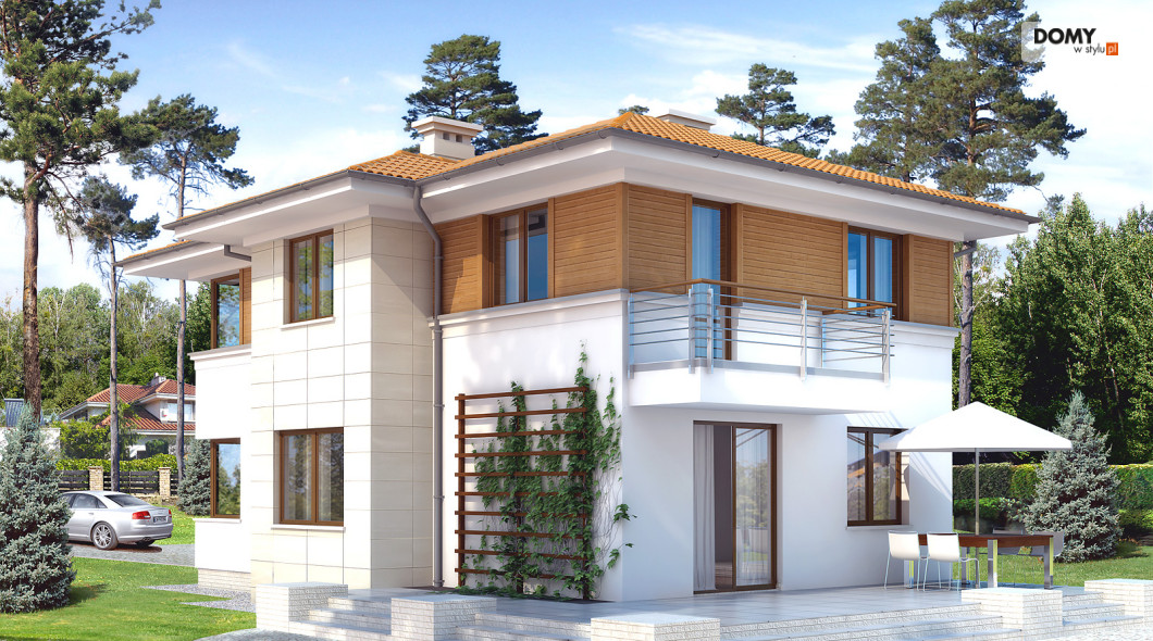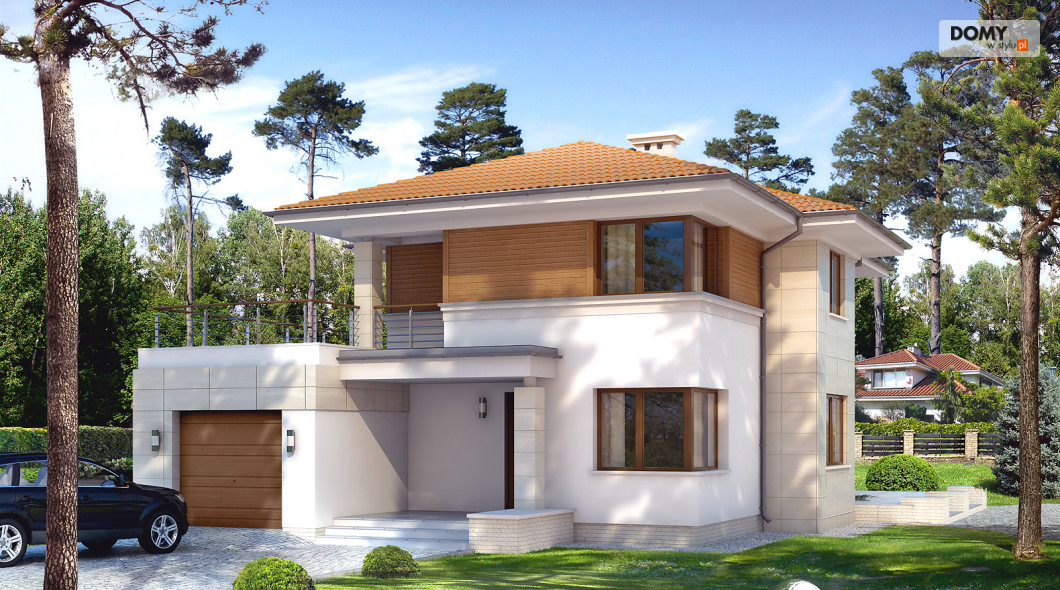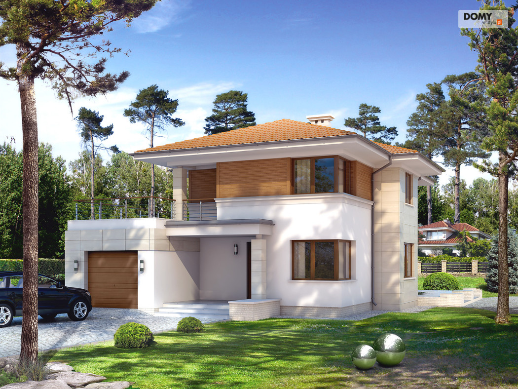 Dwukondygnacyjny dom jednorodzinny, niepodpiwniczony, przeznaczony dla 4 – 5-osobowej rodziny. Na parterze obok przestronnej, jednoczęściowej części dziennej zaprojektowano dodatkowy pokój oraz część gospodarczą. Pełna druga kondygnacja, na której przewidziano trzy sypialnie, garderobę oraz łazienkę, zapewnia komfort mieszkania. Elegancka, prosta bryła.