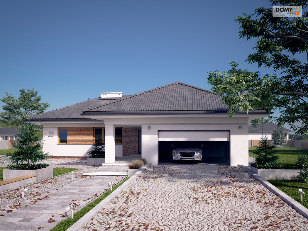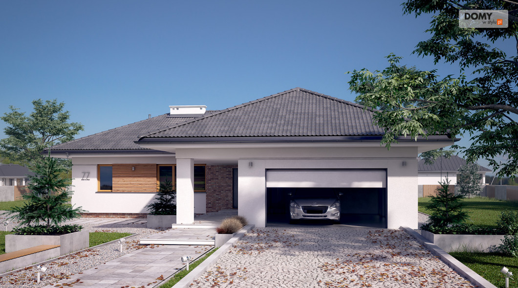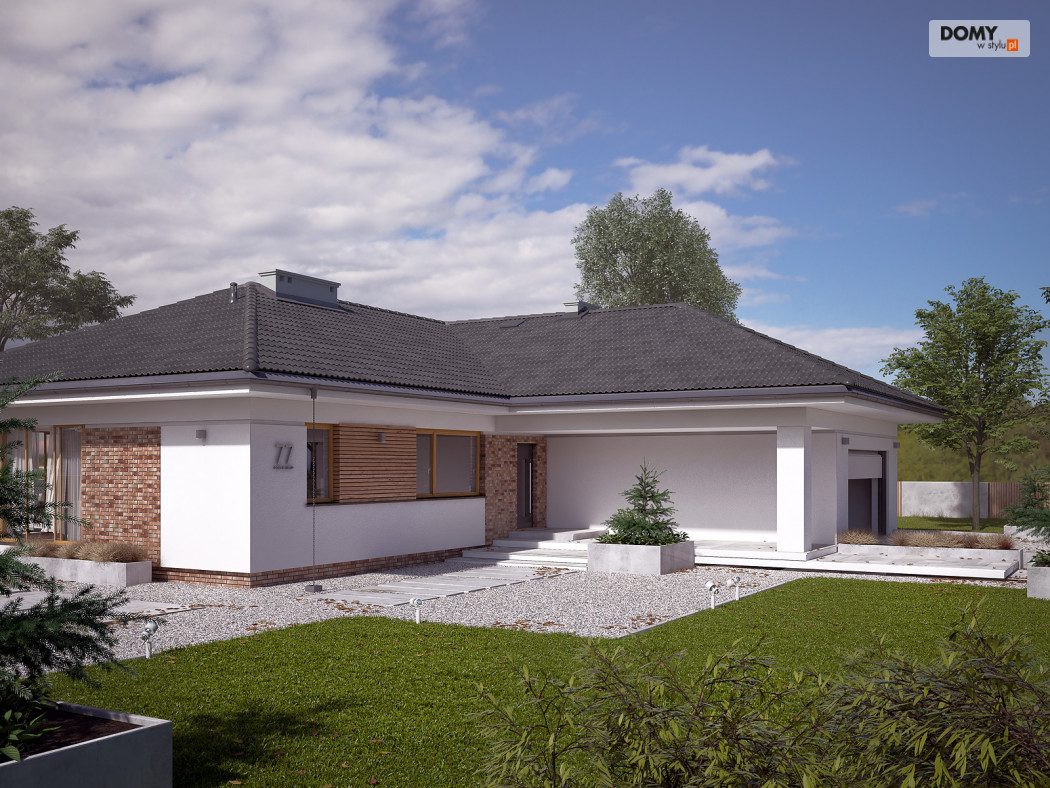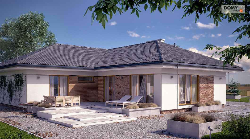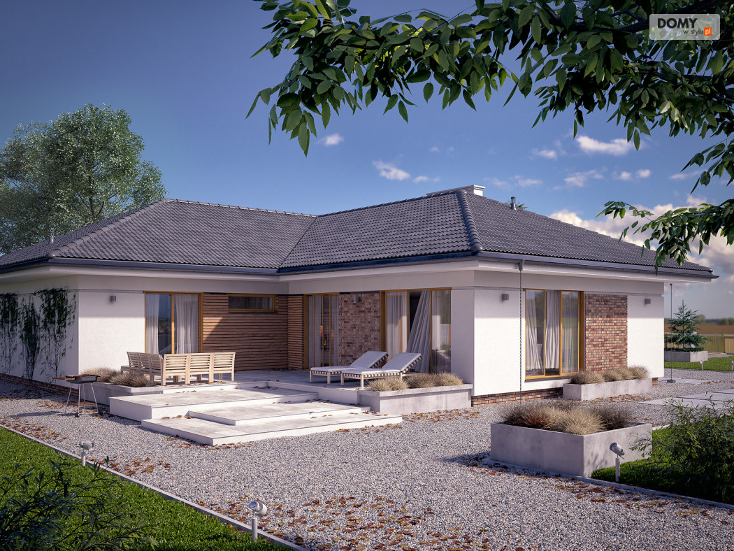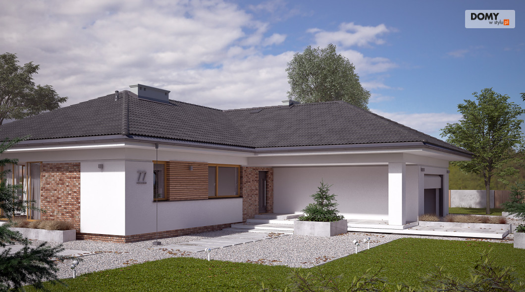 Ambrozja 10 jest propozycją domu parterowego zaprojektowanego z myślą o 5 osobowej rodzinie. Budynek charakteryzuje się duża przestrzeń, dzięki której użytkowanie będzie bardzo komfortowe. Bryła jest dość prosta i zwarta, co pozwoli na łatwą i stosunkowo niedrogą budowę. Całość prezentuje się bardzo efektownie i okazale. Uroku dodają duże przeszklenia oraz nowoczesne materiały zastosowane na elewacjach. Projekt doskonale łączy nowe i tradycyjne trendy w polskiej architekturze, przez co stał się jednym z najczęściej wybieranych projektów tego typu.