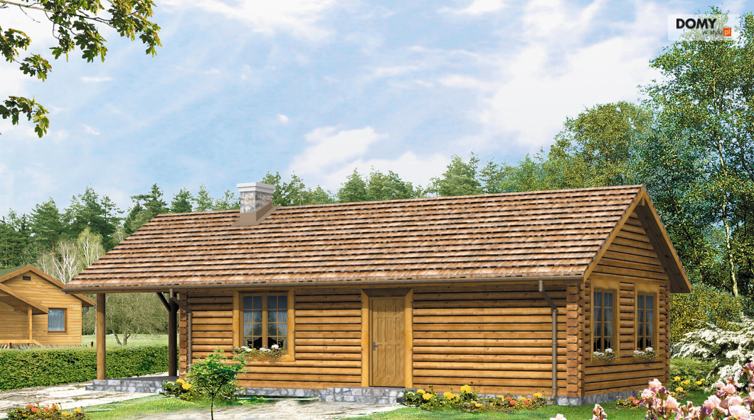 Parterowy dom letniskowy. Przeznaczony na wypoczynek 2 – 3-osobowej rodziny. Zadaszony w całości taras pozwala wypocząć nawet w deszczowe letnie dni.
