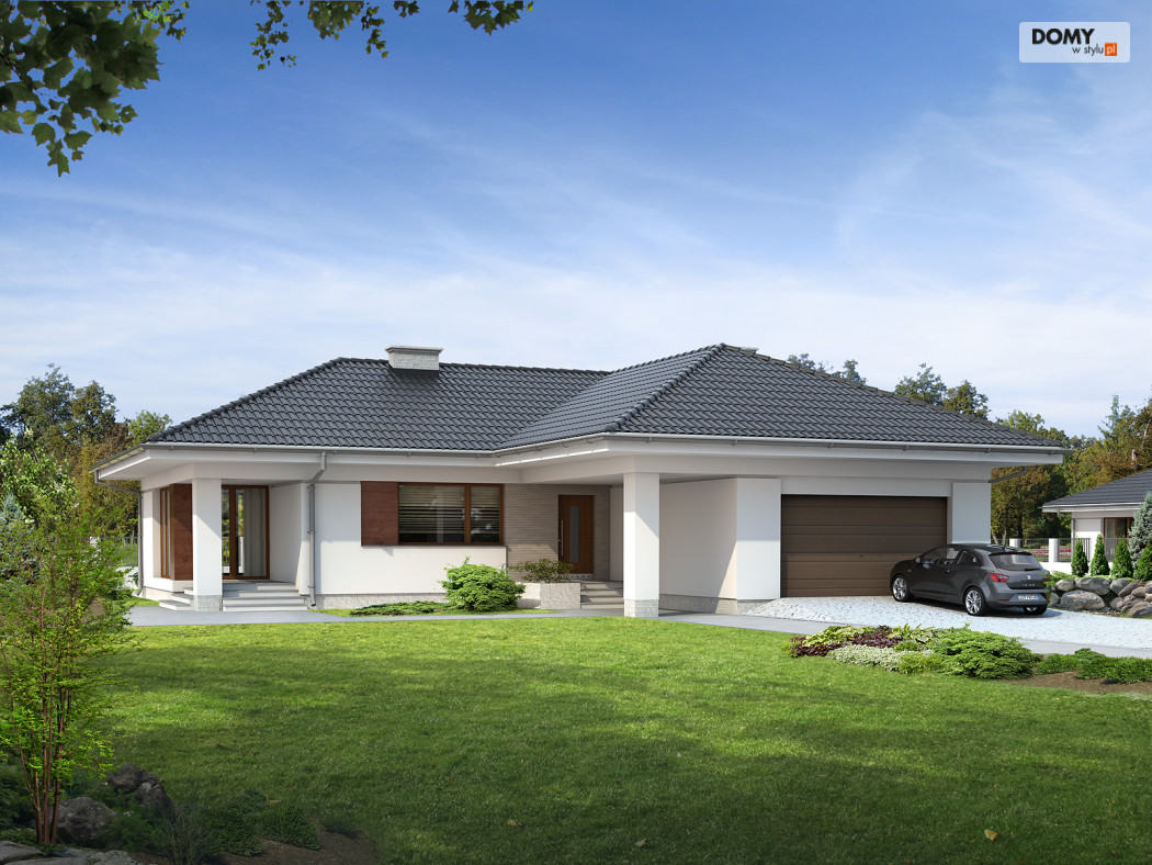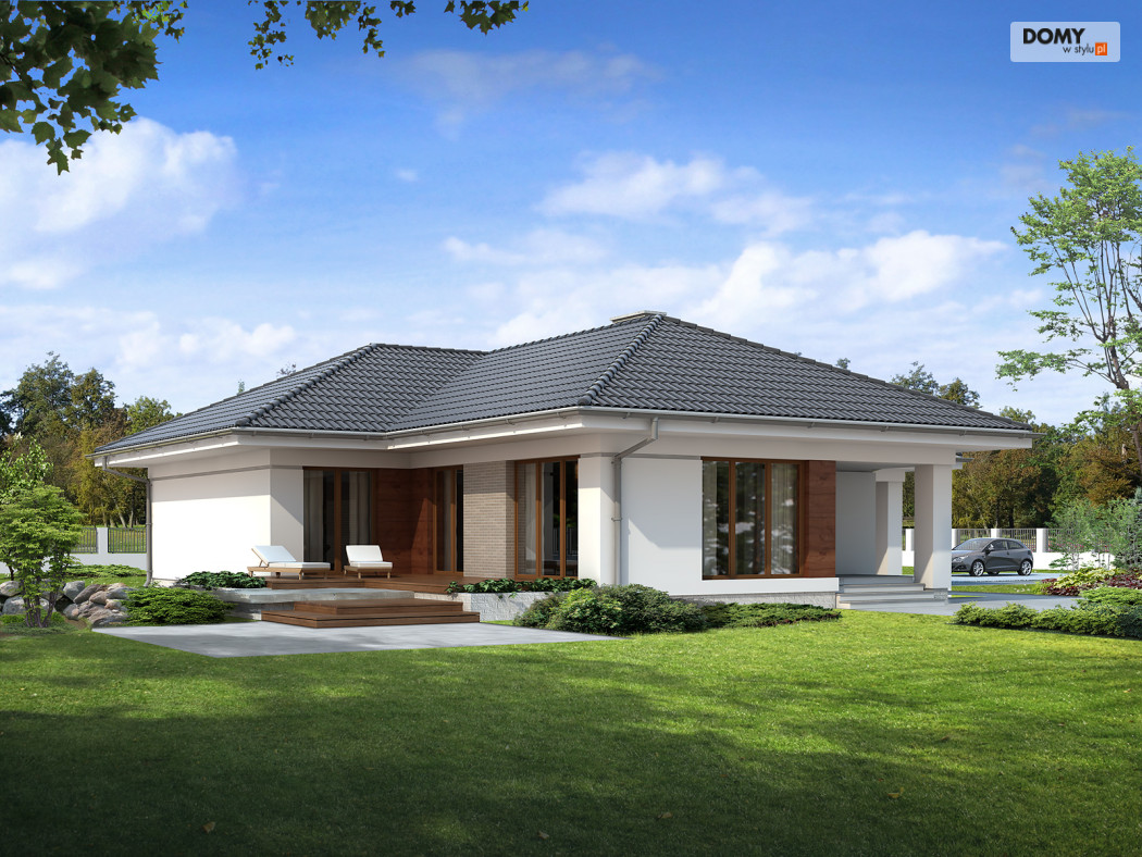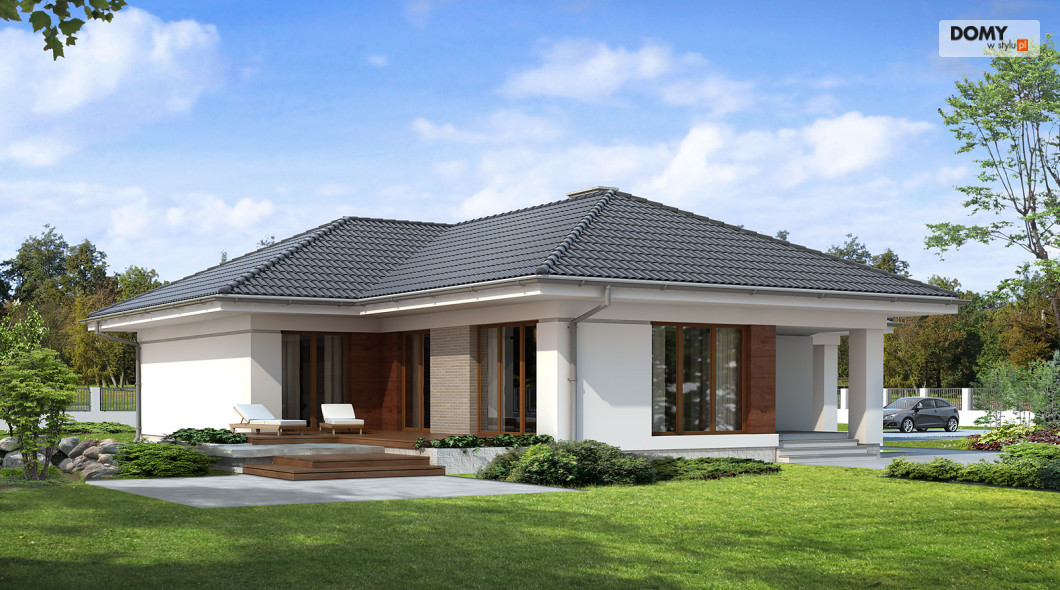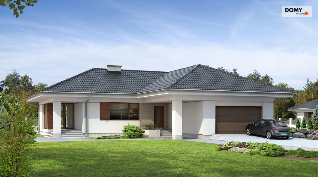 Jednorodzinny dom mieszkalny, parterowy, przeznaczony dla 4-osobowej rodziny. Wyraźny podział na część dzienną: kuchnia ze spiżarnią i salon z jadalnią; część nocną: trzy sypialnie z łazienką, oraz część gospodarczą: wc, kotłownia i dwustanowiskowy garaż. Ciekawe, nowoczesne elewacje. Duży, przestronny taras.