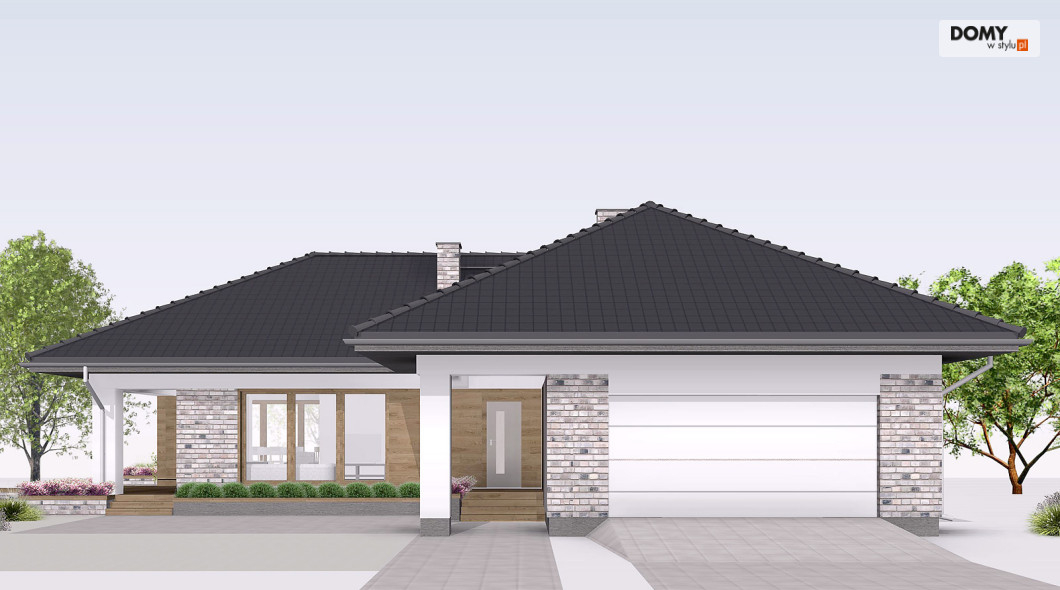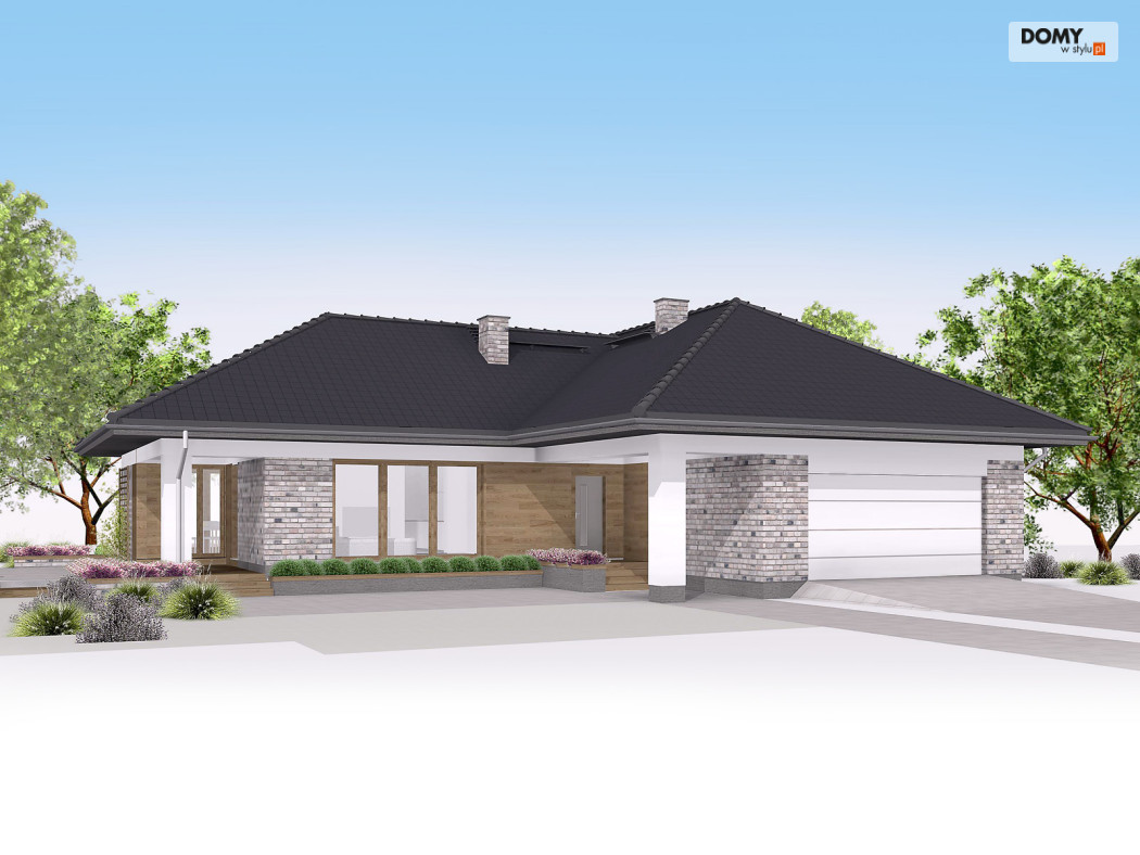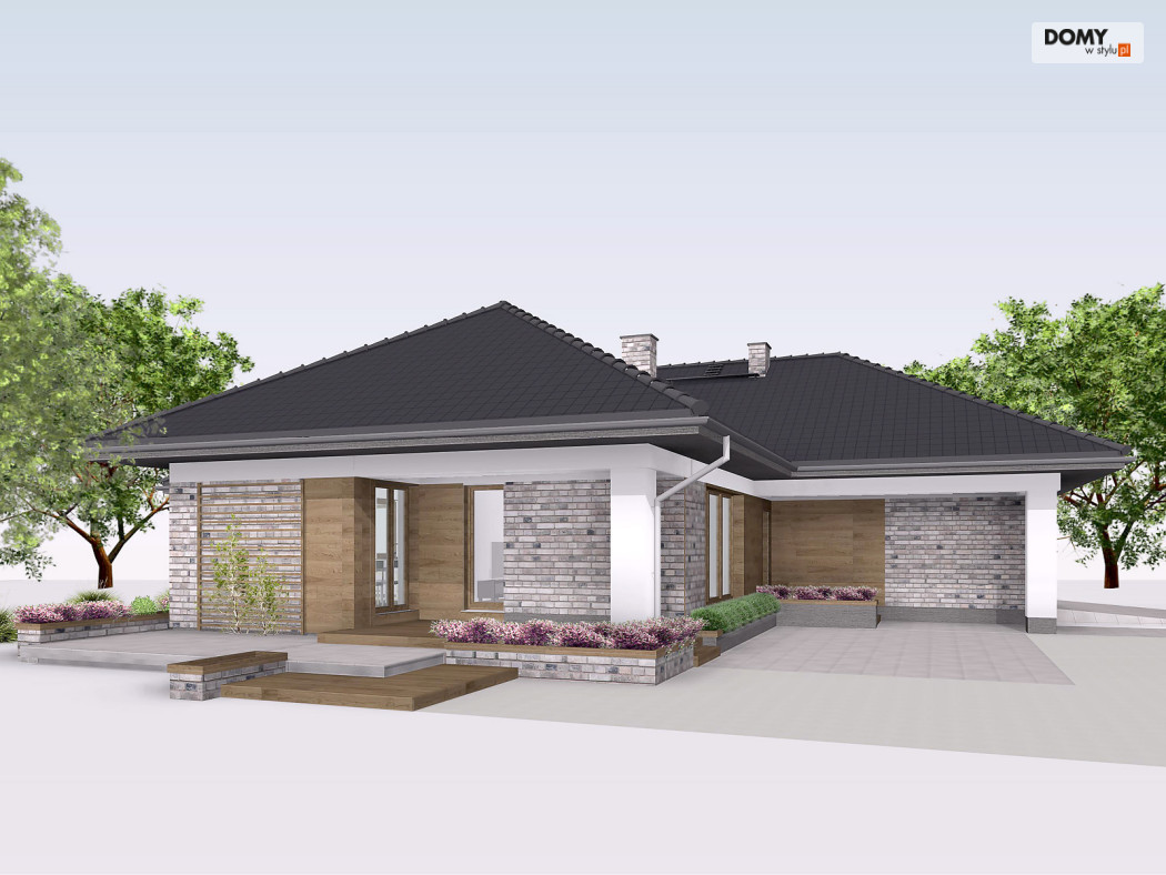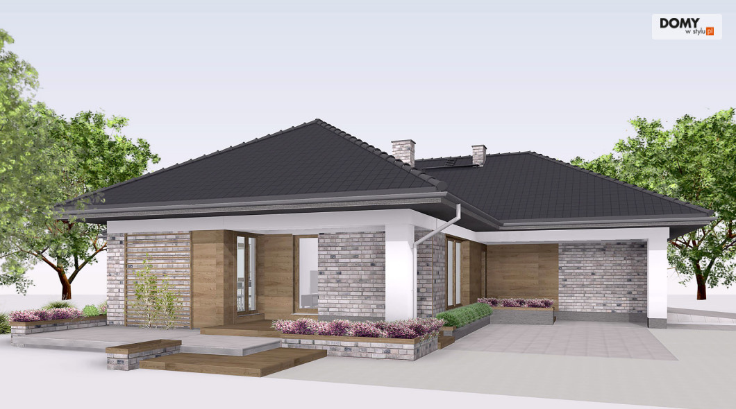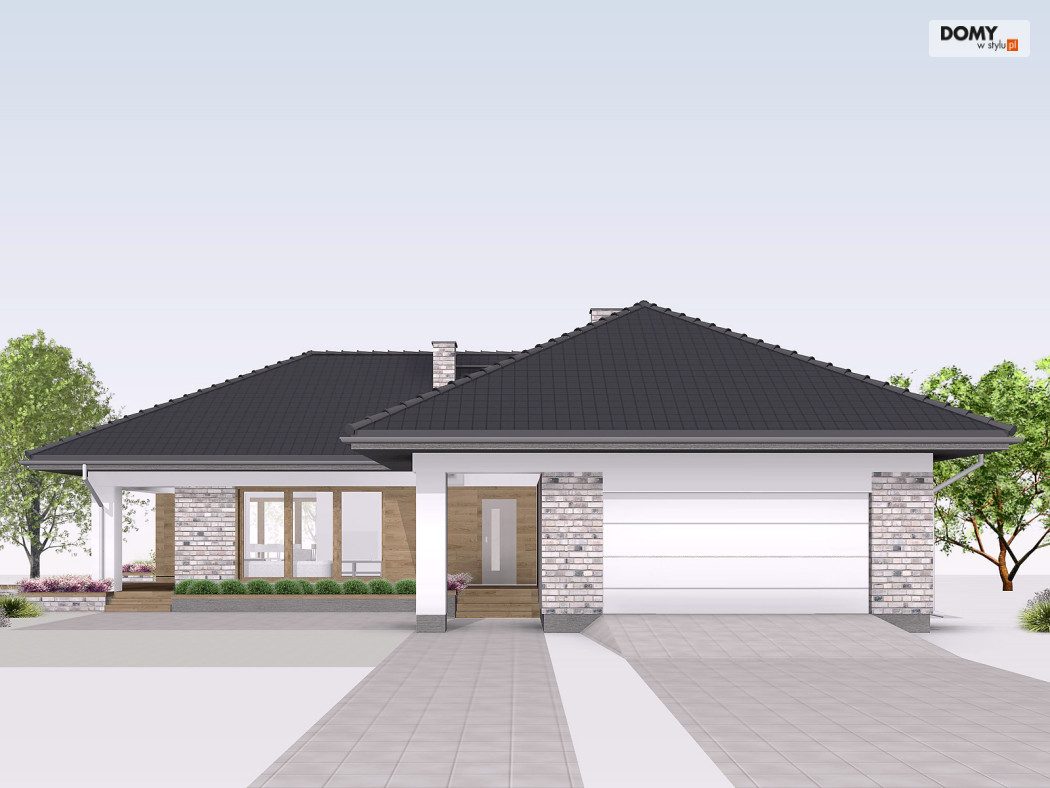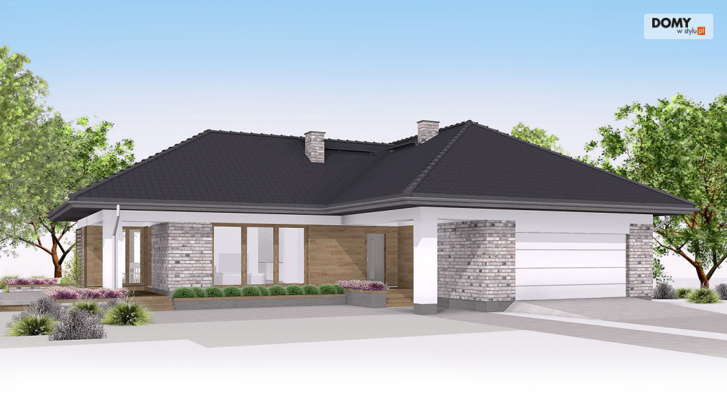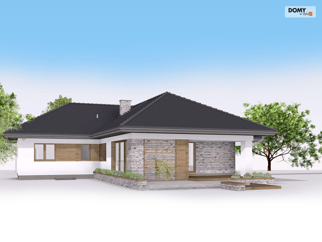 Aksamit 7 to projekt domu parterowego, podpiwniczonego z wjazdem od południa. Układ funkcjonalny zaprojektowano tak, aby wyraźnie podzielić go na przestronną strefę dzienną i przytulną część prywatną. Część dzienna to przestronny salon z kominkiem, jadalnia otwarta na ogród dużymi przeszkleniami oraz funkcjonalna kuchnia. Strefa nocna to cztery sypialnie, ogólnodostępna łazienka i wc. Jedna z sypialni zaadaptowana została na apartament gospodarzy, który posiada prywatną łazienką oraz garderobą. W projekcie przewidziano również część gospodarczą ulokowaną w piwnicy oraz dwustanowiskowy garaż. Część gospodarczą tworzą kotłownia oraz trzy pomieszczenia gospodarcze.