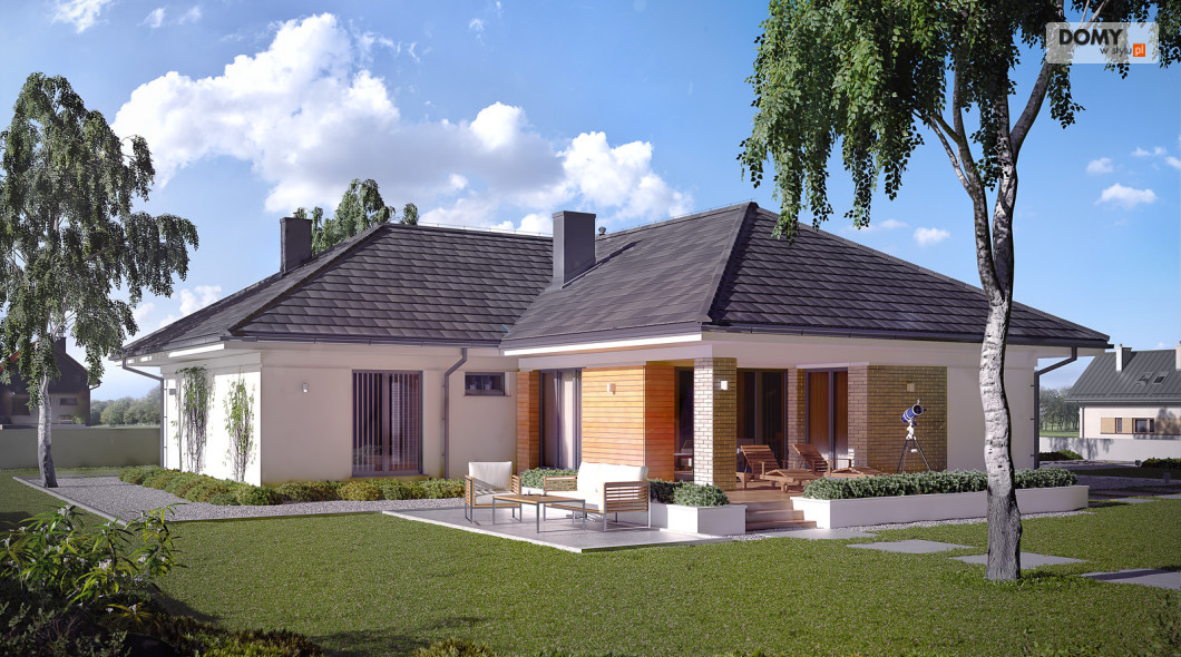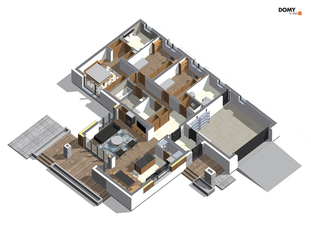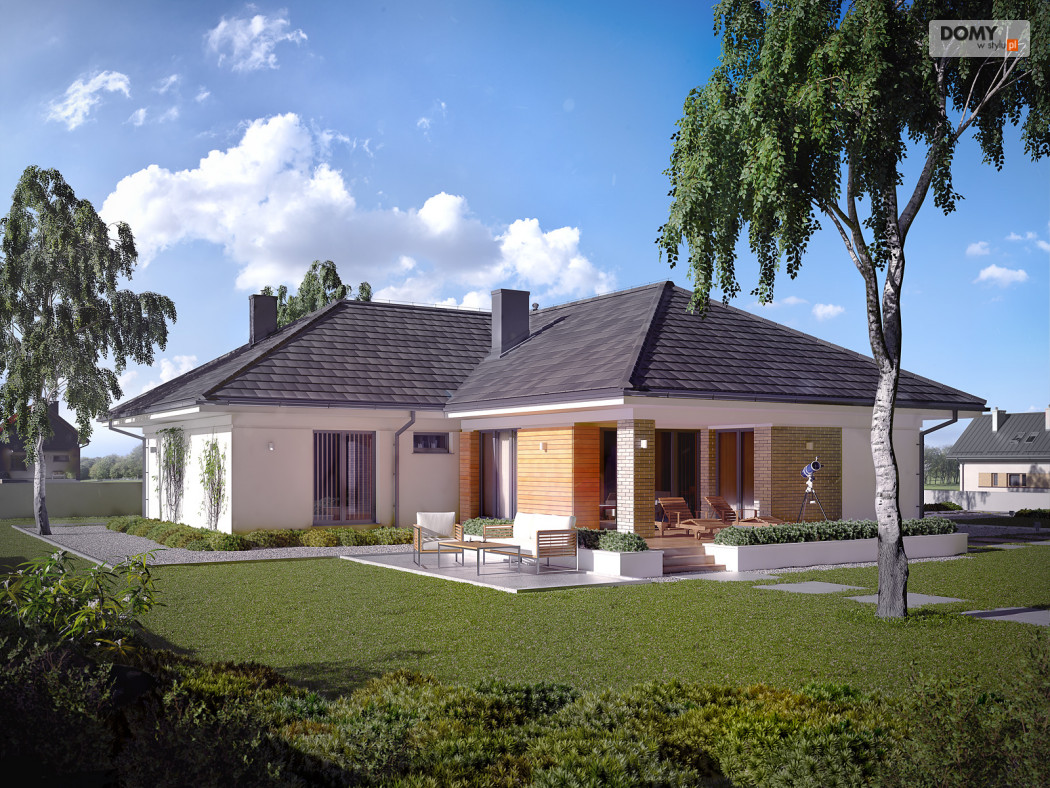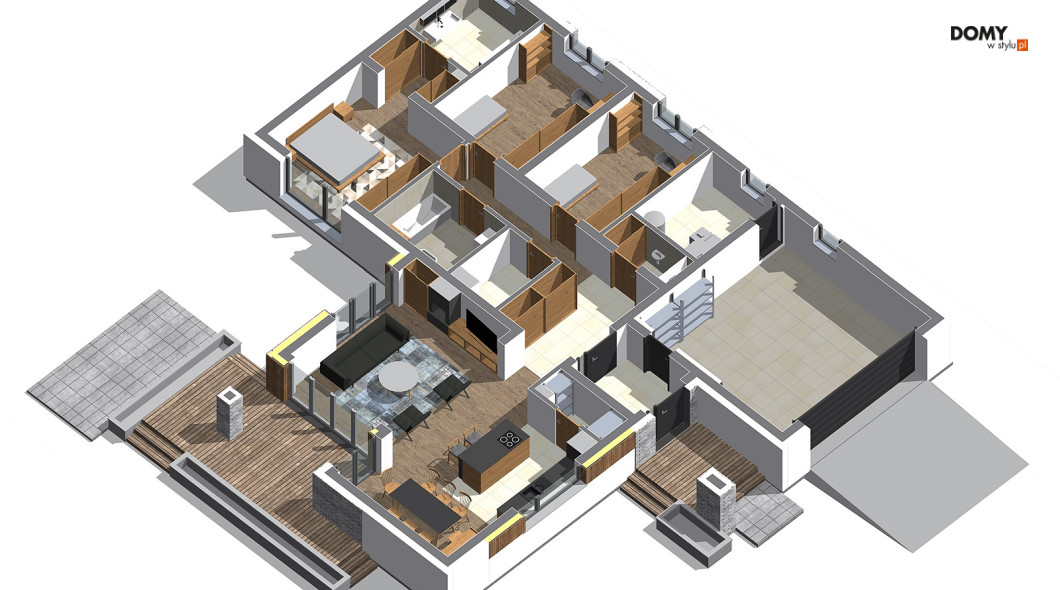 Projekt Ambrozja 11 powstał z myślą o zapewnieniu komfortowych warunków mieszkalnych dla 4-osobowej rodziny. Czytelne wydzielenie strefy dziennej i nocnej zapewnia domownikom poczucie prywatności. W części sypialnej zaproponowano rozwiązane, które staje się standardem w coraz większej liczbie domów - apartament gospodarzy, czyli sypialnia z oddzielną garderobą oraz łazienką. Przestronna część dzienna umożliwia stworzenie zapraszającej, reprezentacyjnej przestrzeni - przyjaznej domownikom oraz ich gościom. Otwarta kuchnia, będąca częścią tej przestrzeni, została wyposażona w wyspę, mogącą służyć również jako bar. Dodatkowym atutem kuchni jest spiżarnia. Pomieszczenie przy hallu wejściowym może być wykorzystane jako garderoba lub pomieszczenie porządkowe. Kameralnym akcentem budynku jest częściowo osłonięty, zadaszony taras.