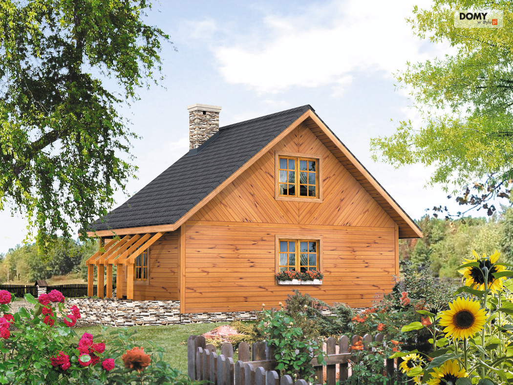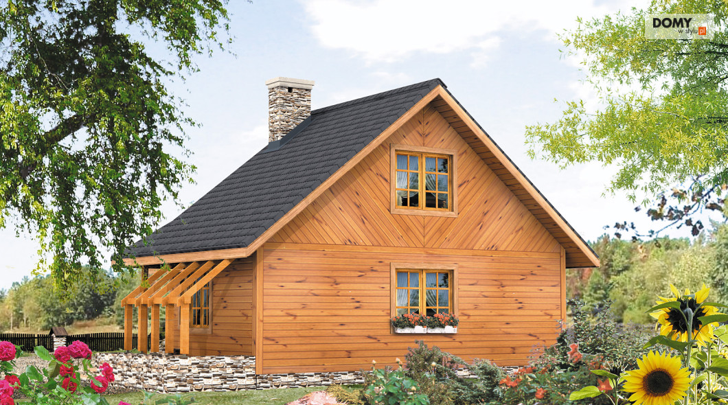 Mały dom jednorodzinny, parterowy z zagospodarowanym poddaszem, niepodpiwniczony. Przeznaczony dla 3-osobowej rodziny. Z powodzeniem można go adaptować na dom letniskowy. SZYPER 5 – projekt w wersji murowanej.