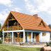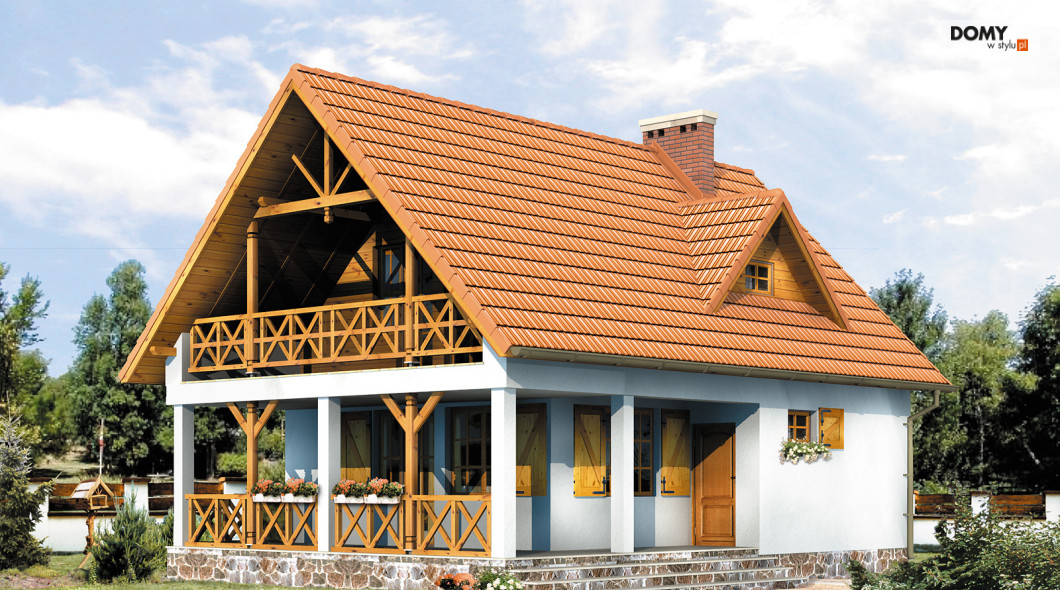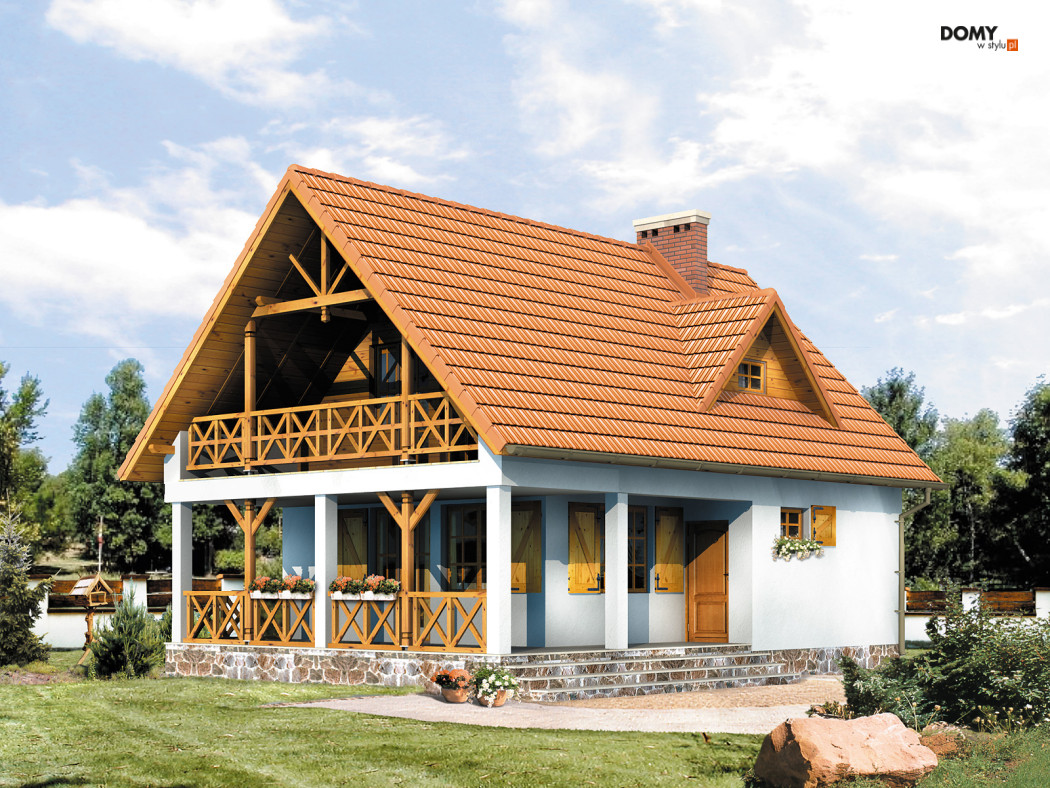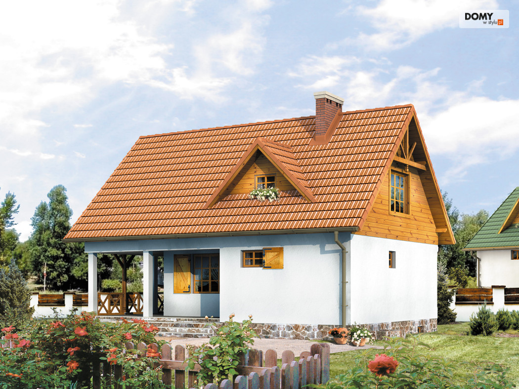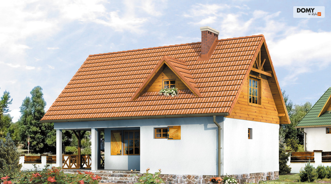 Mały, podpiwniczony dom jednorodzinny z użytkowym poddaszem. Klarowny, prosty układ funkcjonalny. Zadaszony, duży taras.