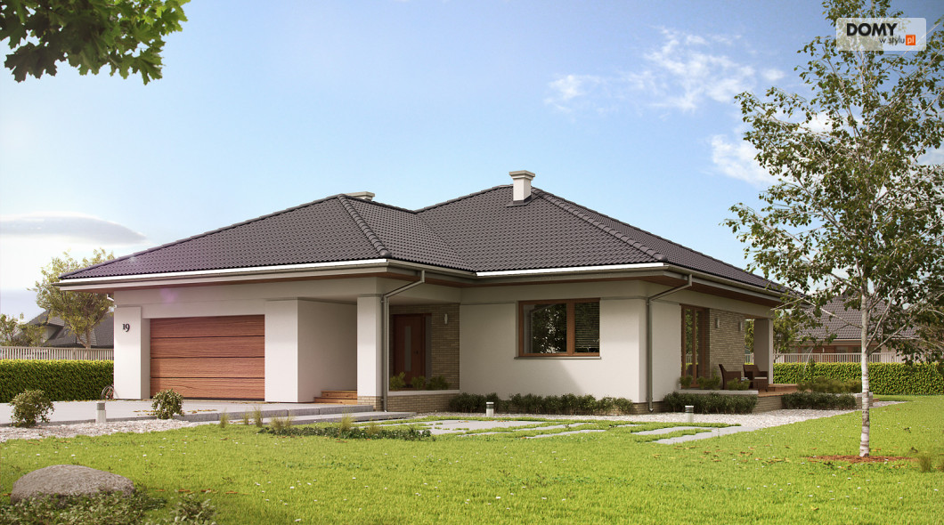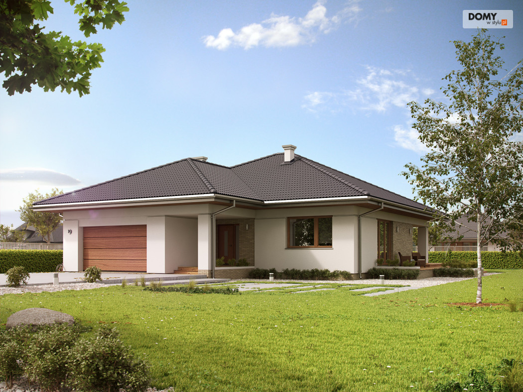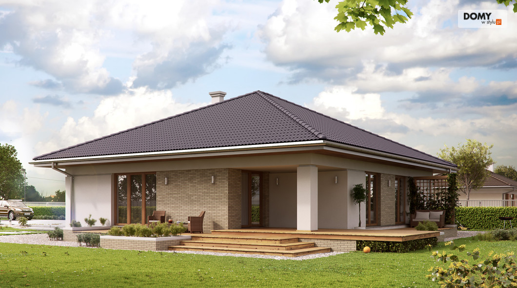 Kolejna wersja projektu Ariel, tym razem wzbogacona o piwnicę. Jednorodzinny budynek mieszkalny, parterowy, podpiwniczony, swoim pełnym programem funkcjonalnym zapewnia optymalny komfort 4-osobowej rodzinie. W części dziennej przewidziano salon z jadalnią, kuchnię ze spiżarnią oraz wc. W części nocnej zaprojektowano trzy sypialnie, z czego jedną z łazienką i garderobą, oraz łazienkę. Część gospodarcza została przeniesiona do piwnicy i składa się z kotłowni na każdy rodzaj paliwa oraz z pomieszczeń gospodarczych.