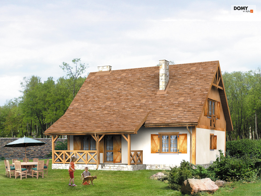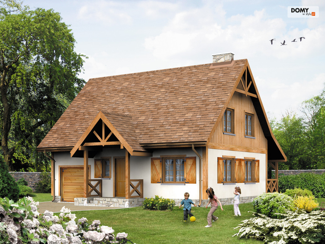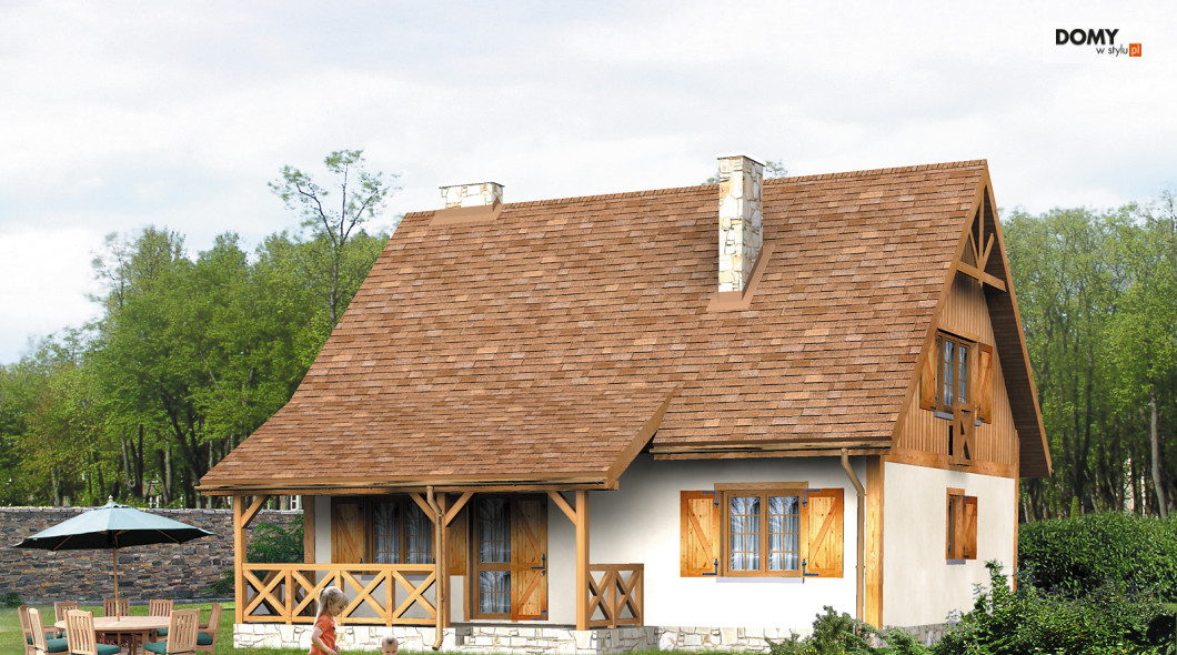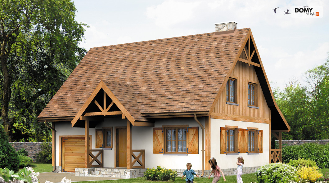 Prosty, funkcjonalny dom jednorodzinny z użytkowym poddaszem i garażem. Przeznaczony dla 3 – 4-osobowej rodziny. Dom posiada duży, zadaszony taras dostępny z salonu. Niewielkie rozmiary domu pozwalają na usytuowanie go na małej działce.
