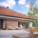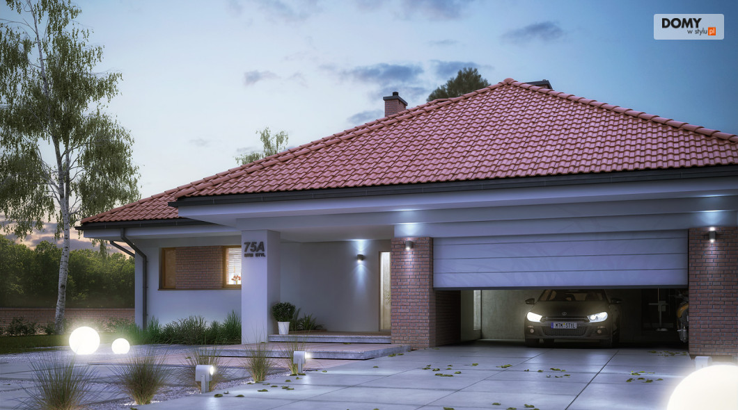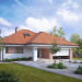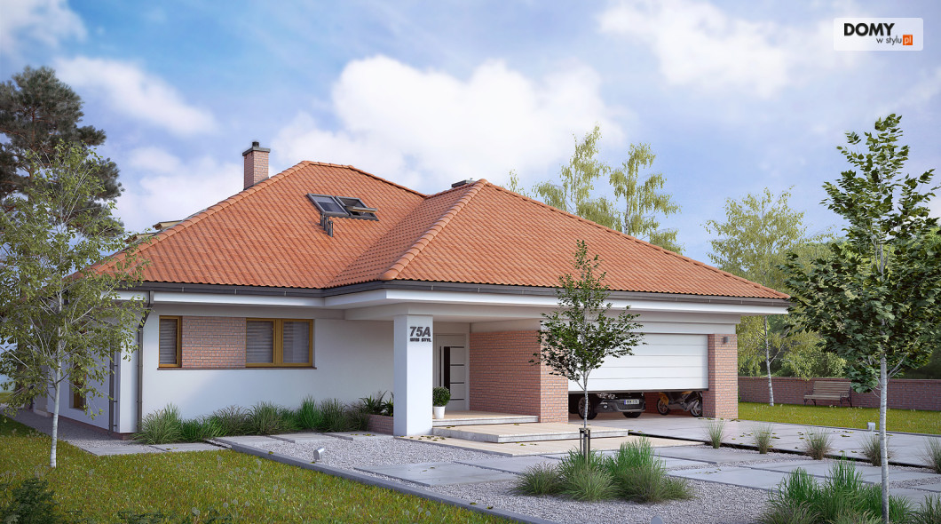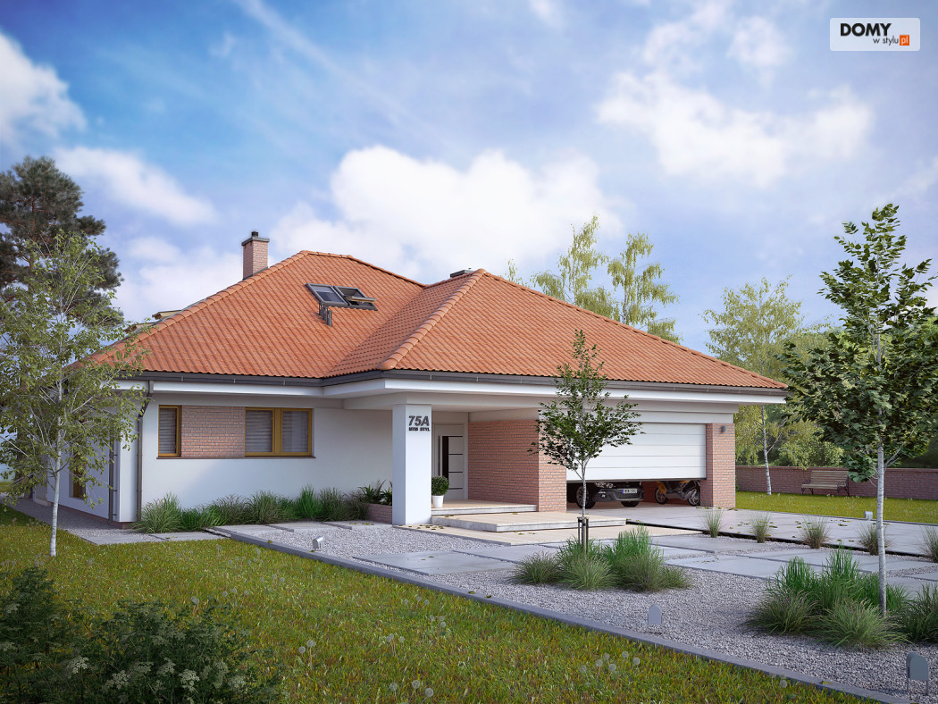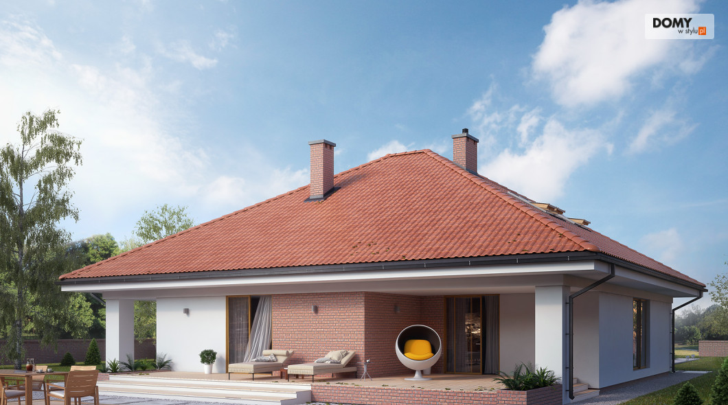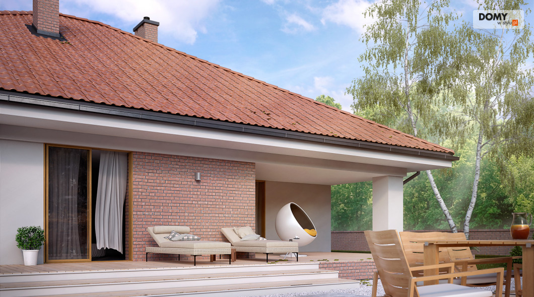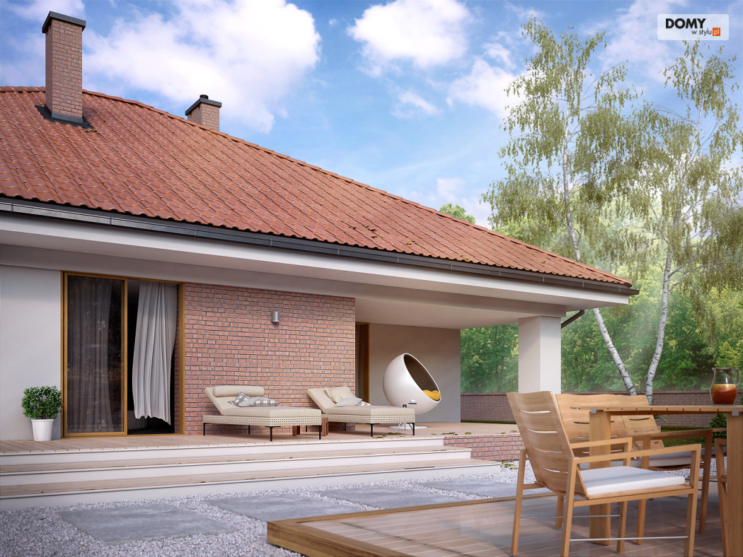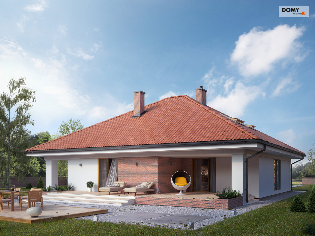 Jednorodzinny budynek mieszkalny, parterowy z użytkowym poddaszem, niepodpiwniczony, przeznaczony dla 4 - 6-osobowej rodziny. W części dziennej przewidziano salon z kominkiem oraz kuchnię z jadalnią. W części nocnej parteru - dwie sypialnie z łazienką, zaś w gospodarczej dwustanowiskowy garaż i kotłownię. Na poddaszu zaprojektowano trzy duże sypialnie i łazienkę. Elewacje budynku są utrzymane w nowoczesnej stylistyce. Rozległe tarasy harmonijnie łączą wnętrza domu z ogrodem.