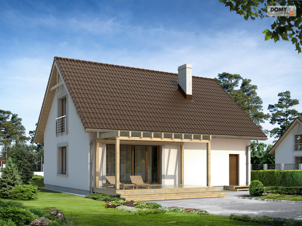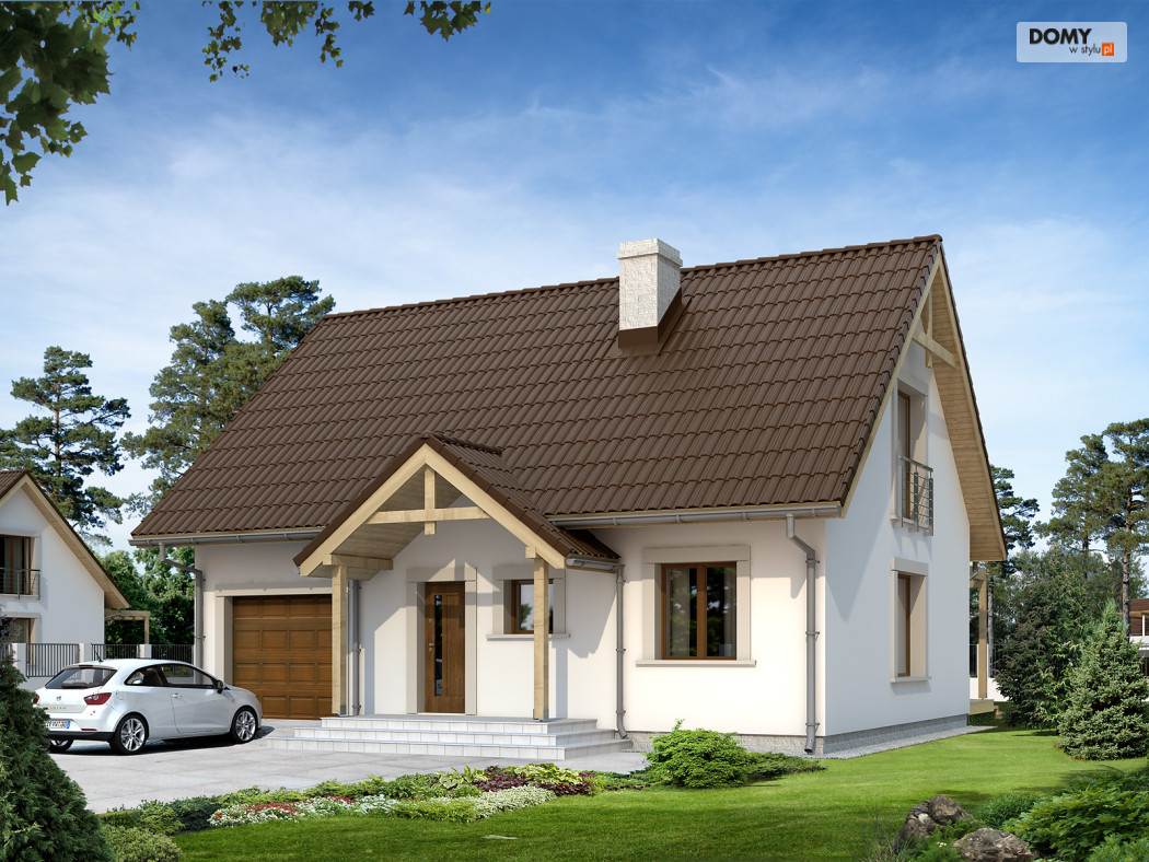 Dom parterowy z użytkowym poddaszem, przeznaczony dla 4-osobowej rodziny. Na parterze w części dziennej znajdują się: salon z jadalnią, kuchnia, spiżarnia oraz wc; w części gospodarczej: garaż oraz kotłownia. Na poddaszu zaprojektowano trzy sypialnie w tym jedną z garderobą oraz łazienkę.