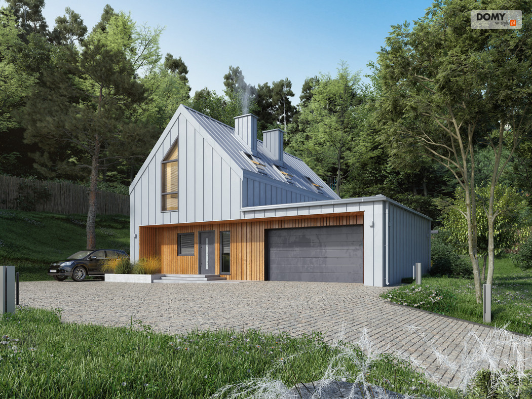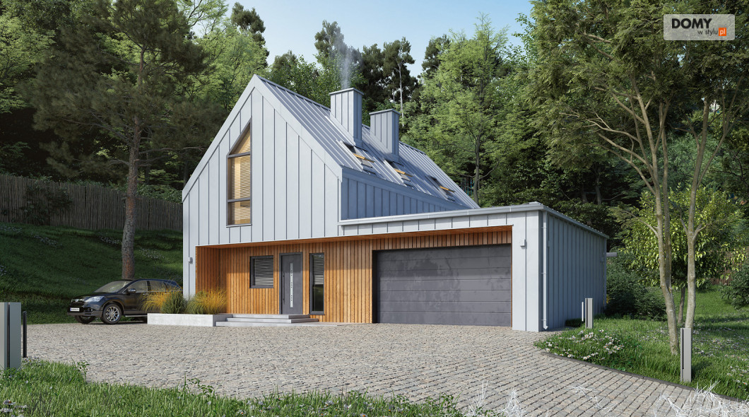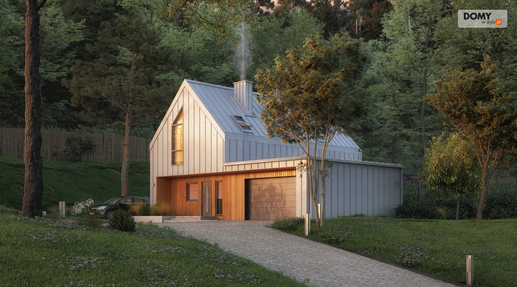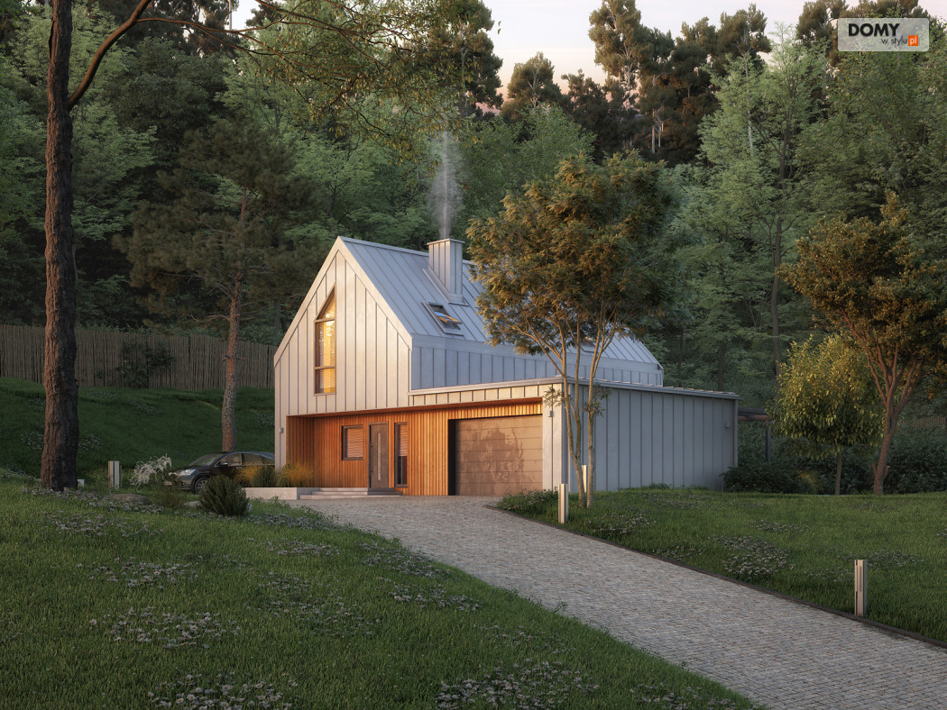 Malutki 6 to niewielki projekt domu z użytkowym poddaszem i garażem na dwa stanowiska. Pomimo prostej bryły projekt jest niezwykle oryginalny, wpisując się tym samym w obowiązujące trendy architektoniczne. Prostokątna bryła została zadaszona dwuspadowym, bezokapowym dachem, co jest charakterystyczne dla stylu nowoczesnej stodoły. Na 90 m2 powierzchni użytkowej zaprojektowano wszystko czego oczekuje 4 -osobowa rodzina. Na parterze znajduje się otwarta strefa dzienna, na którą składa się salon połączony z kuchnią i jadalnią. W drugiej części parteru znajduje się gabinet, łazienka oraz wiatrołap z miejscem na kotłownię. Na poddaszu znalazły się trzy sypialnie oraz rodzinna łazienka.