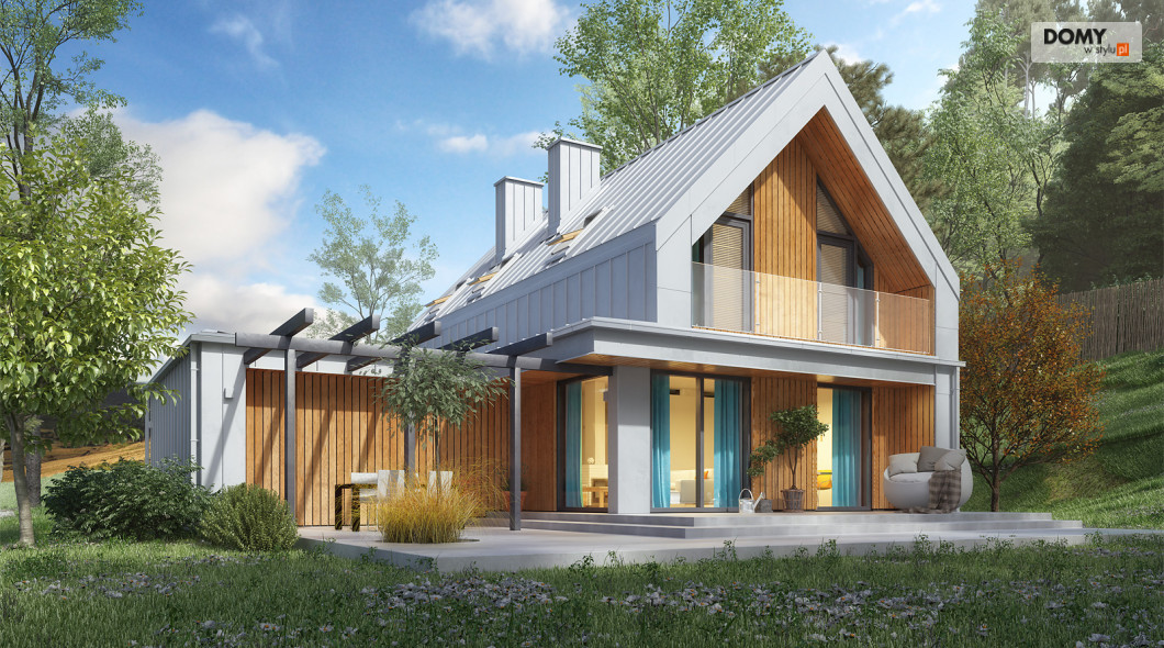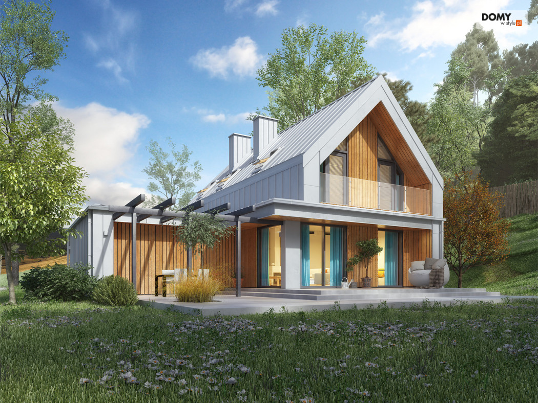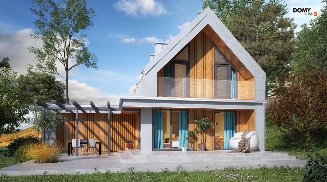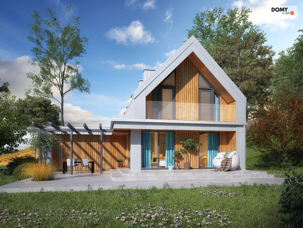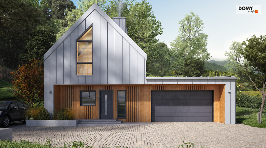 Malutki 6 to niewielki projekt domu z użytkowym poddaszem i garażem na dwa stanowiska. Pomimo prostej bryły projekt jest niezwykle oryginalny, wpisując się tym samym w obowiązujące trendy architektoniczne. Prostokątna bryła została zadaszona dwuspadowym, bezokapowym dachem, co jest charakterystyczne dla stylu nowoczesnej stodoły. Na 90 m2 powierzchni użytkowej zaprojektowano wszystko czego oczekuje 4 -osobowa rodzina. Na parterze znajduje się otwarta strefa dzienna, na którą składa się salon połączony z kuchnią i jadalnią. W drugiej części parteru znajduje się gabinet, łazienka oraz wiatrołap z miejscem na kotłownię. Na poddaszu znalazły się trzy sypialnie oraz rodzinna łazienka.