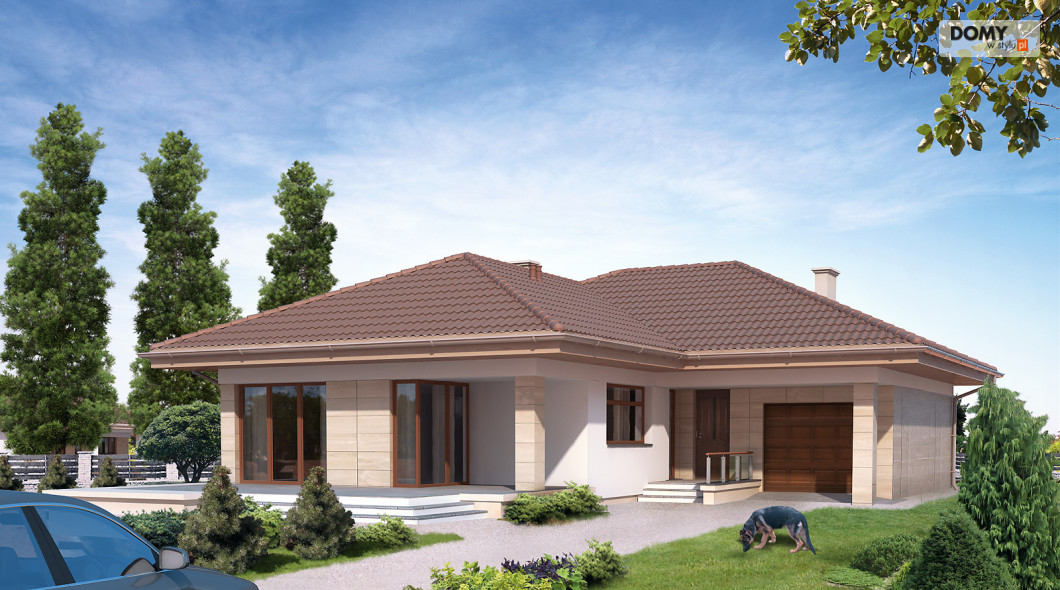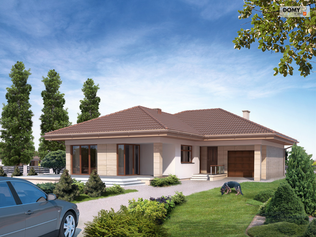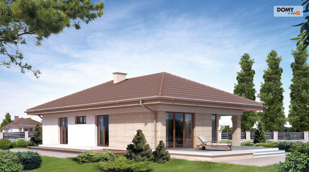 Jednorodzinny dom parterowy, niepodpiwniczony, przeznaczony dla 4-osobowej rodziny. Wejście od południa. Częściowo zadaszony, przestronny taras. Wyraźny podział na część dzienną i nocną. Przestronna część dzienna z licznymi przeszkleniami. Prosta, tradycyjna bryła. Nowoczesne podziały i materiały elewacji.
