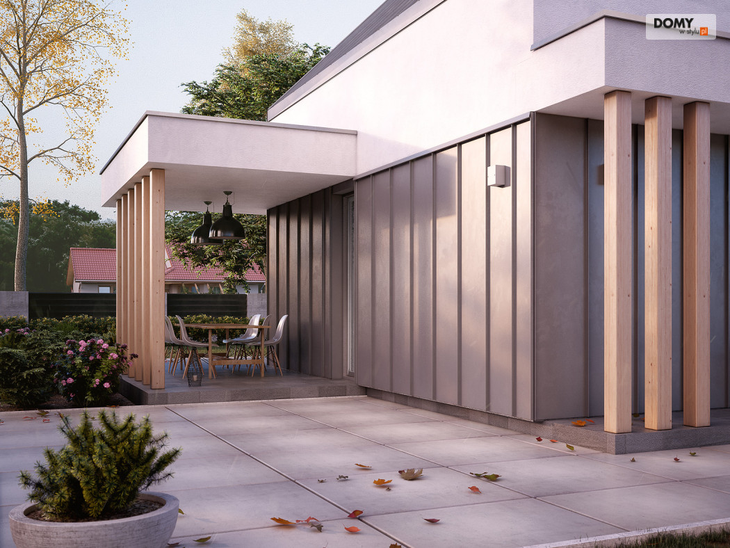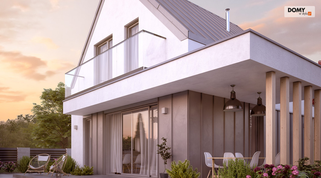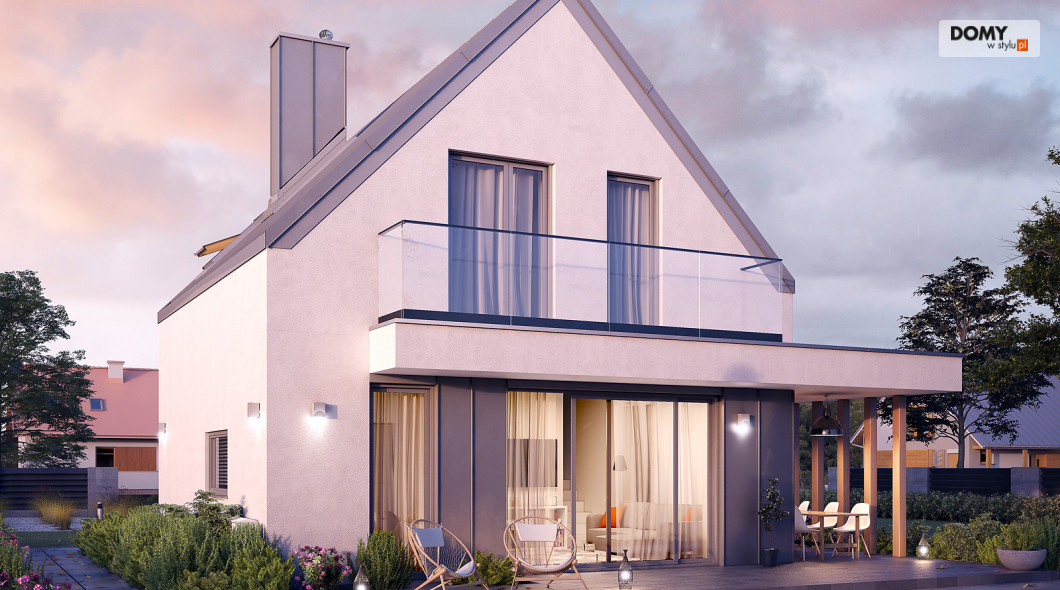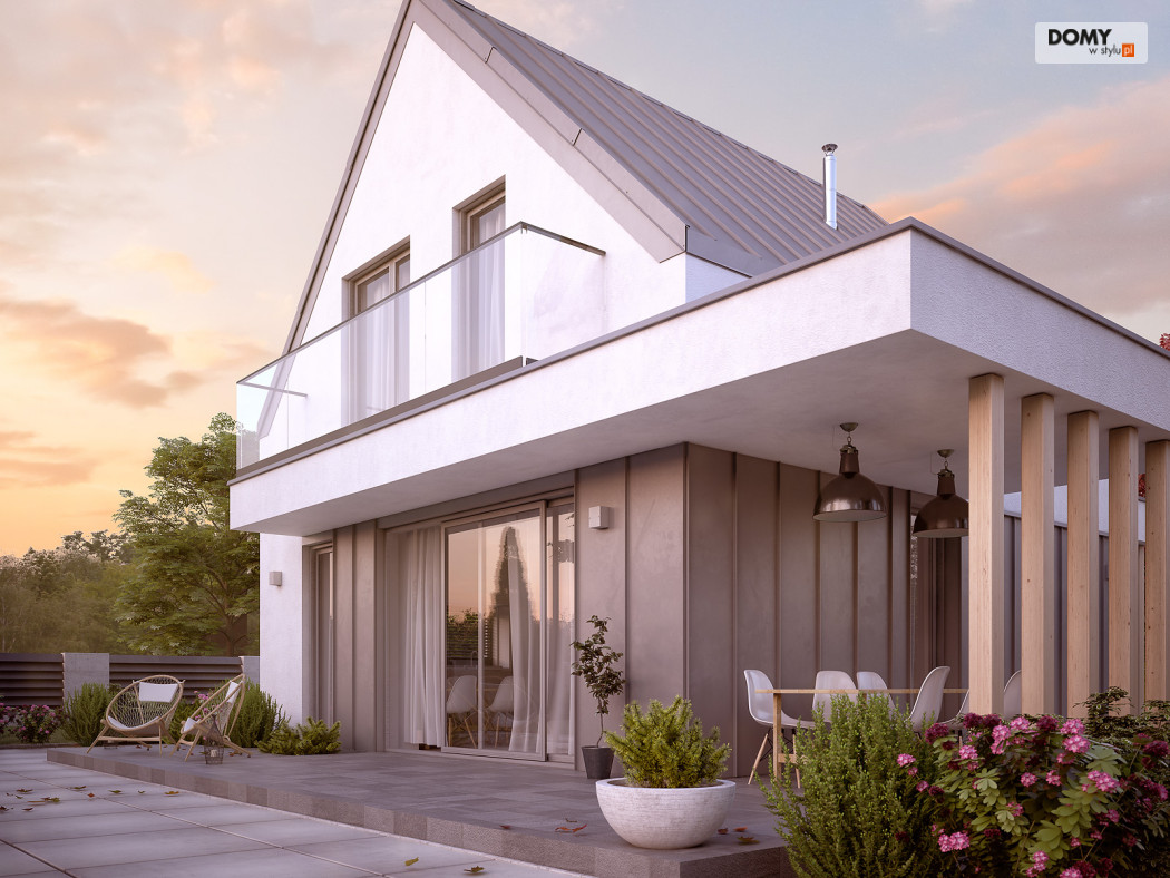 Limonka to projekt domu z użytkowym poddaszem. Dom powstał z myślą o niedużej bryle, ale z założeniem wykorzystania jej przestrzeni w funkcjonalny sposób. Przestrzeń użytkową podzielono na dzienną i nocną. Strefę dzienną tworzy otwarta kuchnia z jadalnią oraz salon. Na parterze znajdziemy także łazienkę z miejscem na prysznic oraz kotłownię. Strefa nocna znajduje się na piętrze i tworzą ją dwie sypialnie oraz wspólna łazienka. Dodatkowo na korytarzu wydzielono miejsce na szafę.