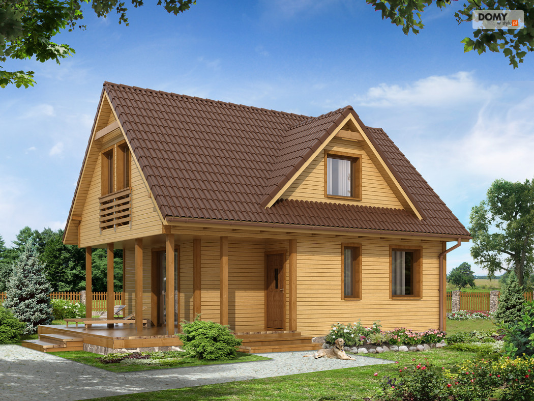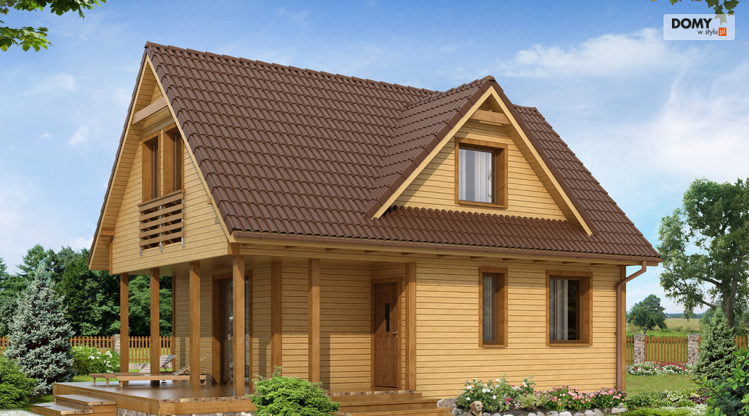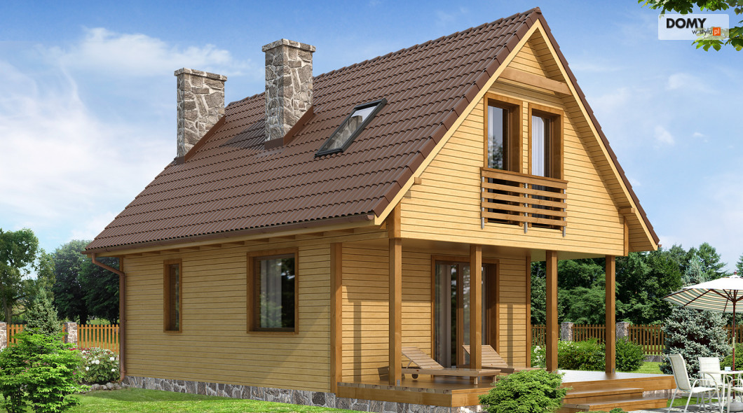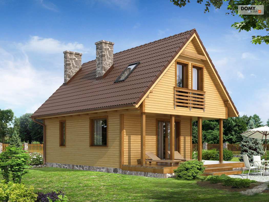 Niewielki jednorodzinny dom drewniany. Na parterze znajduje się część dzienna składająca się z salonu z kominkiem, kuchni z jadalnią i łazienki. Przylega do niej zadaszony taras. Na poddaszu trzy sypialnie z łazienką i garderoba tworzą część nocną domu.