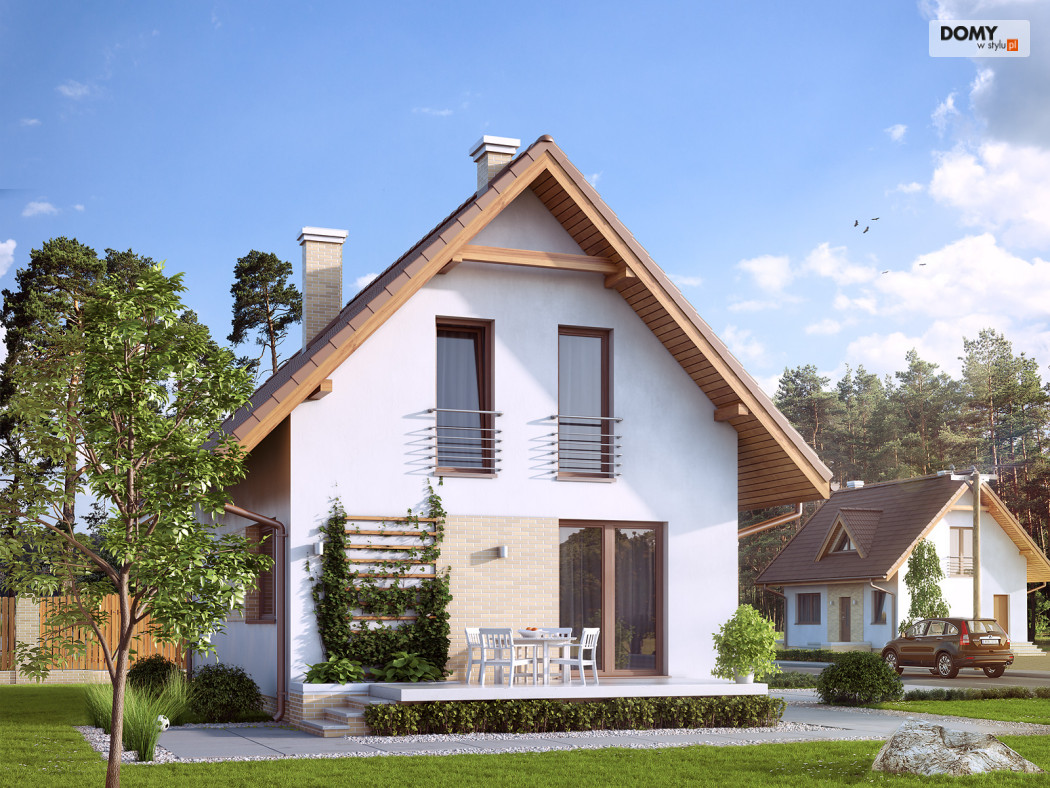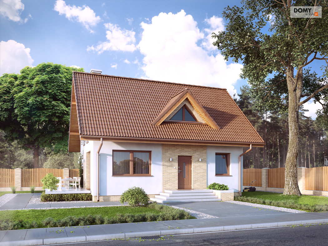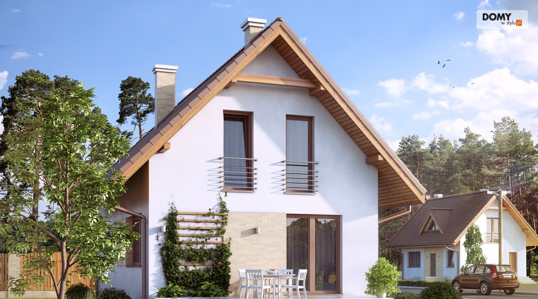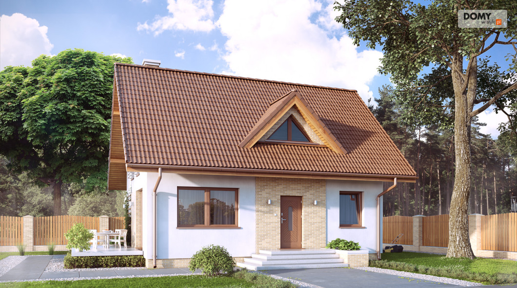 Niewielki, jednorodzinny budynek mieszkalny, parterowy z użytkowym poddaszem. Swoim optymalnym programem użytkowym może zapewnić komfort 4-osobowej rodzinie. Na parterze zaprojektowano, kuchnię ze spiżarnią, salon z jadalnią, wc oraz kotłownię. Na poddaszu przewidziano: trzy sypialnie, w tym jedną z garderobą, oraz łazienkę. Atutem projektu jest możliwość jego aranżacji zarówno jako budynek z wjazdem od północy jak i od południa.
