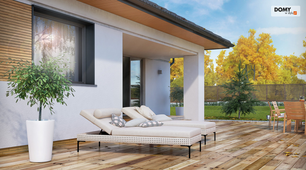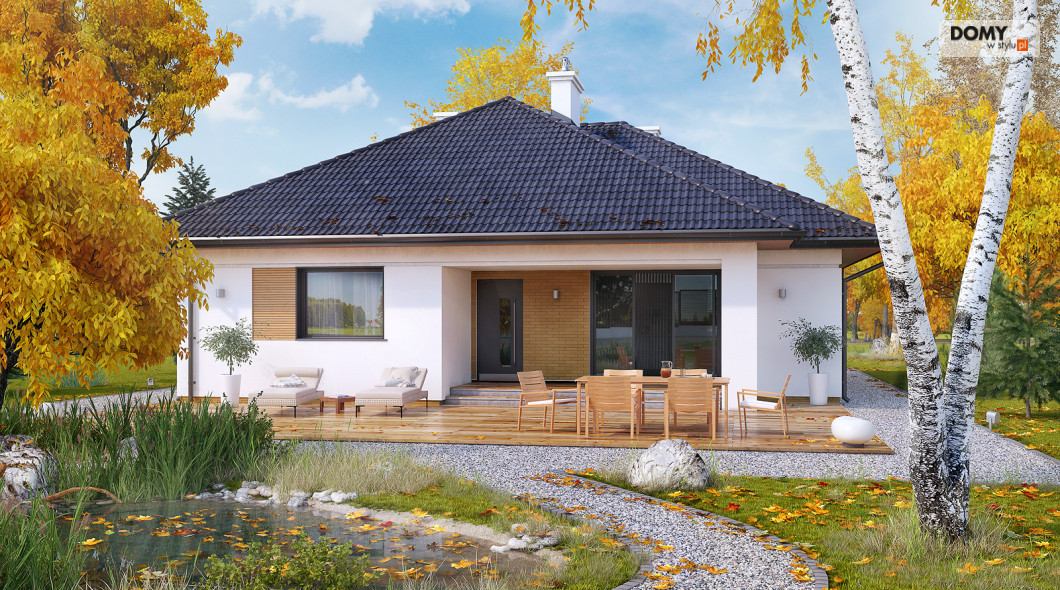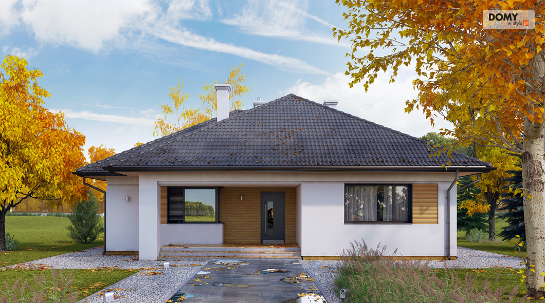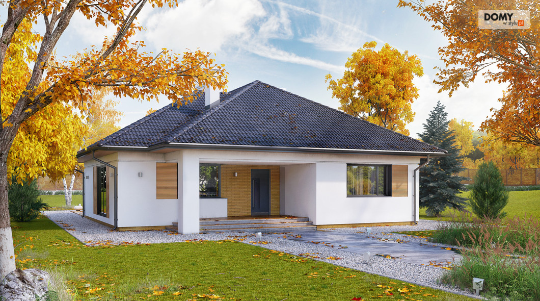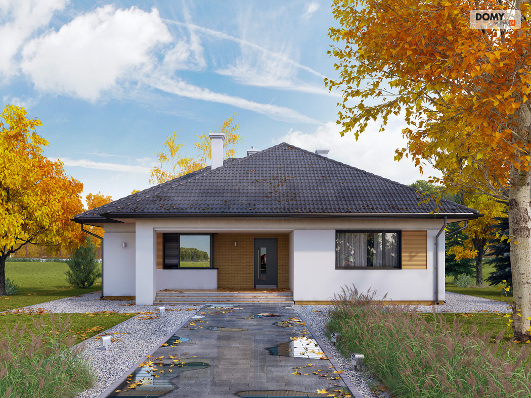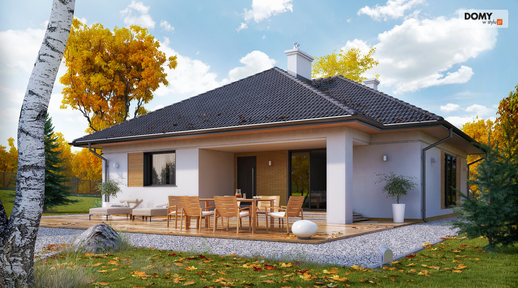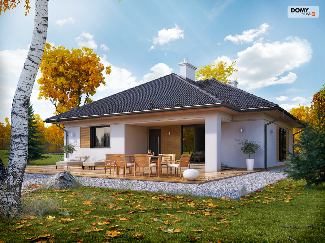 Jest to stosunkowo niewielki parterowy dom jednorodzinny. Może tu wygodnie mieszkać 4-osobowa rodzina. Dużą część domu zajmuje salon łączony wydzieloną funkcją jadalni oraz kuchnia. Pozostałe pomieszczenia to trzy sypialnie, w tym jedna dwuosobowa dla małżeństwa, wc oraz łazienka. Budynek utrzymany jest w nowoczesnym stylu, którego cechą jest minimalizm. Ozdobę domu stanowi interesująca elewacja. Zwarta bryła przykryta jest wielospadowym dachem. Dom jest oszczędny w budowie i tani w eksploatacji (energooszczędny).