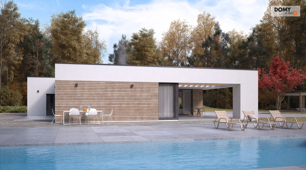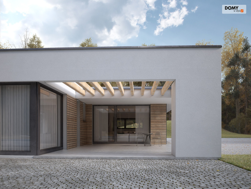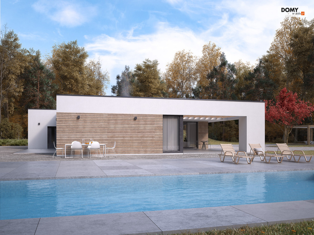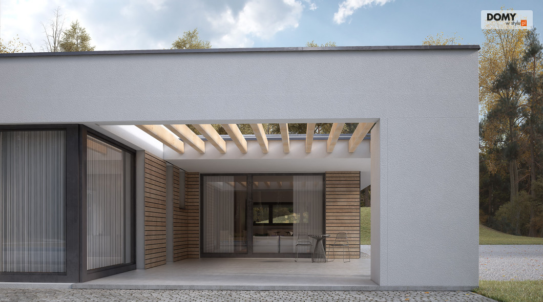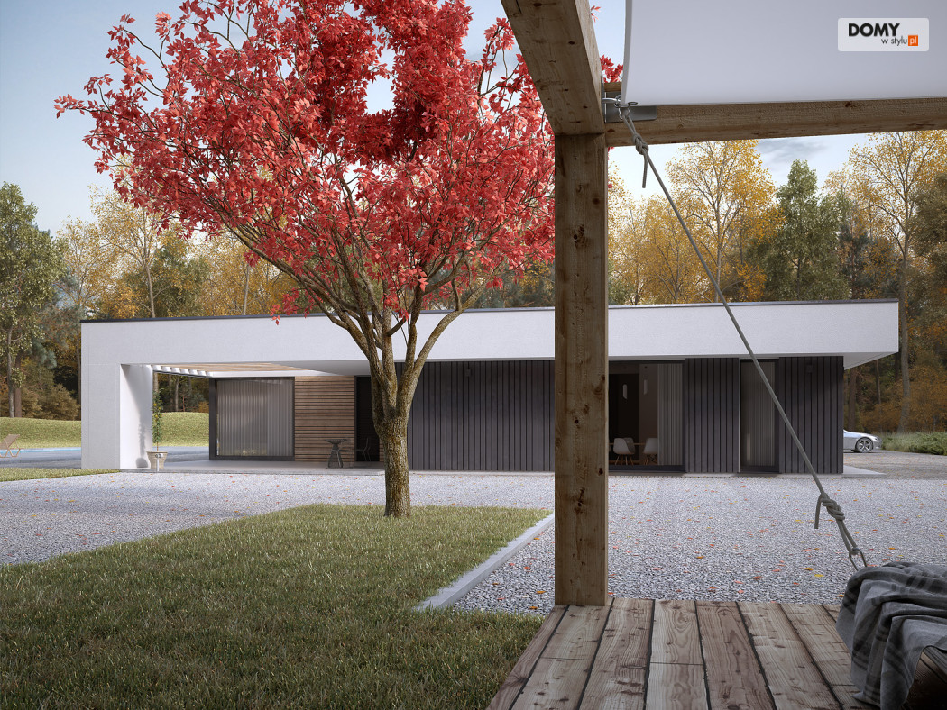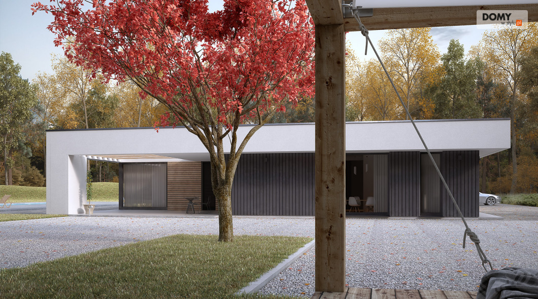 Projekt domu Cytrus 4 zasługuje na uwagę pod względem estetycznym i funkcjonalnym. Przestronna część dzienna z dużymi przeszkleniami, płynnie łączy wnętrze domu z tarasem zewnętrznym. W centralnej części znajduje się jadalnia, która została wyeksponowana na tle dużego okna. Przestronna kuchnia posiada dodatkowo dużą spiżarnię i wyspę, która stanowi jednocześnie miejsce do spożywania posiłków. W części nocnej, oddzielonej funkcjonalnie od pomieszczeń dziennych, znajdują się trzy sypialnie, garderoba, rodzinna łazienka oraz pralnia. Sypialnia rodziców wyposażona jest w oddzielną garderobę i wygodną kompaktową łazienkę. W projekcie Cytrus 4 nie zapomniano o wygodnym dwustanowiskowym garażu dostępnym z przestronnego przedsionka. W garażu znajduje się również przejście do kotłowni połączonej z pomieszczeniem gospodarczym stanowiącym zaplecze ogrodu z bezpośrednim dostępem z zewnątrz.
