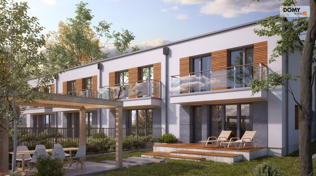 Wiąz to szeregówka o prostej bryle i praktycznych rozwiązaniach funkcjonalnych zaplanowanych na optymalnej powierzchni użytkowej. Strefa dzienna znajduje się na parterze, a nocna na piętrze. Na parterze znajduje się łazienka, wiatrołap z przejściem do garażu i kotłowni oraz strefa dzienna z salonem i otwartą kuchnią. Na piętrze znajdują się trzy wygodne sypialnie, wspólna łazienka i garderoba. Każda z sypialni ma dostęp do balkonu. Istnieje możliwość wykonania projektu budynku z inną liczbą i układem segmentów.