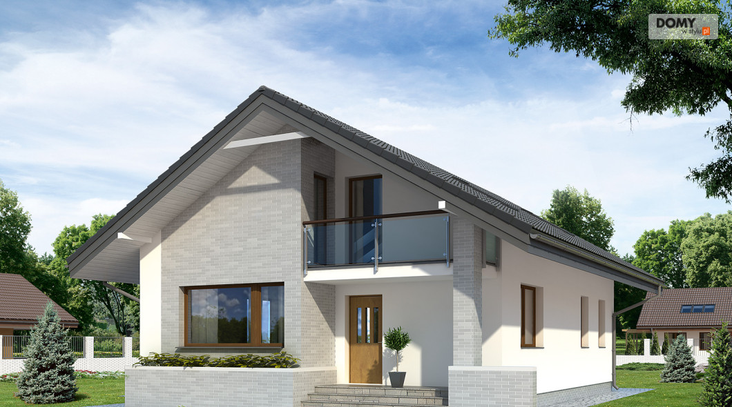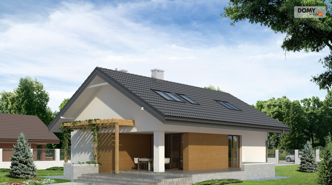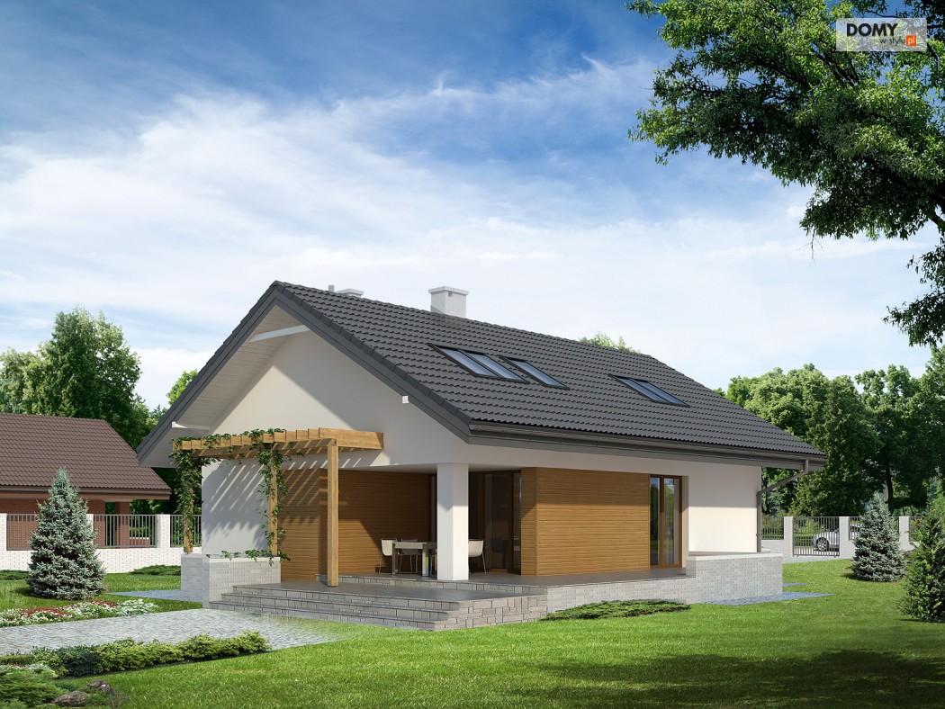Niewielki, jednorodzinny dom parterowy z użytkowym poddaszem. Bogaty układ funkcjonalny przystosowany dla 4-osobowej rodziny. Na parterze w części dziennej przewidziano: salon, kuchnię z jadalnią oraz gabinet, w części gospodarczej – kotłownię i łazienkę. Na poddaszu – w części nocnej – 3 sypialnie, łazienkę oraz garderobę. Prosta, klasyczna bryła połączona z nowoczesnymi elewacjami.