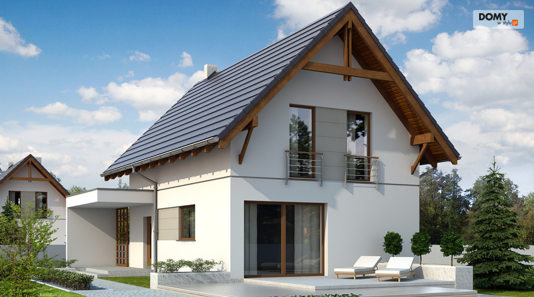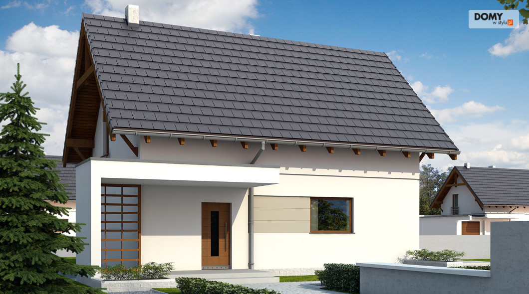 Niewielki jednorodzinny budynek mieszkalny, parterowy z użytkowym poddaszem. Bryła budynku to archetyp domu, przykrytego dwuspadowym dachem z nowoczesnymi elewacjami. Optymalny układ pomieszczeń zapewnia komfort 4-osobowej rodzinie.