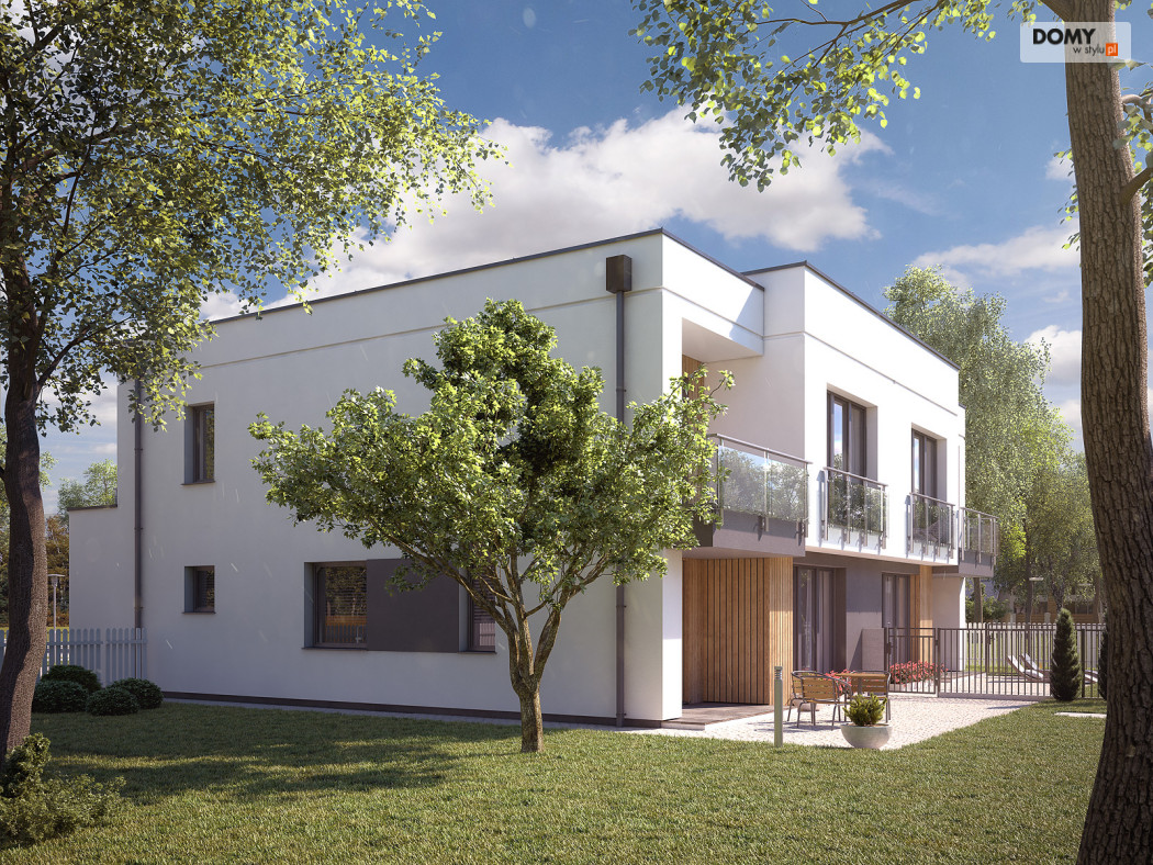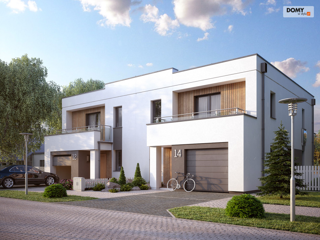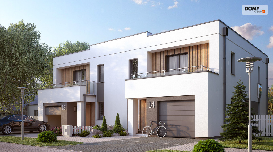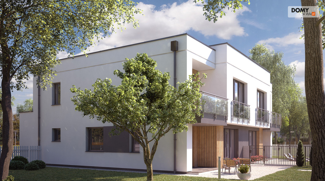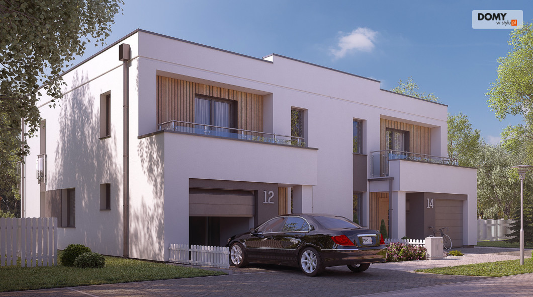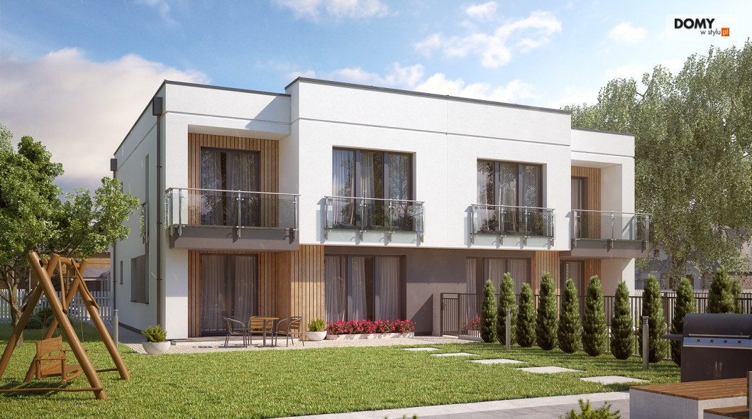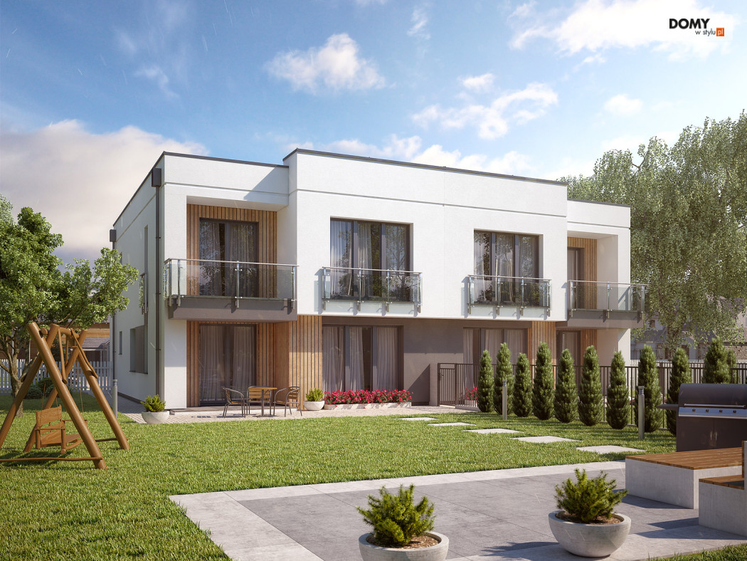 Projekt Miodowy jest propozycją budynku mieszkalnego w zabudowie bliźniaczej o współczesnej modernistycznej formie. Program użytkowy segmentu został podzielony na strefę dzienną na parterze oraz strefę nocną na piętrze. Do bryły mieszkalnej segmentu doprojektowany został jednostanowiskowy garaż. Na parterze znajdują się: wiatrołap, hol, kuchnia, salon z jadalnią, łazienka, garderoba, kotłownia oraz garaż. Na piętrze zaprojektowano hol, łazienkę oraz trzy sypialnie. Budynek jest prosty i ekonomiczny w budowie, a rozwiązania materiałowe nadają mu nowoczesnego charakteru. Segment budynku przeznaczony jest do zaspokojenia potrzeb 4-5 osobowej rodziny.