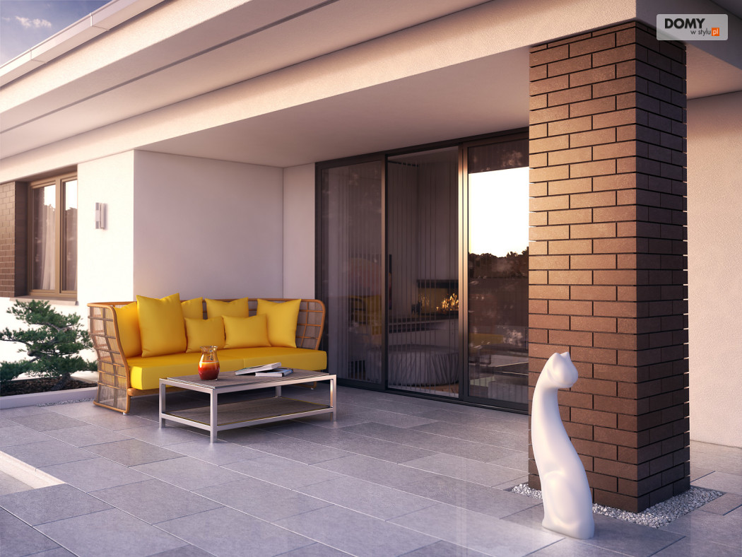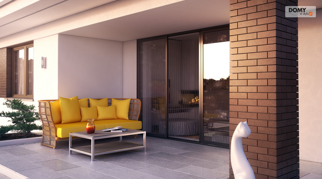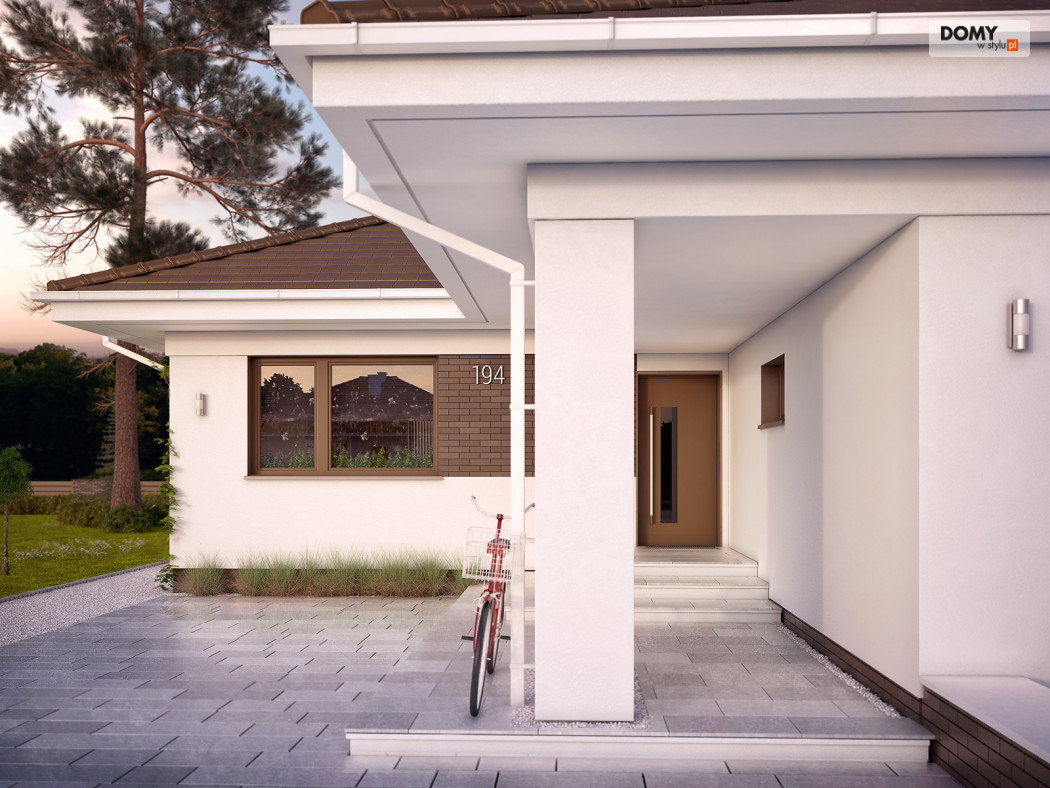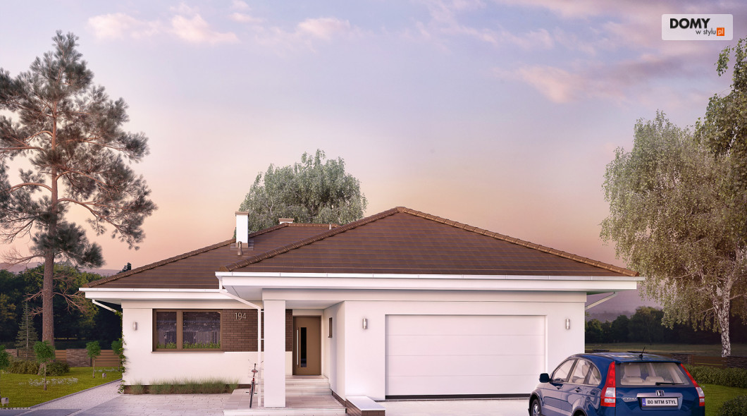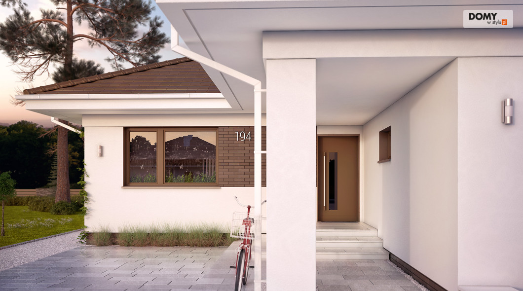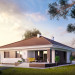 Budynek mieszkalny jednorodzinny, parterowy, niepodpiwniczony. Optymalny układ pomieszczeń zapewnia komfort 4-osobowej rodzinie. W części dziennej domu zaprojektowano kuchnię ze spiżarnią, salon połączony z jadalnią. Część nocna to trzy sypialnie oraz łazienka. W części gospodarczej zaprojektowano kotłownię i dwustanowiskowy garaż.