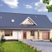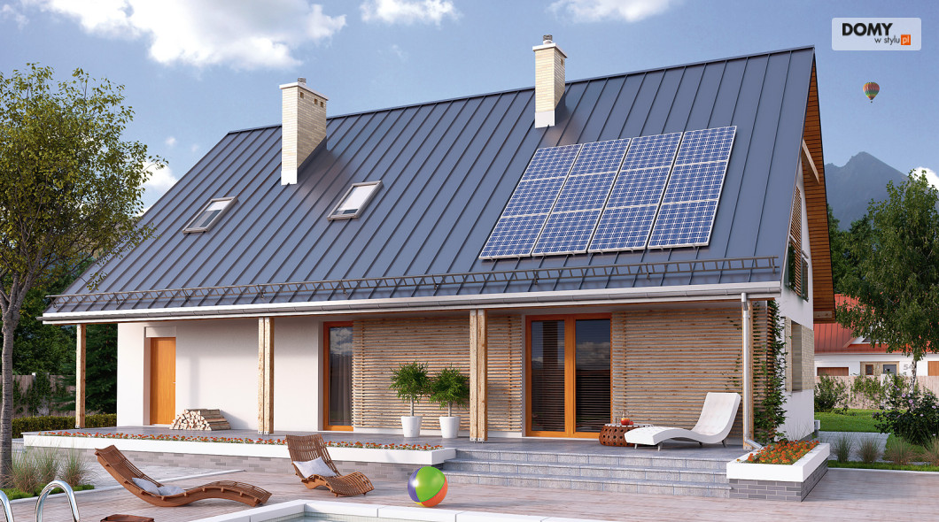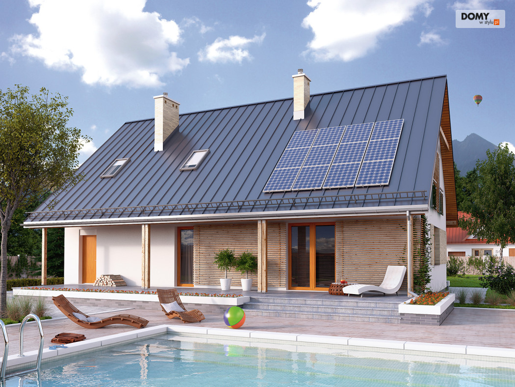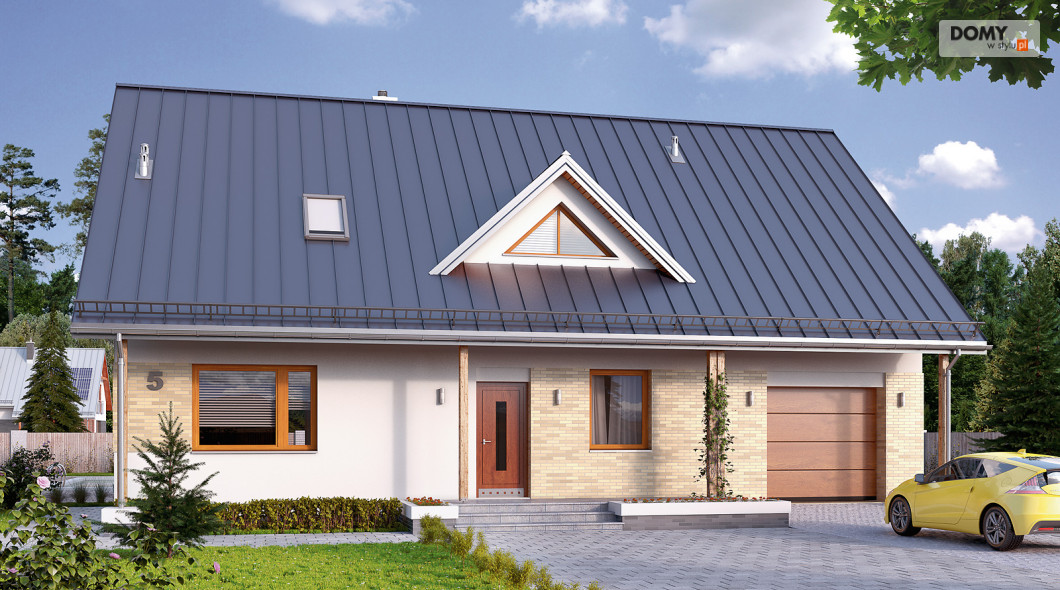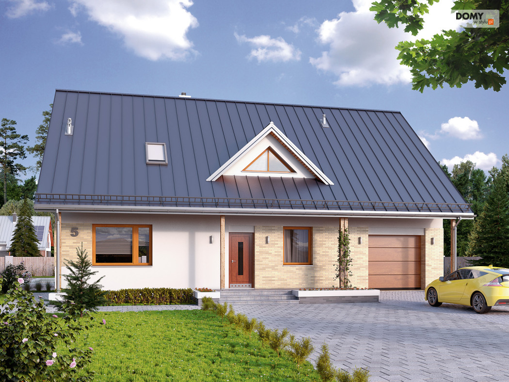 Dom jednorodzinny, wolno stojący, niepodpiwniczony z użytkowym poddaszem, przeznaczony dla 6 - 7-osobowej rodziny. Na parterze zaprojektowano przestronny pokój dzienny z jadalnią i kominkiem oraz kuchnię ze spiżarnią. Dwa dodatkowe pokoje na parterze mogą pełnić funkcję gabinetów lub sypialni. Na poddaszu znajdują się cztery sypialnie. Największa wyposażona jest w osobną łazienkę i garderobę. Sypialnie są wygodne, mają przewidziane miejsca na wbudowane szafy. Dom jest funkcjonalny, posiada prostą bryłę przekrytą dwuspadowym dachem, jedno miejsce garażowe i częściowo zadaszony taras.