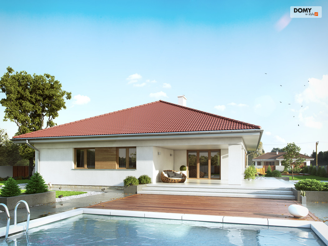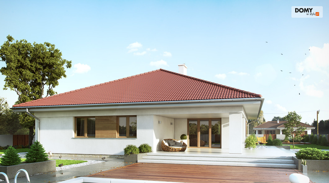 Decyma 5 to projekt nowoczesnego domu idealnego dla 4 - 5-osobowej rodziny. W bryle budynku zaprojektowano dwustanowiskowy garaż. W części dziennej dominuje otwarta przestrzeń salonu zaakcentowana dużą ilością przeszkleń oraz obszerny, reprezentacyjny hol. W części nocnej zaprojektowano cztery sypialnie, w tym jedną z garderobą, oraz łazienkę. Decyma 5 jest projektem energooszczędnym. Atutem jest duży dwustanowiskowy garaż oraz spiżarnia usytuowana przy kuchni.