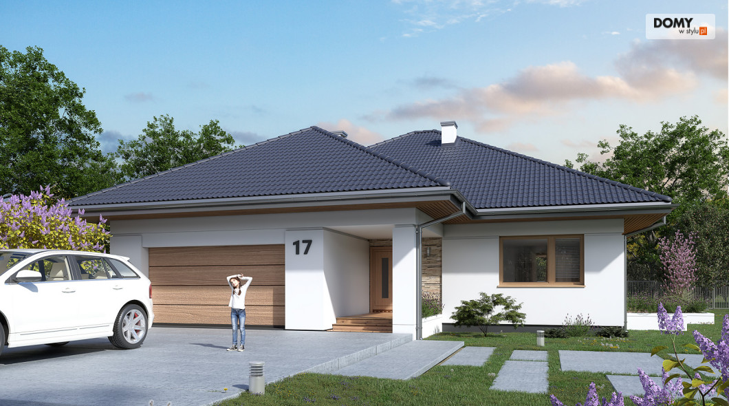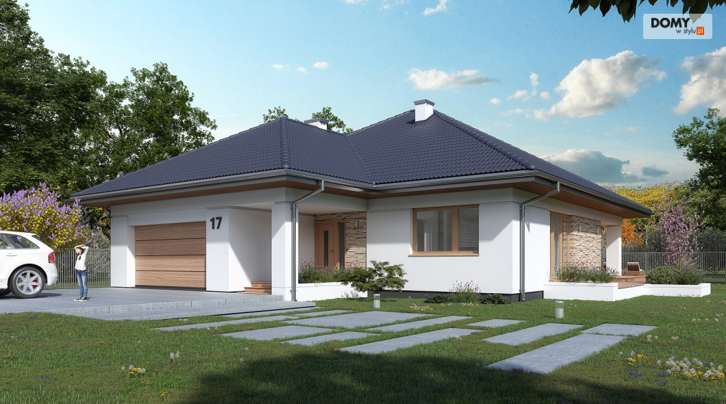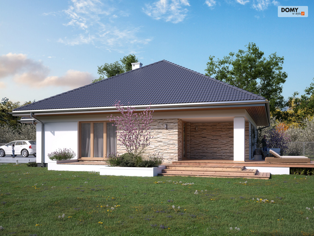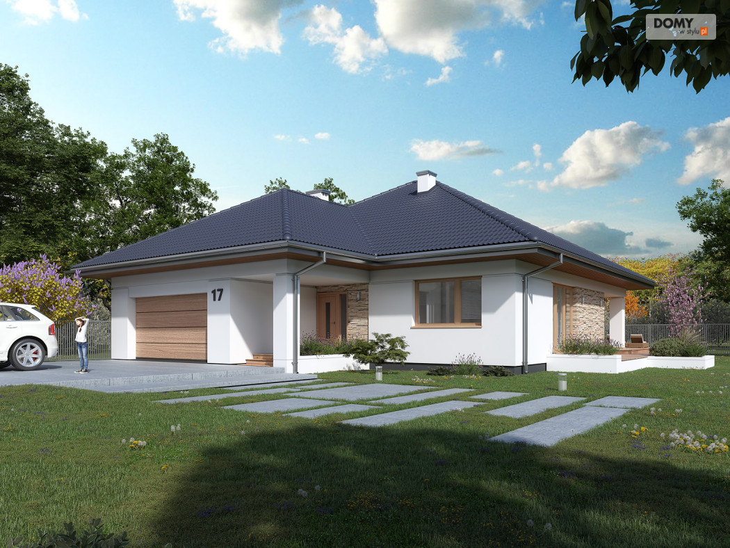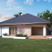 Ariel 9 to projekt domu parterowego, charakteryzujący się nowoczesną bryłą przykrytą wielospadowym dachem. W projekcie zaprojektowano piwnicę, w której poza kotłownią znajdują się dwa pomieszczenia gospodarcze. Układ funkcjonalny na parterze został podzielony na część dzienną oraz nocną. W części dziennej znajduje się przestronny salon z kominkiem i wyjściem na zadaszony taras. Salon płynnie łączy się z jadalnia oraz otwartą kuchnią ze spiżarnią. W części nocnej zaprojektowano trzy sypialnie, rodzinną łazienkę oraz WC. Dwie sypialnie posiadają wyjście na taras, który biegnie wzdłuż dwóch ścian budynku. Główna sypialnia tworzy apartament gospodarzy z własną łazienką oraz garderobą.