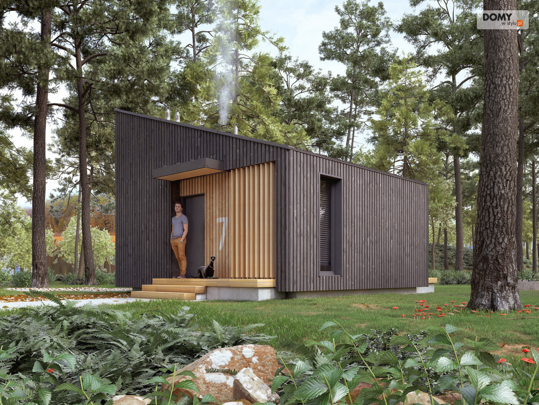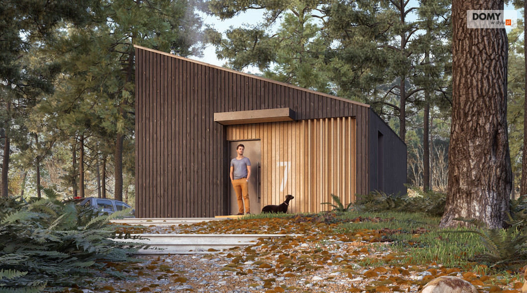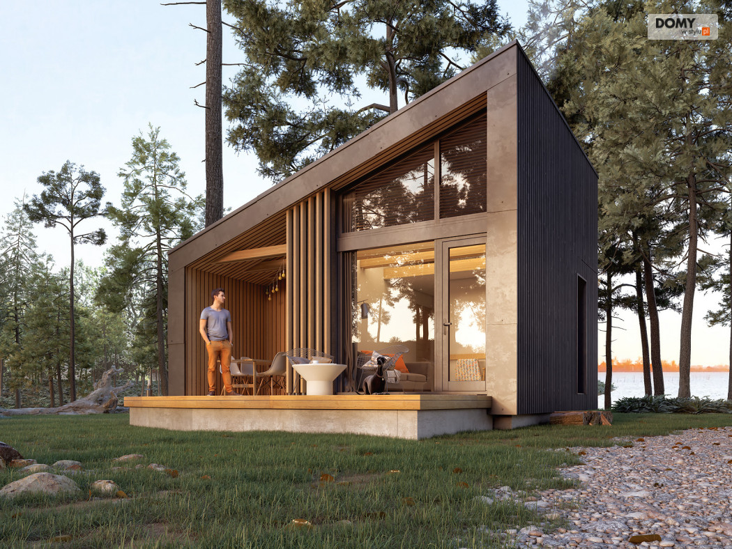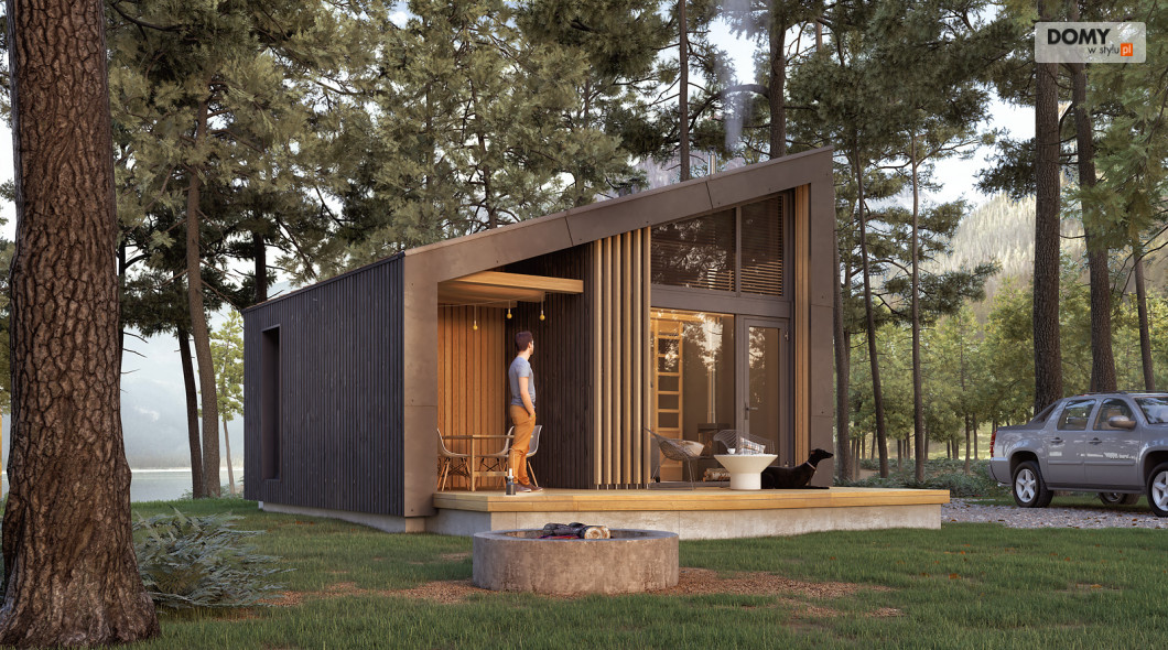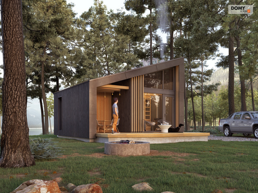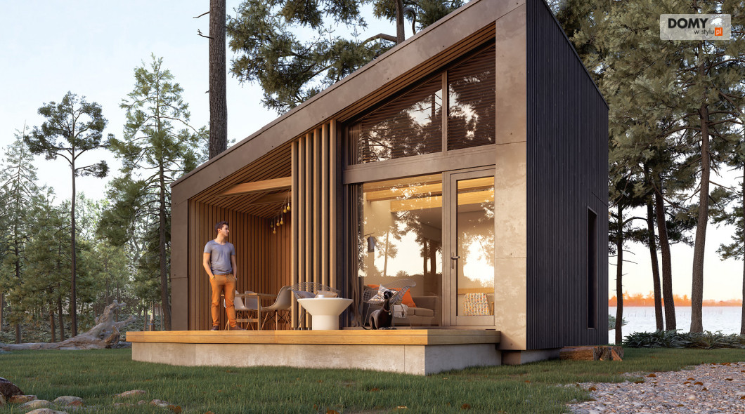SZYSZKA 3 DR-S jest projektem domku letniskowego zachwycającego swoją nowoczesną i wyrazistą stylistyką. Inspirowana naturą forma architektoniczna budynku w wyraźny sposób nawiązuje do kształtu górskich grani. We wnętrzu domku zaplanowano salon z aneksem kuchennym, łazienkę oraz dwie sypialnie - w tym jedną na antresoli. Przestronne wnętrza pomieszczą nawet 6 osób podczas weekendowego wypoczynku. Uzupełnieniem programu użytkowego jest praktyczny, zadaszony taras.