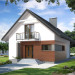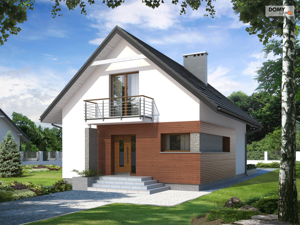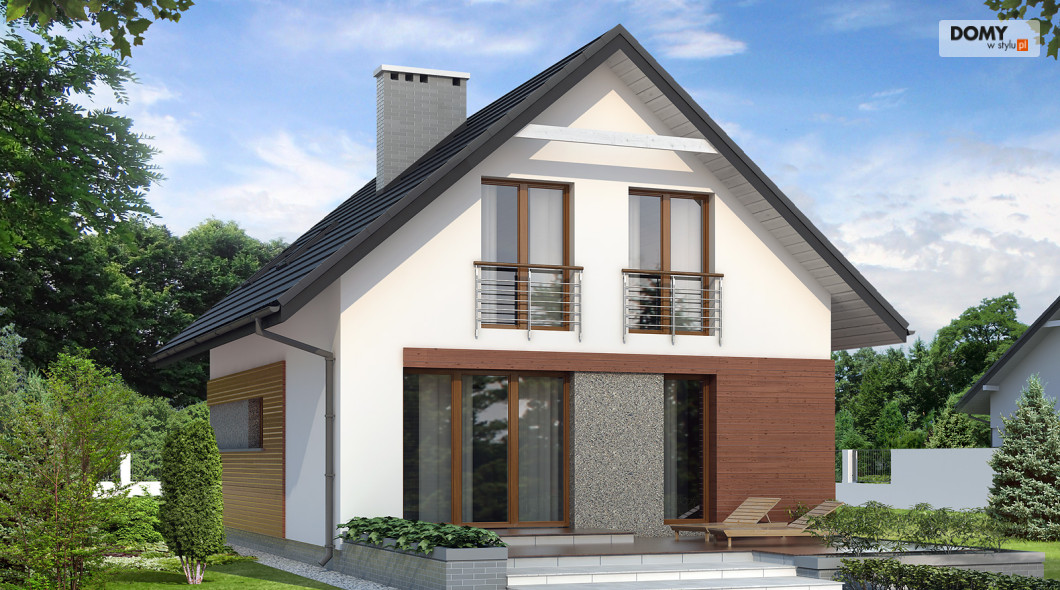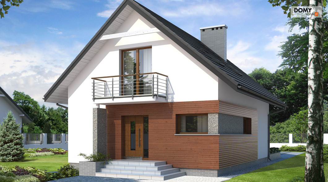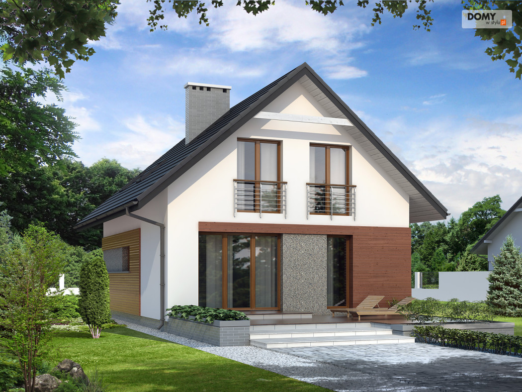 Niewielki dom jednorodzinny, parterowy z użytkowym poddaszem, przeznaczony dla 4-osobowej rodziny. Dom został ujęty w prostą, klasyczną bryłę, na rzucie prostokąta, przykrytą dwuspadowym dachem, wzbogaconą o nowoczesne elewacje. Na parterze przewidziano część dzienną: salon z jadalnią, kuchnię ze spiżarnią oraz część gospodarczą, w tym kotłownię na paliwo stałe. Na poddaszu zaprojektowano trzy sypialnie, w tym jedną z łazienką, oraz garderobę.