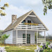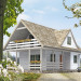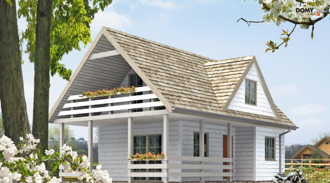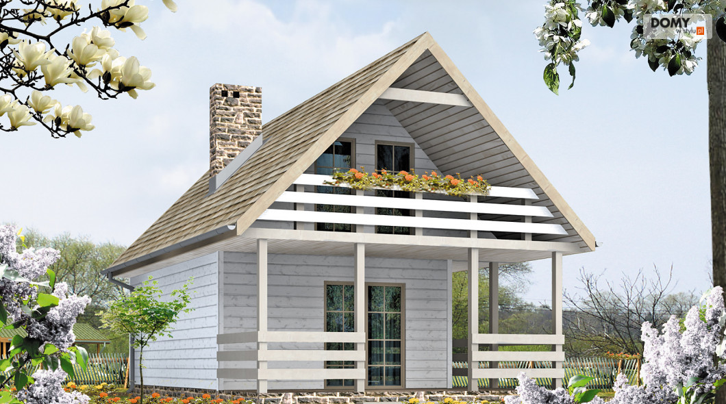 Mały letniskowy domek z czterema pokojami na poddaszu. Jadalnia z aneksem kuchennym. Pokój kominkowy z wyjściem na taras.
