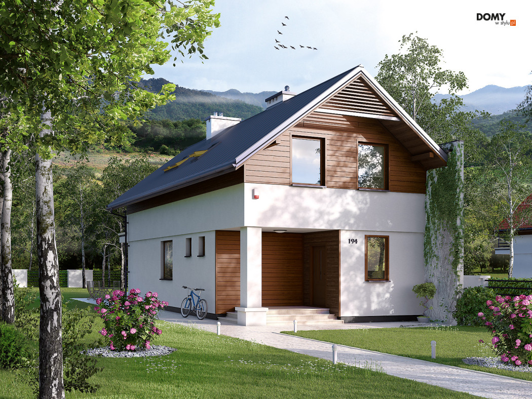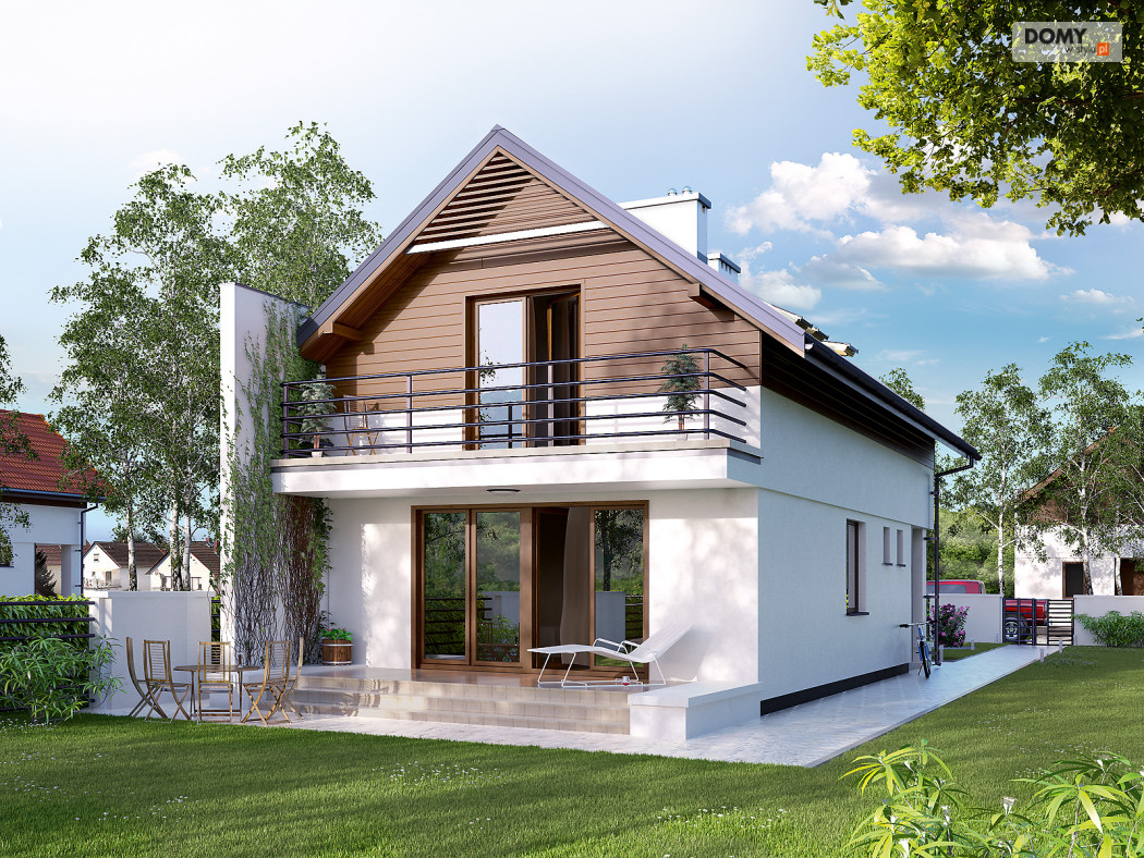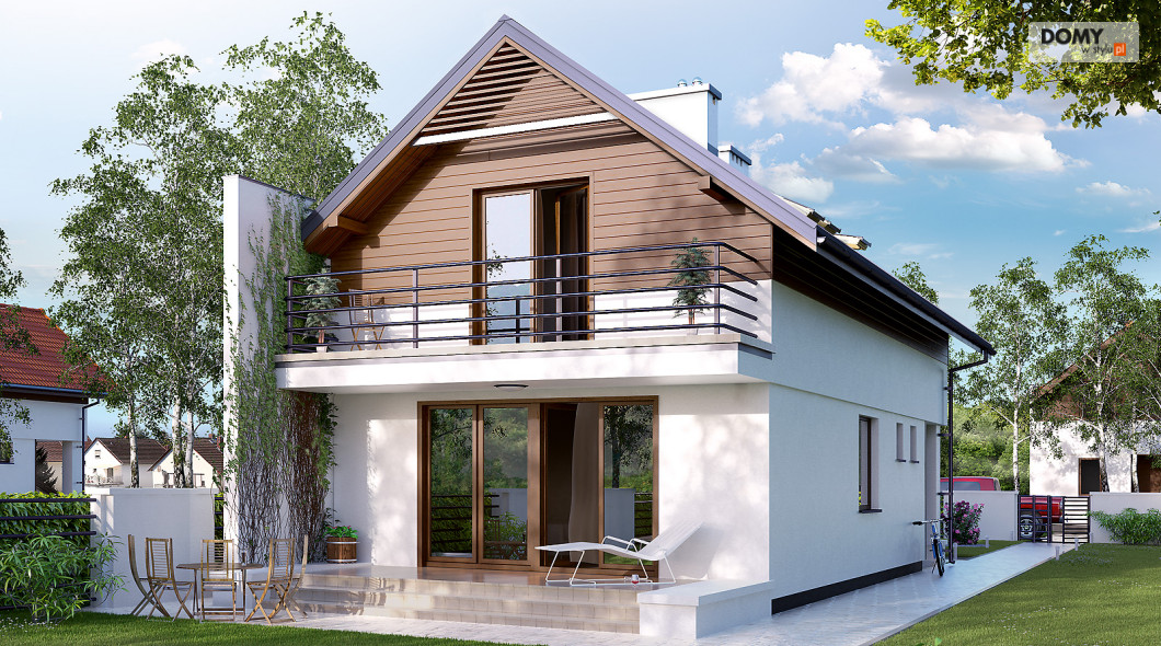 Projekt powstał z myślą o inwestorach, którzy planują zbudować dom w technologii murowanej. Wewnątrz domu zaprojektowano trzy sypialnie oraz dwie łazienki. Warto zwrócić uwagę na praktyczne usytuowanie garderoby. Prezentowany projekt jest idealny na wąską lub płytką działkę. Dom w stylu nowoczesnym został wyposażony w komplet energooszczędnych rozwiązań.