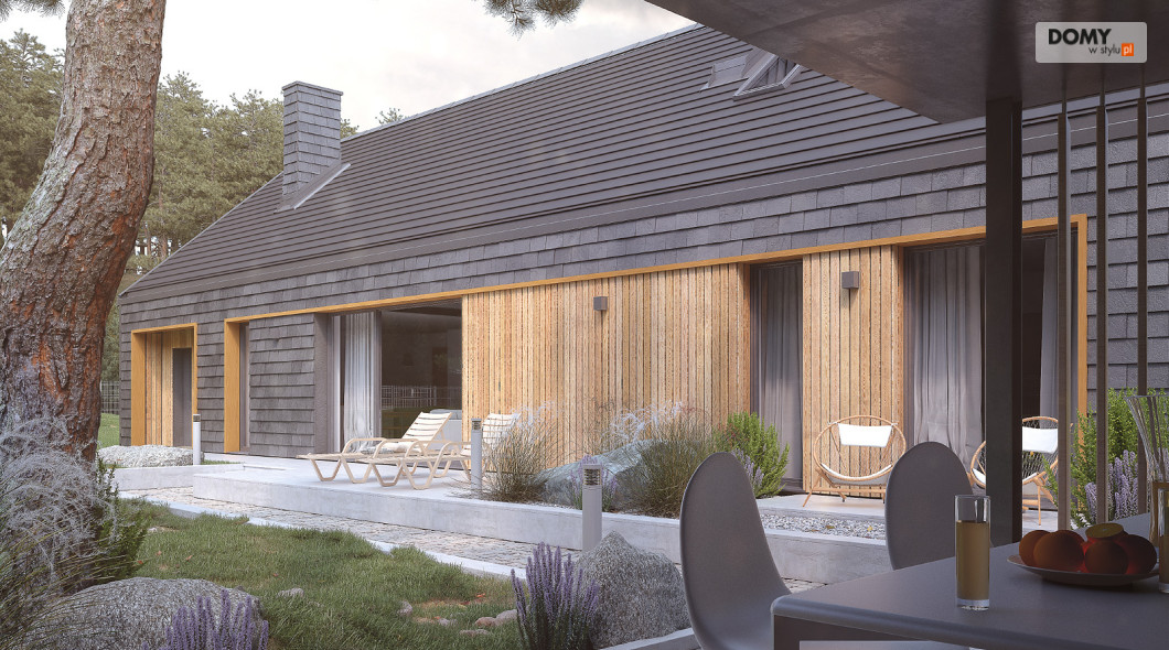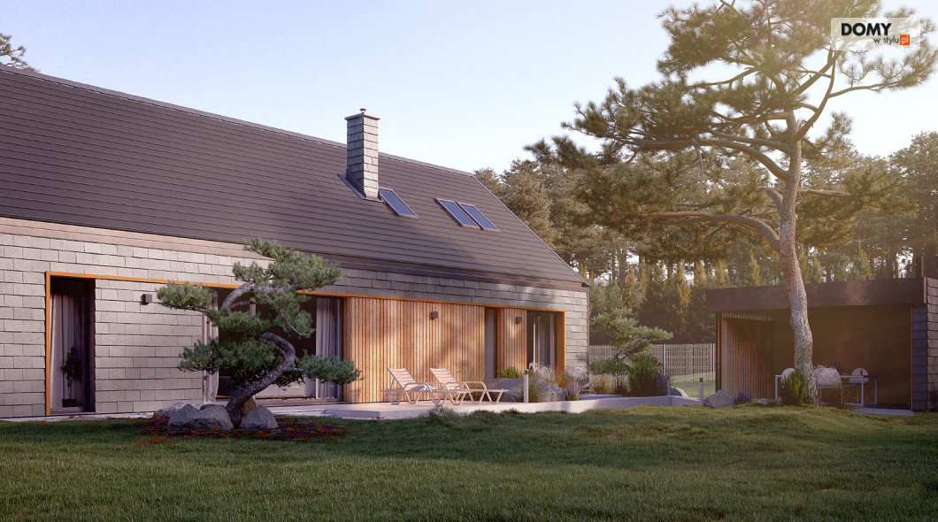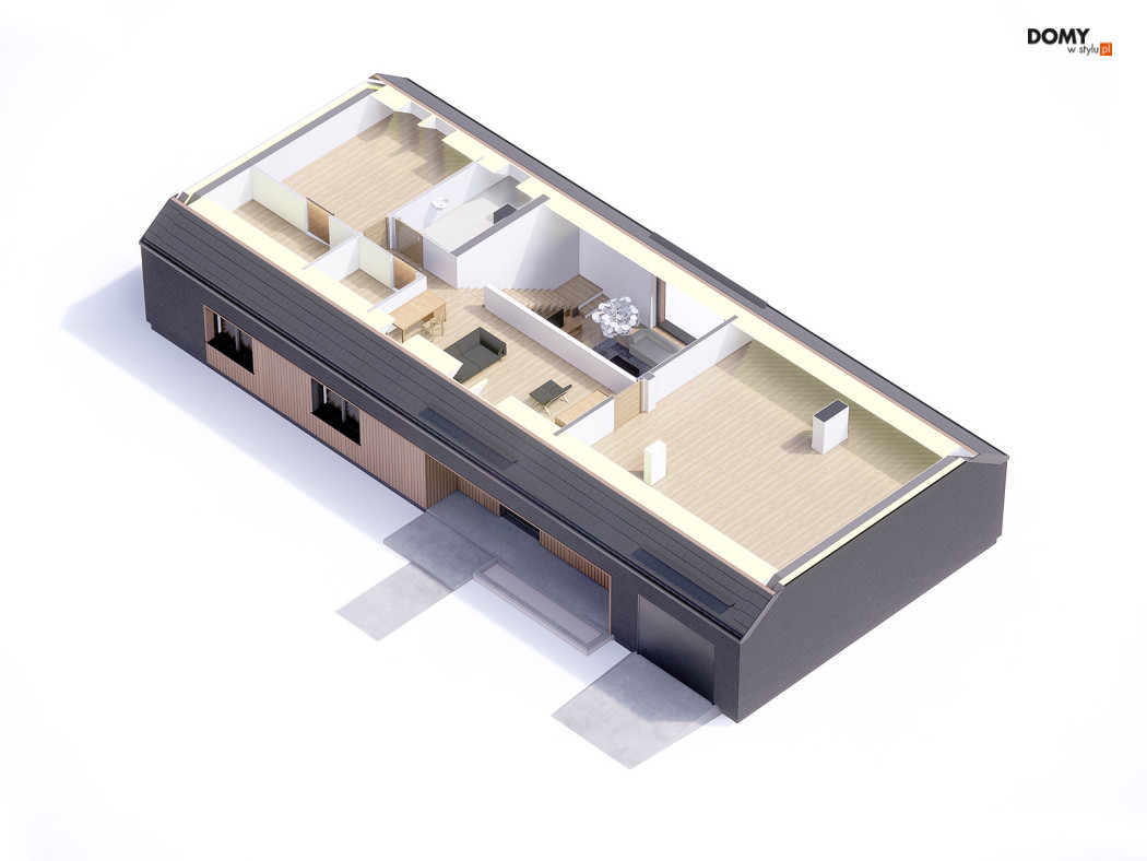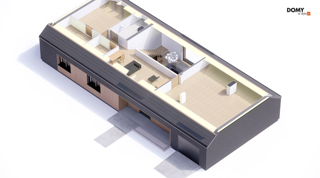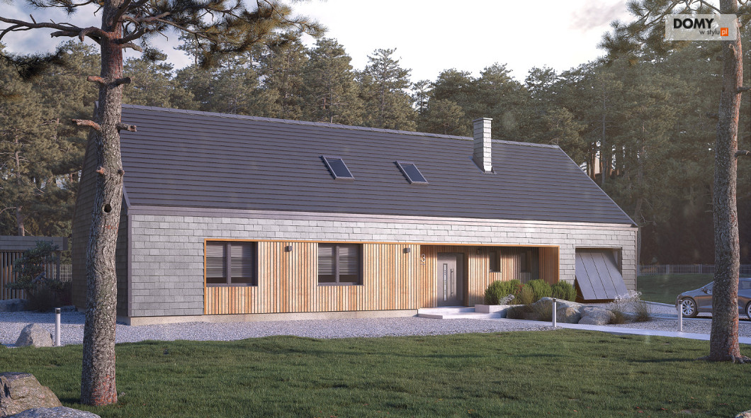 Dom może funkcjonować jako parterowy, z możliwością późniejszej adaptacji poddasza.