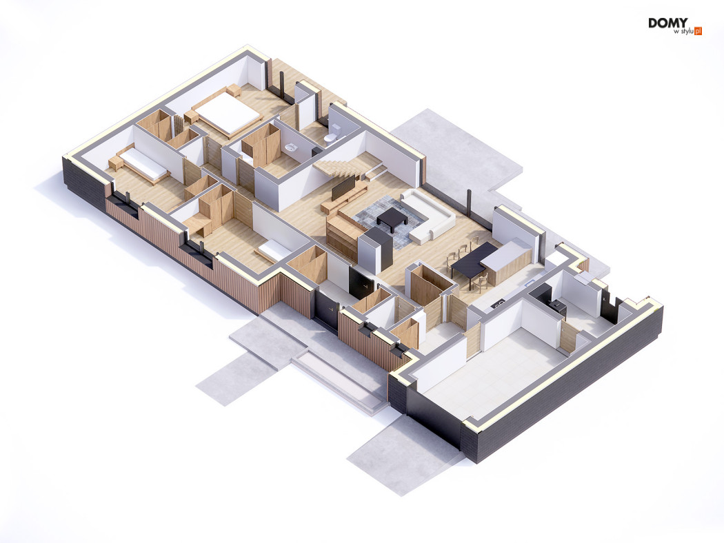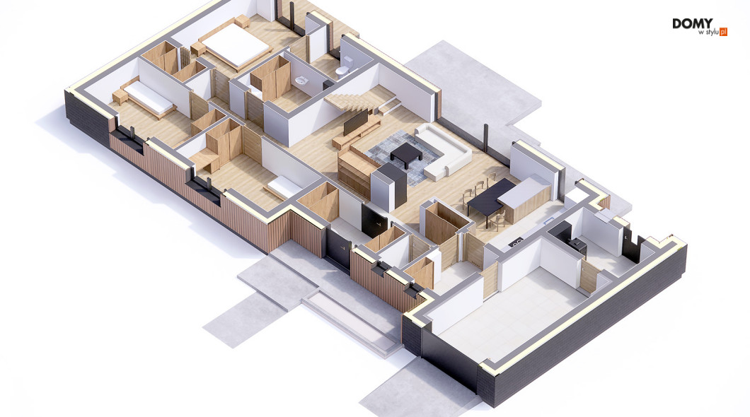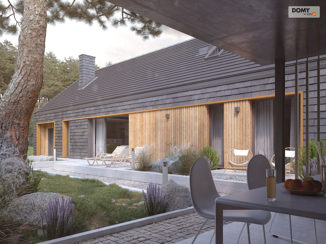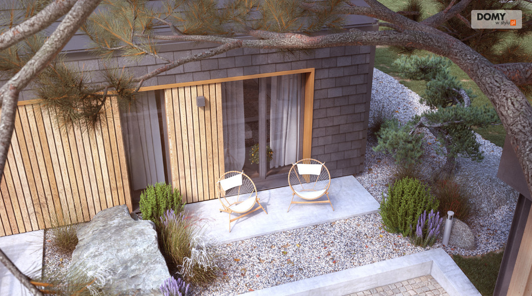 Dom może funkcjonować jako parterowy, z możliwością późniejszej adaptacji poddasza.